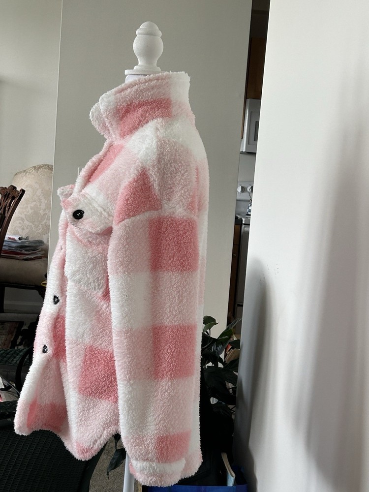 This plaid pajama top is so soft and cozy—perfect for lazy mornings or chilly evenings! I love how versatile it is—works great as a light jacket or layered over PJs. The pink color is cute, and the fit is just right—not too tight, not too loose. Super comfy for lounging or quick errands. A must-have for cozy vibes!