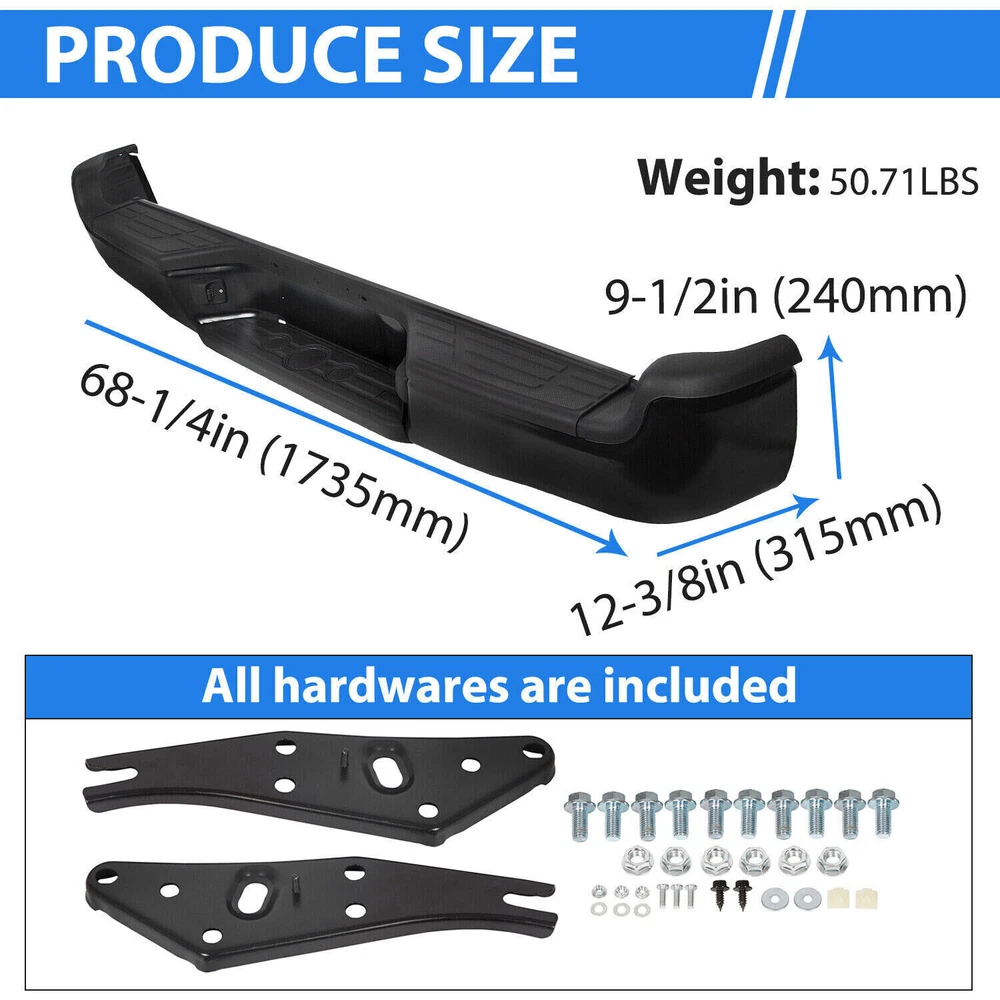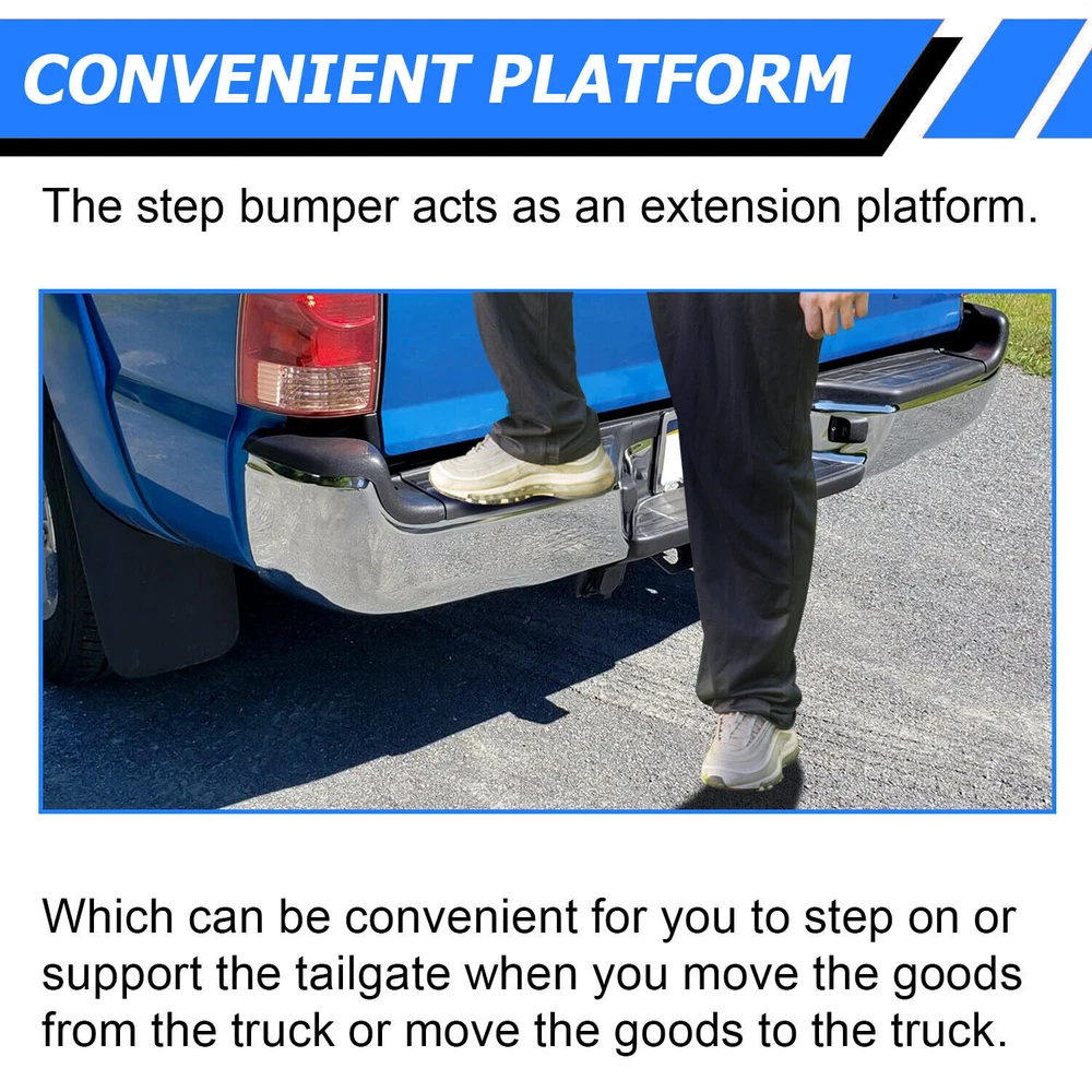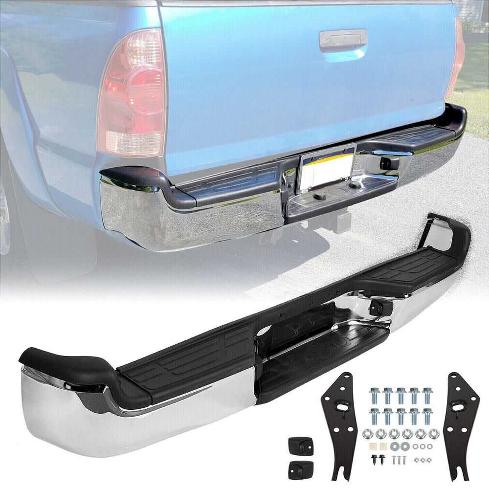 This rear bumper assembly is a perfect upgrade for any Toyota Tacoma owner! The solid steel construction feels durable, and the chrome/black finish gives it a sleek, rugged look. Installation was straightforward, and it fits like a glove on my 2012 Tacoma. The added protection and style make it worth every penny—highly recommend for anyone looking to enhance their truck’s rear end!