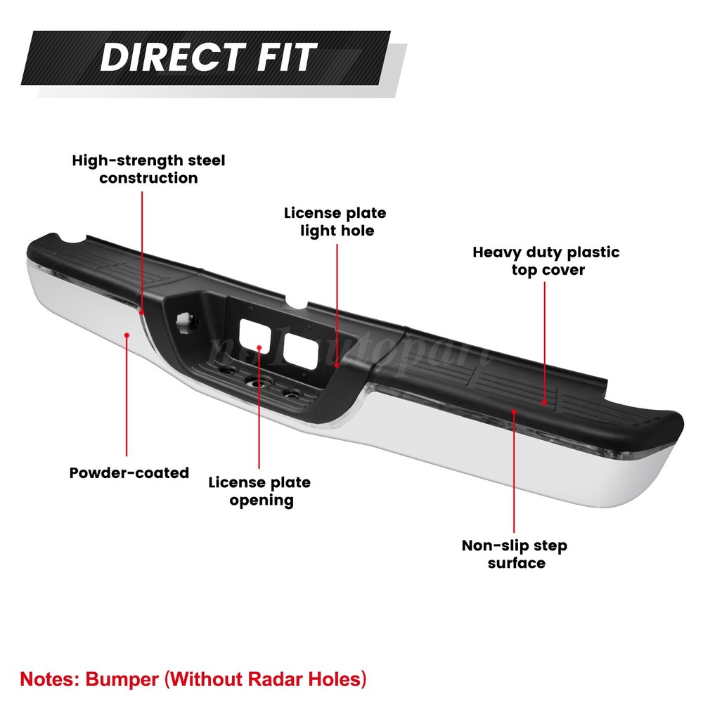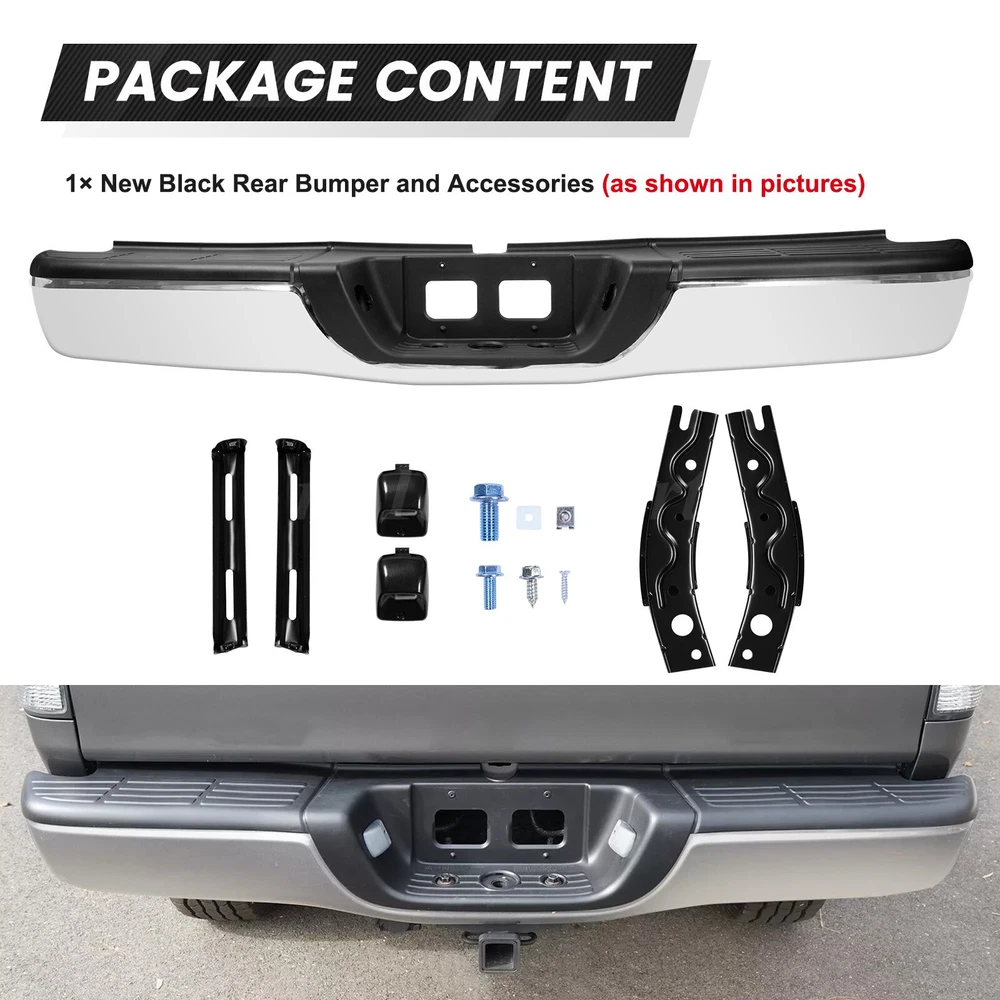 PAYMENT ITEM FOR SELL FEEDBACK DISCOUNT CONTACT US Complete Chrome Rear Step Bumper Assembly For 2000-2006 Toyota Tundra - Steel Description: This bumper is crafted from high-quality steel, meticulously processed and rigorously selected to provide exceptional strength and durability, ensuring complete safety on the road. The advanced powder coating creates a robust protective layer, offering excellent corrosion resistance and preserving the bumper’s polished appearance over time. With precise dimensions and excellent fitment, this bumper is ideal for replacements or repairs, seamlessly restoring your vehicle's original charm. Thoughtfully designed details make installation easy and ensure a snug, seamless fit, providing an enhanced aesthetic and user experience. Choose this bumper to add both safety and style to your vehicle. Specification: Type: Bumper(Without Radar Holes) Material: Steel Color: Chrome White OE Number: TO1102229, TO1103107 Features: 【Exceptional Steel Strength】Constructed from premium steel, meticulously processed to offer superior strength and resilience, emphasizing safety and a durable style that stands the test of time. Provides reliable protection regardless of road conditions. 【Advanced Powder Coating for Corrosion Resistance】High-quality powder coating technology forms a durable protective layer on the bumper surface, effectively shielding it from corrosive elements such as moisture and salt, maintaining a polished look over time. 【Restore Original Appeal】Precision dimensions and exceptional fitment allow the bumper to integrate seamlessly with the vehicle, making replacements or repairs effortless and restoring the vehicle's original charm. 【Meticulous Craftsmanship】Using advanced manufacturing processes, this bumper achieves high standards of part compatibility and quality. Fine details enhance ease of installation, creating a snug, seamless fit for a superior aesthetic and functional experience. Compatible Vehicles: For Toyota Tundra 2000-2006 *Fits Models With Standard/Fleetside Bed ONLY* *Will NOT Fit Models With Stepside/Flareside Bed* Package Conten ts: 1× Rear Bumper (Includes Installation Accessories) Note: 1.Please confirm compatibility with your vehicle before purchase. 2.Check for secure installation before driving to ensure safety. 3.Due to monitor and lighting differences, product images may vary slightly from the actual product. 4.Installation instructions are not included; professional installation is highly recommended. PAYMENT SHIPPING POLICY TERMS OF SALE ABOUT US CONTACT US RETURNS PAYMENT We can only accept Paypal payment only. You can send payment to our paypal account by many payment methods(Credit or debit card through PayPal). All our prices are inclusive of VAT. SHIPPING POLICY Order will be handled within 1 or 2 working days ( Excluding Weekends and Public Holidays) after your payment is clear. We ship to Paypal's confirmed address ONLY . A tracking number will be emailed to you upon shipment. We only ship to address that you input during Paypal checkout. We are responsible for your correct address, so please check your address before placing your order. TERMS OF SALE 1. If there are any problems with our products,Please feel free to contact us.We will always here to solve them for you.You don't need to contact ebay or paypal.And please DO NOT leave us Neutral/Negative feedback,It won't help the problem to be solved.And it is the worst hurst to a seller.We should try our best to make a happy easy transaction. 2. If you are satisfied with our products and our service,please tell your friend and leave us positive feedback;if you are not satisfied with our products or service,please DO tell us. 3. After receiving the item,you could contact us within 30 days.Refund will be given as money back or item exchange. ABOUT US 1、Usually, we reply for the messages within 24 hours, if you do not get response within 1-2 Working days , please check your Messages box one more time or Please email us AGAIN. 2、Email is the priority of our customer service, if you can't get us, please choose live response. Positive feedback is automatically done once the payment is cleared. We appreciate your feedback. 3、The star-scores are very important to us. If anything about your transaction did not meet your expectations. Please let us know and give us the opportunity to work out for you before you leave feedback. CONTACT US Please be patient when contacting us, all messages will be replied within 12 hours. Please let us know immediately if a package is damaged upon arrival. We appreciate your feedback and we will send buyers positive feedback after a shipment has been processed. Customer satisfaction is significant to us. If you are dissatisfied with a transaction for any reasons. Please contact us through eBay and we will do our best to help you. RETURNS Returns will be accepted within 30 days after delivery. However, if the item is damaged upon arrival, you can contact us after delivery for any refund or replacement. Returns will not be accepted if buyers caused any damages to the item. Refunds are given as Exchange or Money Back. Please obtain the RMA number & returned address for any return items. Return items MUST well packaged with all accessories. On May 20, 2025 at 09:15:27 PDT, seller added the following information:
