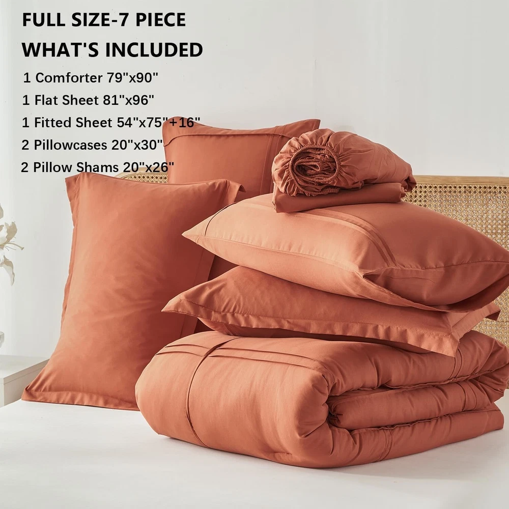 Complete Full Size Comforter Set - 7-Piece Soft Microfiber Bedding in Terracotta ‹ › ‹ › ‹ › ‹ › ‹ › ‹ › ‹ › ‹ › ‹ › Complete Full Size Comforter Set - 7-Piece Soft Microfiber Bedding in Terracotta Indulge in Luxurious Comfort: Experience the ultimate softness with our 100% cozy soft microfiber comforter set. This plush bedding envelops you in warmth and tenderness, ensuring a restful night's sleep. The breathable fabric adapts throughout all seasons, making it your go-to choice for -round comfort. Key Features: Quality Fabric: Crafted with love from 100% soft microfiber that caresses your skin. Simple and Stylish Design: Featuring exquisite striped pleats that enhance the overall aesthetics while providing a simplistic, cozy allure. Full Size Comforter Set: Comes complete with 1 Comforter (80"x90"), 1 Flat Sheet (81"x96"), 1 Fitted Sheet (54"x75"+16"), 2 Pillowcases (20"x30"), and 2 Pillow Shams (20"x26"). Easy Care: Machine washable and dries effortlessly while maintaining the vibrant terracotta hue. Customer Service: We value your satisfaction. Our support team is available 24/7 to address any inquiries related to our product. Transform Your Space: This 7-piece set is not just bedding; it's a versatile home decor statement. The elegant terracotta hue and grid stitching make it suitable for various room styles, whether for a teen's room, guest room, or your master suite. Perfect for gifting on birthdays or special occasions, elevate any space with this charming collection. Easy Maintenance: With unique stitching craftsmanship, the filling stays in place, ensuring that you won't have to deal with cumbersome clumps. Just toss it in the washing machine on a cold gentle cycle, tumble dry on low heat, and it’s ready to provide you comfort once more. Don't miss the chance to embrace warmth and style—revamp your bedroom sanctuary with this exquisite comforter set today! Shipping Free & Fast Shipping - We offer free shipping to most of the USA with a normal delivery time of 3-7 days. However, due to the current situation, additional delivery time (up to 3 weeks) may be required for some items. Alternative Carriers - We may use alternative carriers (e.g. USPS, FedEx, UPS, etc.) to ensure your package arrives safely and on time. Due to the use of multiple carriers, we are unable to provide a tracking number automatically. Handling Time - Orders are processed and shipped within 1-2 business days of receiving cleared payment. Shipping Restrictions - Shipping to Alaska, Hawaii, Puerto Rico, Guam, and other US territories may incur shipping charges or delivery restrictions. Please contact us before ordering, or your order can be refunded/cancelled. State Restrictions - There may be restrictions based on your state of purchase. For example, certain items may not be shipped to California due to state regulations. Contact for Tracking Updates - If you require tracking updates or have any concerns about the delivery of your order, please feel free to contact us, and we will be happy to assist you. Return 30-Day Hassle-Free Returns - We want you to be completely satisfied with your purchase. If you are not, you can return the item within 30 days of receiving it for a full refund or exchange. Easy Return Process - To start a return, simply contact us and we will provide you with a prepaid return shipping label and detailed instructions. Restocking Fee - There are no restocking fees for returns. However, the buyer is responsible for return shipping costs if the return is not due to a seller's error. Refund Processing Time - Refunds will be processed within 5 business days of receiving the returned item in its condition. Payment We accept all major credit cards, PayPal, and Apple Pay for your convenience. Your payment information is secure and encrypted to ensure a safe and seamless transaction. Please complete your payment within 3 days of purchase to avoid any delays in shipping. Feedback Your feedback is extremely important to us. We strive to provide the best products and customer service possible. If you are satisfied with your purchase, please take a moment to leave us a positive review. If you have any concerns or issues with your order, please contact us before leaving negative feedback. We are committed to resolving any problems and ensuring your satisfaction. Contact Us If you have any questions or concerns, please feel free to out to our customer support team. You can contact us through the eBay messaging system. We are available Monday to Friday, 9:00 am to 5:00 pm EST, and we will do our best to respond to your inquiry within 24 hours. Buy it now and enjoy a pleasant shopping experience! Set Includes: Comforter,Fitted Sheet,Flat Sheet,Pillowcase,Pillow Sham Material: Microfiber,Polyester Features: Breathable,Lightweight Theme: Pinch Plaid Care Instructions: Do Not Bleach,Machine Wash Department: Unisex Baby & Toddler,Kids,Teens,Adults Room: Bedroom Size: Full Type: Comforter Color: Terracotta Fill Material: Polyester Pattern: Solid Insulation: All Seasons Number of Items in Set: 7 Style: Shabby Season: All Closure Type: No Closure Thread Count: 200 or Less GSM (Grams per Square Meter): Below 150