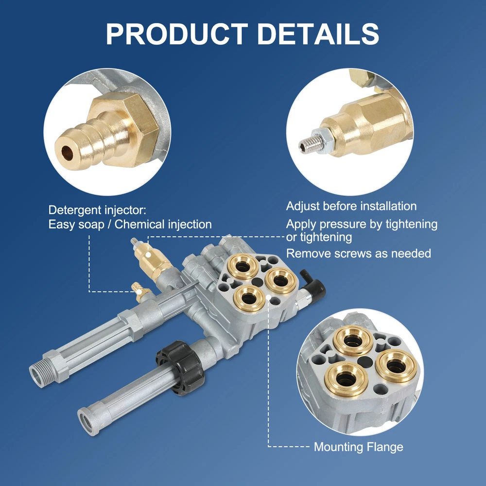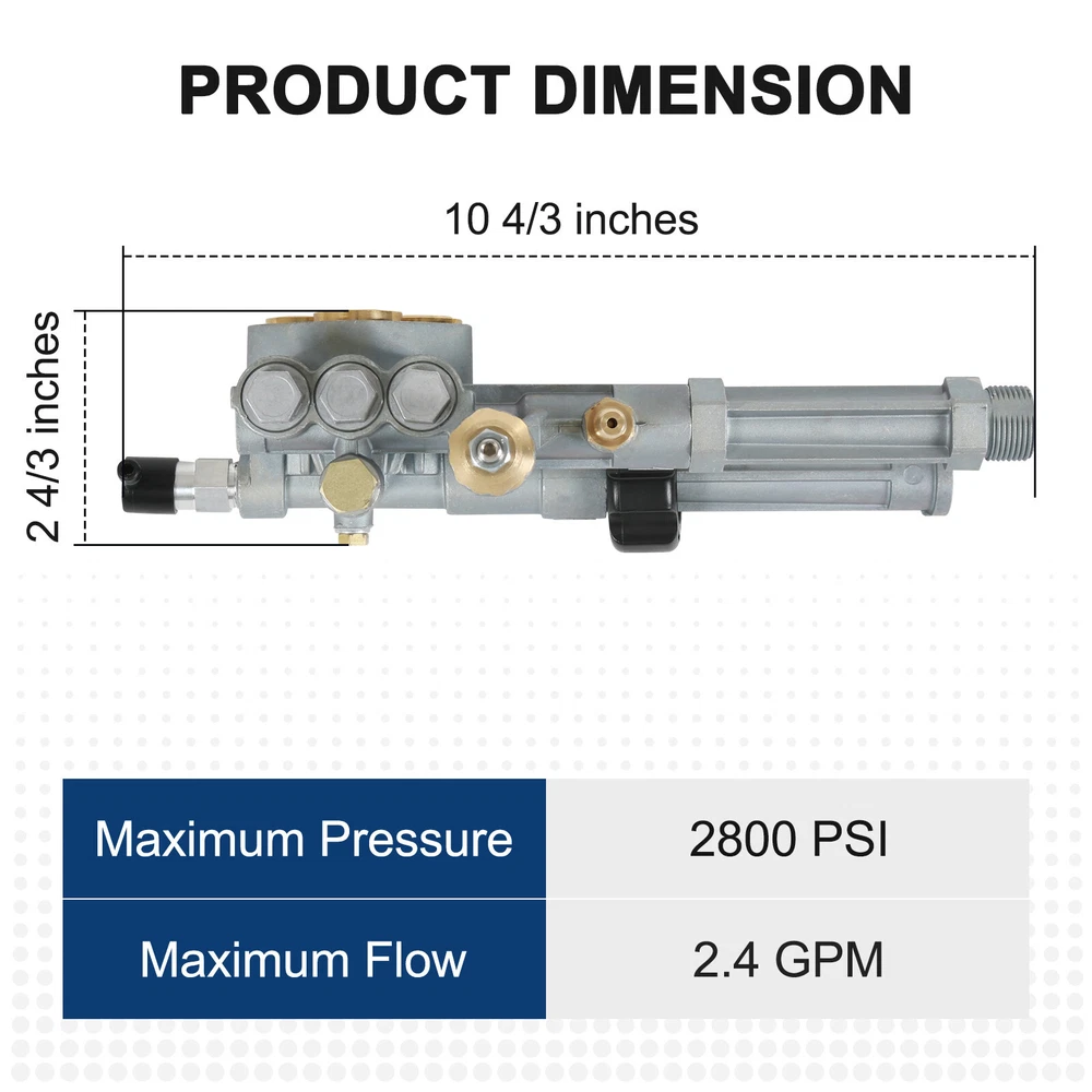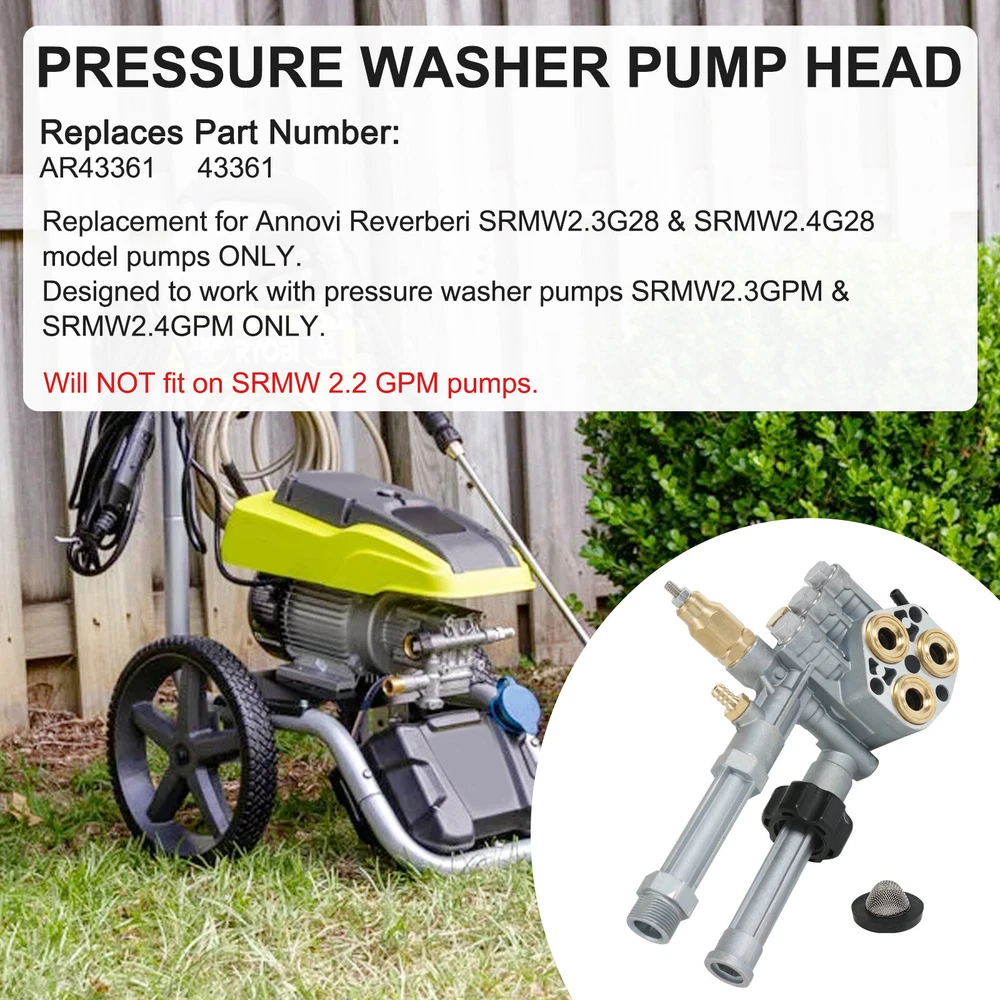 Complete Pump Head for SRMW2.3G28 & SRMW2.4G28 Model Pumps W/ Unloader 2800 PSI One year warranty 100% New Construction Free and Fast Shipping to USA High Quality and Quality Guaranteed Product description: Maximum Pressure: 2800 PSI. Maximum Flow: 2.4 GPM. Refer to images 2 & 3 for more information Includes: (1) Complete Pump Head with Unloader & Thermal Relief Valve (installed); comes as shown in the first image Fit For For Pressure Washer Pumps SRMW2.3GPM & SRMW2.4GPM ONLY. Will NOT fit on SRMW 2.2 GPM Pumps This pump head is for use with SRMW2.3G28 and SRMW2.4G28 model pumps ONLY. SHIPPING AND PAYMENT RETURN POLICY 1 YEAR WARRANTY FEEDBACK WARNING SHIPPING AND PAYMENT Orders placed on Saturday or Sundays should be processed and shipped on Monday. Hope you can understand. We ship all the packages within 1-2 business days. Our shipment arrive your address will take around 2-10 business days. If you didn't received packages in 15 business days, please contact us freely, and we will check and solve it. Please purchase and pay for the item through eBay auction, and do not manually send us a PayPal payment. RETURN POLICY 60-day money back guarantee We offer a 6-month warranty for most of our products that starts on the original purchase date. If you are not satisfied with our product, most items can be returned in their new/original/unworn condition within 60 days. We will offer a refund or exchange (Shipping and handling fees are not refundable). A 15% restocking fee ($10 minimum) may be applicable. Items that have been worn, misused, abused, damaged, and/or altered beyond warranty coverage and period will not be refunded or exchanged. 1 YEAR WARRANTY This item have 1-year warranty. In the event the item should fail due to manufacturing defects during intended use, we will replace the part by free. We only warranty cost of item parts. Any installation or other fees are non-refundable. Note: Any modifying the item of any kind without contacting us will void any and all warranty coverage for this item. Please contact us before modifying the part so that we have the opportunity to correct the situation. You can contact us by ebay message to get the full text of the written warranty. FEEDBACK Our goal is to earn a 5-star rating with every purchase! We automatically leave feedback for all our buyers at the time payment is received. When you receive your order, please take a moment to leave us positive feedback at eBay. If you are not satisfied, please let us know before leaving feedback! Send us a message through eBay and we'll do whatever it takes to earn your satisfaction! WARNING This product can expose you to chemicals including Chromium (Hexavalent Compounds), which is known to the State of California to cause cancer, and birth defects or other reproductive harm. For more information, go to California goverment website, you can search California P65Warnings. Type Pump Head Manufacturer Warranty 1 Year MPN AR43361 Pressure Washer Unloader Relief Country/Region of Manufacture China Maximum Pressure 2800 psi California Prop 65 Warning California Prop 65 Warning Features NEW Brand JDMSPEED