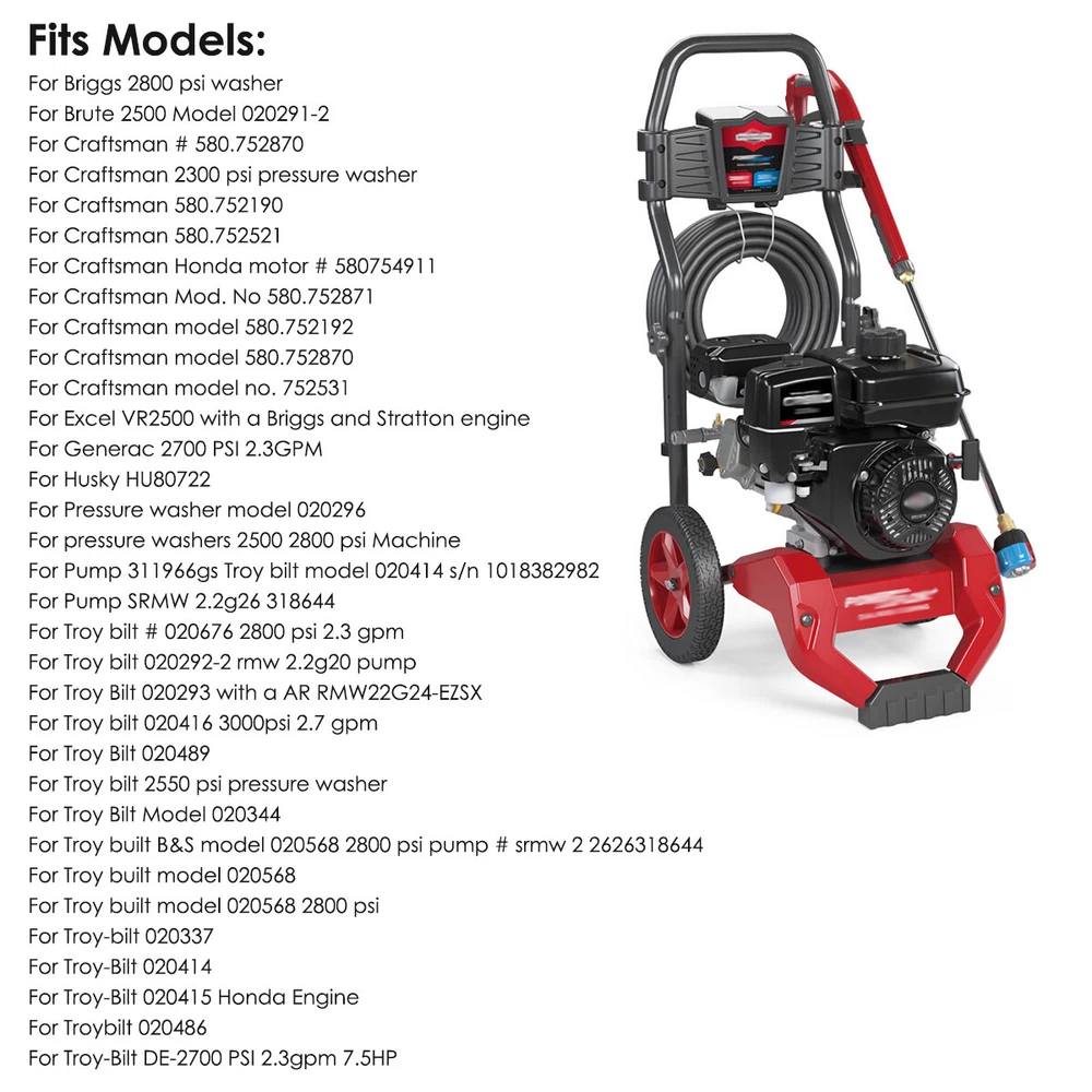 You may also like 2PACK Replacement For DreamWear Nasal CPAP Mask Headgear Strap Comfortable Fit 14.99 USD Free shipping HD 4K Mini Camera Camcorder Body Police Cam with Audio Video DVR IR Night Cam US 29.98 USD Free shipping 2* For Braun Shaver Foil Head Part Cutter Razor Blade 32B 3-Series A Replacement 14.99 USD Free shipping LCD Digital Engine Hour Meter Inductive Tachometer Gauge For Motorcycle Car Boat 18.39 USD Free shipping 32GB Spy Mini Hidden Digital Voice Activated Recorder Audio Recording Pen Device 16.95 USD Free shipping Mini WIFI Body Camera Video Recorder Camera Motion Activated Nanny Small Cam 32G 7.99 USD Free shipping Replacement Headgear strap for ResMed Airfit P10 Nasal Pillow CPAP Mask (6Pack) 16.99 USD Free shipping IWB KYDEX Holsters Fit For Sig Sauer P365/P365 SAS/P365X/Sig Sauer P365XL Pistol 17.98 USD Free shipping Water Pump ZLWB-12 Input for Household Bullet Ice Machine HZB-12A/25BF 24h-Ship! 11.56 USD Free shipping Portable Mini Small Smoking Tobacco Pipe Water Bong Smoke Hookah Shisha Pipes S+ 10.99 USD Free shipping 15*E12 White LED Corn Bulbs Candelabra Ceiling Fan Light Bulb Daylight 16W 6500K 10.59 USD Free shipping M2 SSD Case NGFF NVMe Enclosure M.2 to USB Type C 3.2 SATA Hard Drive Adapte TOP 10.59 USD Free shipping H96MAX M3 8K Bluetooth v5.0 Smart Android 13.0 TV Box Quad Core HD Stream Player 30.99 USD Free shipping Y-Shaped Neck Traction Device Spine Chiropractic Decompression Strap Chin Belt 25.99 USD Free shipping For Braun Series 8 Shaver 83M Replacement Electric Shaver Heads 8330S 8391cc NEW 12.99 USD Free shipping TELESIN Magnetic Mount Camera Quick Release Neck Holder For GoPro Hero 11 10 Max 15.99 USD Free shipping Product Description Complete Pump Head w/ Unloader for Troy Bilt AR42940 SRMW2.2G24 Pressure Washer. Fits Models: Briggs 2800 psi washer Brute 2500 Model 020291-2 Craftsman # 580.752870 Craftsman 2300 psi pressure washer Craftsman 580.752190 Craftsman 580.752521 Craftsman Honda motor # 580754911 Craftsman Mod. No 580.752871 Craftsman model 580.752192 Craftsman model 580.752870 Craftsman model no. 752531 Excel VR2500 with a Briggs and Stratton engine Generac 2700 PSI 2.3GPM Husky HU80722 Pressure washer model 020296 pressure washers 2500 2800 psi Machine Pump 311966gs Troy bilt model 020414 s/n 1018382982 Pump SRMW 2.2g26 318644 Troy bilt # 020676 2800 psi 2.3 gpm Troy bilt 020292-2 rmw 2.2g20 pump Troy Bilt 020293 with a AR RMW22G24-EZSX Troy bilt 020416 3000psi 2.7 gpm Troy Bilt 020489 Troy bilt 2550 psi pressure washer Troy Bilt Model 020344 Troy built B&S model 020568 2800 psi pump # srmw 2 2626318644 Troy built model 020568 Troy built model 020568 2800 psi Troy-bilt 020337 Troy-Bilt 020414 Troy-Bilt 020415 Honda Engine Troybilt 020486 Troy-Bilt DE-2700 PSI 2.3gpm 7.5HP Pressure Washer Pump Replacement For Craftsman Model 580.752521 580.752890 580.752201 580.752051 580.752180 580.752501 580.752052 580. 752910 580.752192 580.767100 580.752870 580.752190 580.754911 580754911 580.752871 580.75271 2550Psi 2600Psi 2700Psi 2800Psi Payment Shipping Terms Returns Feedback Contact us We accept PayPal only. If buyer want to delay the payment because of financial problem, please contact me by the ebay message within 3 days Payment via PayPal (PayPal accepts all major credits/debit cards and eCheque) ECheque payment will tak e 3-10 days to get clear, thus DELAYing the shipment. Handling time: 1 business day (Orders are not processed on weekends & holidays) Tracking information will be sent once item is shipped. Local pick-up is unavailable at the moment. For international shipping and shipping to Guam, Hawaii and Alaska, Please contact us before placing the order. Item is shipped to ebay address. Leaving correct address can minimize delay. For any issues with Defects, Return, Item Exchange request, please contact us first and send us a message first before opening any type of case or request. We devote ourselves making EVERY CUSTOMER in 100% Satisfactory and resolve any problem. We highly value and appreciate your business. Thank you. No returns will be accepted without an RMA number. Please contact us for the RMA number. Return is acceptable within 30 days of delivery. Return for replacement or money back is optional. Returned items must be in the brand new, unaltered and resalable condition. Seller is not responsible for any labor cost, expense in a dealer store, or damage due to wrong installation. Return is accepted within 14 days after the buyer's receiving the item. (Excluding contrived damagement or misusage).100% money-back Guaranteed! All product will be tested in 100% before delivery.If the item is defected by the processing of postage,Buyer has up to 14 days from date of receipt for exchange of a new one.All shipping charges for returned products are to be paid by the buyer,Please contact us for the return address If you are satisfied with the purchase and our total service, your comment is very important in our business success. Please take a minute to leave us a positive feedback with an overall Detailed Selling Rating (DSR) of 5. Our eBay account setup auto feedback, so eBay system gives you automatically Positive feedback back after your positive feedback left. If you plan to give us a neutral/negative feedback Or open ebay/paypal case, please write to us immediately so that we can do our best to resolve your problem. All messages will be answered within 24 office hours. Please contact us either by clicking "contact seller" in the "purchase history" section or simply click "ask a question" at the bottom of this page. If you are unsatisfied with our item or service, please contact us before leaving any feedback. We are committed to resolve all issues in a friendly and satisfactory manner. We always reply to messages within 2 business days (off-duty at weekend). If you do not get a response from us, then please check your junk or spam mailbox. Payment We accept PayPal only. If buyer want to delay the payment because of finan