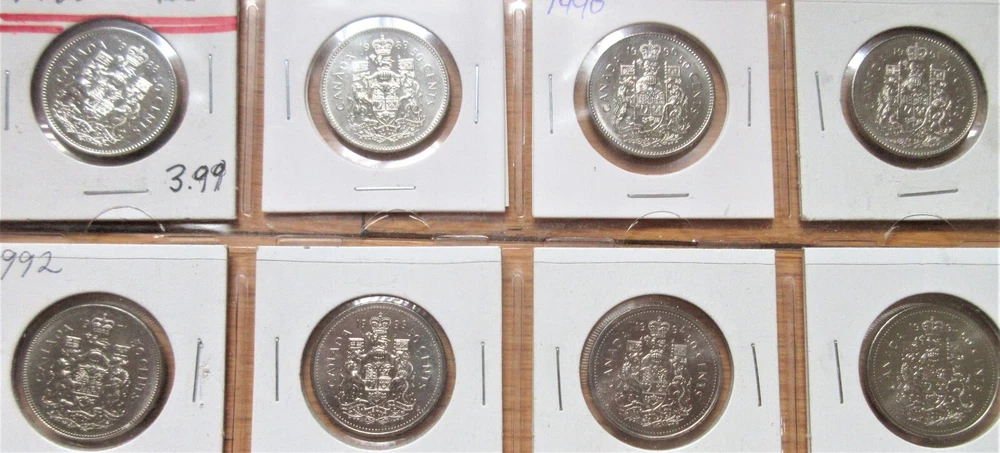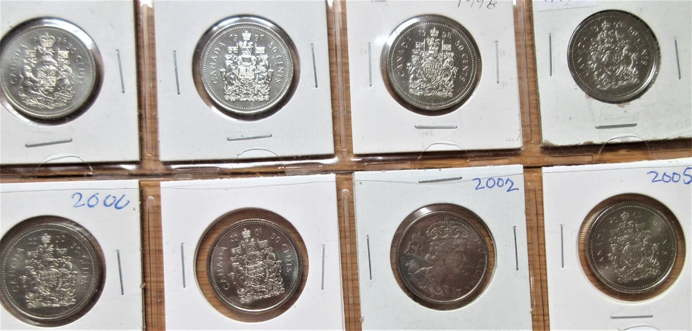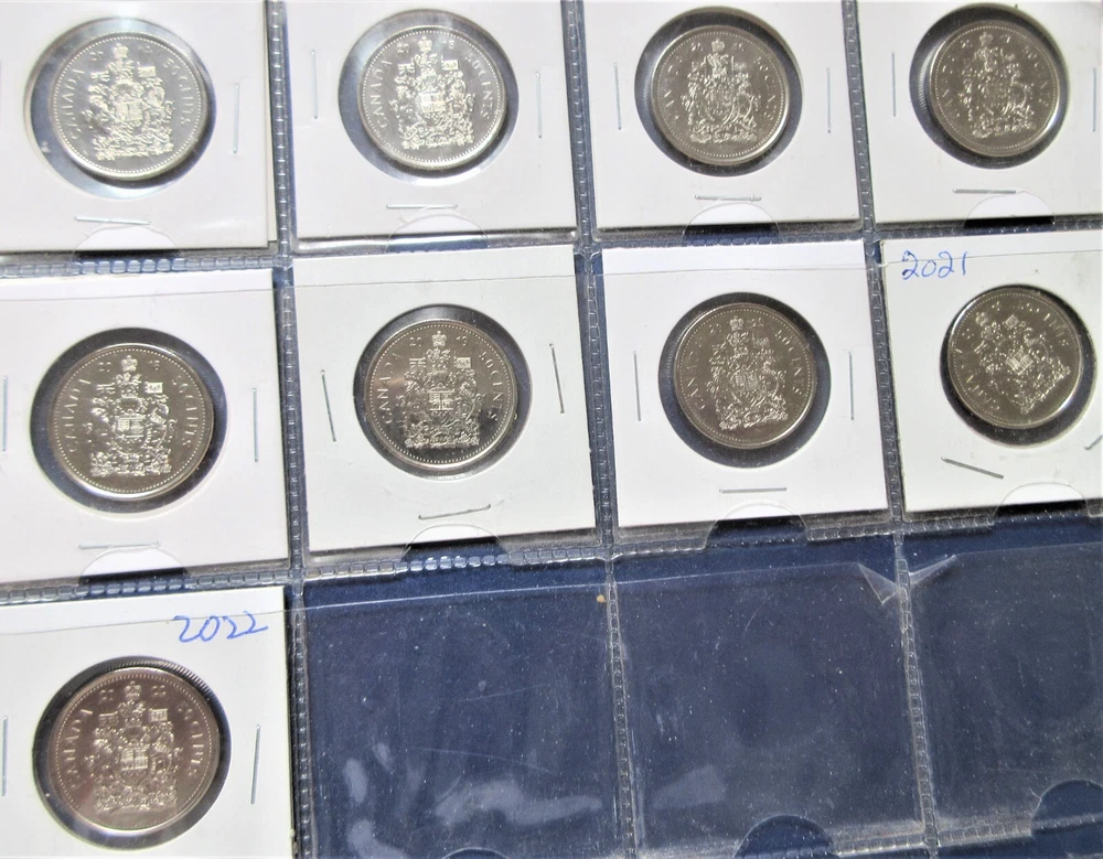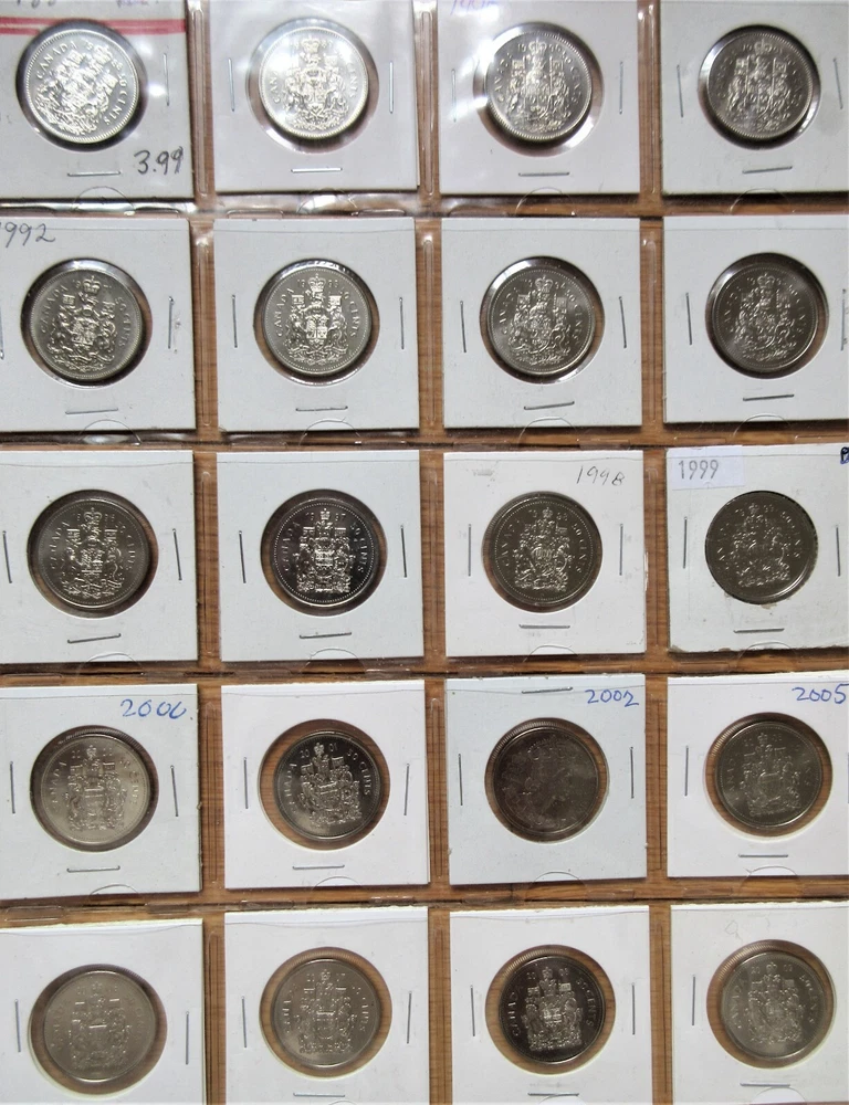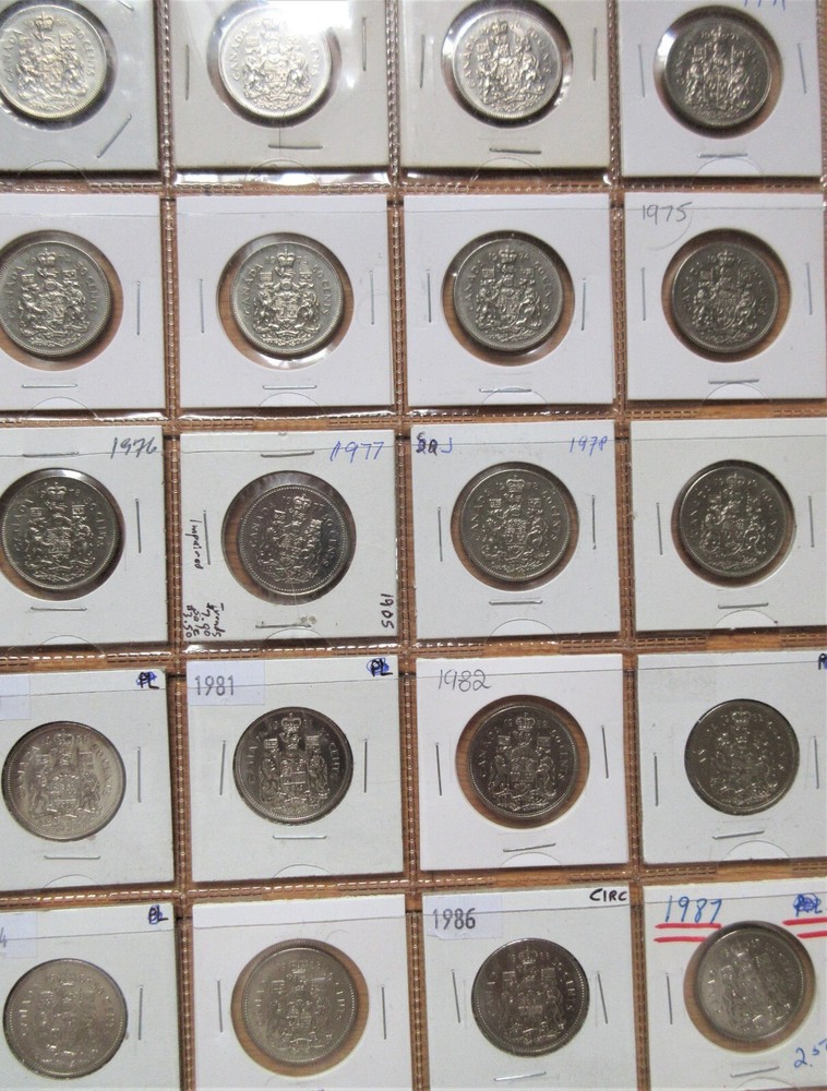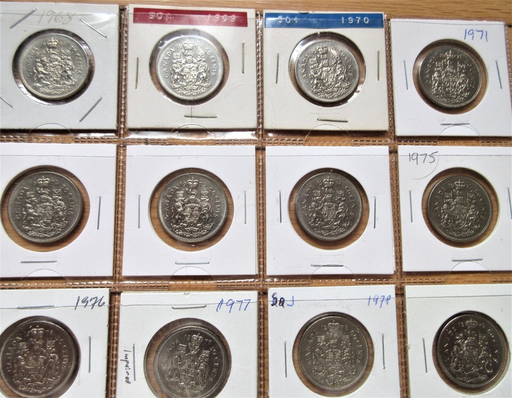 Complete Set of Canada Fifty Cents 1968-2025. 57 Half Dollar Coins Album You are looking at Complete Set of Canada Fifty Cents 1968-2024. 56 Half Dollar Coins Album. These are stock images and most of the coins are in Uncirculated condition. Please use scan as your guide and you will receive the coins in almost similar grades. Here's list of all the coins that you will receive. 1968,1969,1970,1971,1972,1973,1974,1975,1976,1977 (Semi key),1978,1979,1980,1981,1982, 1983 (Semi key) ,1984 (Key) ,1985,1986 (Semi key) ,1987,1988,1989 (Semi key) ,1990 (key) ,1991, 1992,1993, 1994,1995, 1996, 1997, 1998,1999,2000, 2001, 2002, 2005, 2006 (Key), 2007, 2008, 2009, 2010, 2011, 2012, 2013, 2014, 2015, 2016, 2017-Regular, 2018, 2019, 2020, 2021 Regular, 2022, 2023 Queen, 2023 King Charles, 2024 and 2025. In 2003 and 2004, No Half dollars were issued individually but Only included in Mint Sets. SHIPPING & HANDLING S & H to Canada is $16.00 S & H to United States is $21.00 S & H to rest of the World is $55.00 PAYMENT METHODS PayPal More options at Shipping & Policies FIVE REASONS TO BUY FROM US 100% Satisfaction or Always offer No-Questions-Asked Return Policy. Low Shipping Fees and Discount on multiple items. Fast Shipping. Multiple Payment options. Reasonable Rates. Looking For Something Else ? Visit us at World Coins-Paper Money to find more items. Thanks for Looking