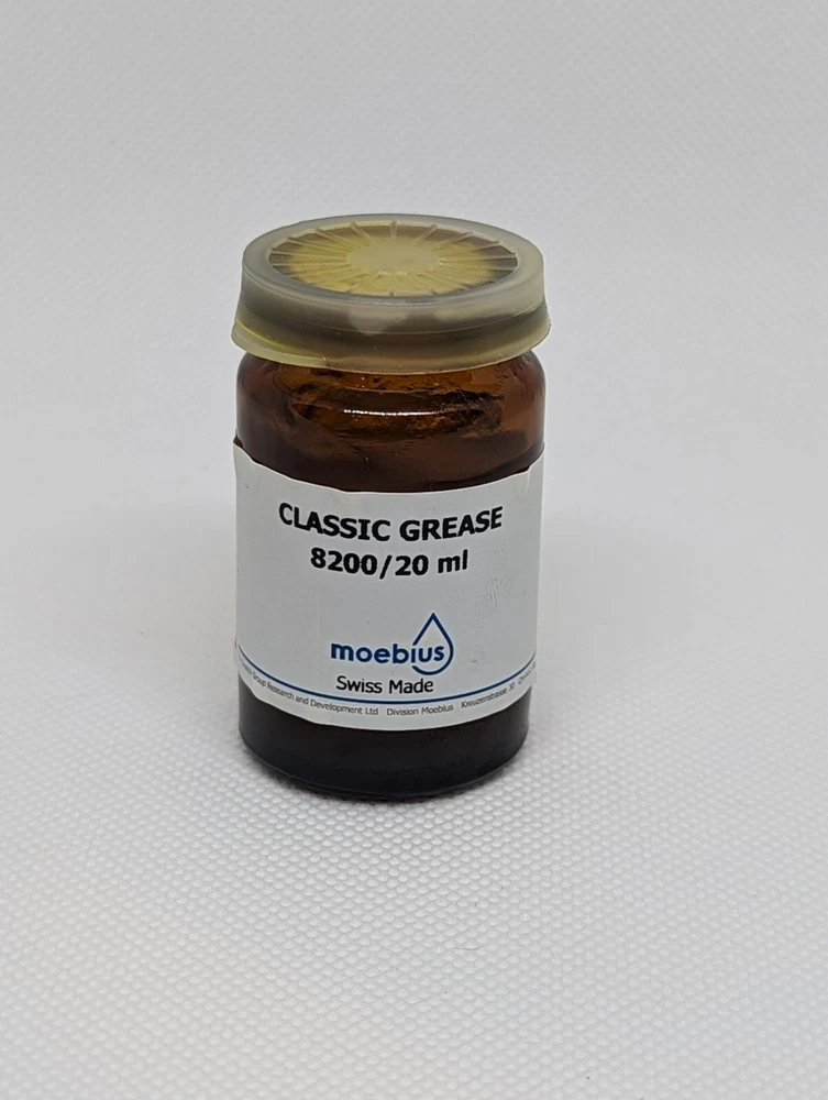 This watch oiling kit is a must-have for any watch enthusiast into watchmaking and repair. This high-quality kit comes with all the necessary tools and supplies to keep your watches running smoothly for years to come. The Basic kit includes an oiler, oils, grease for repairing and maintaining watches. It is perfect for both beginners and experienced watchmakers. Invest in this kit to ensure that your watches are always in top condition. Basic Kit includes everything you need to start: -0.25ml moebius 9010 oil -0.25ml moebius 9104 HP-1300 oil -0.25ml moebius 9504 grease -Bergeon fine tip oiler -Rodico -Peg wood -Oiling station The + barrel grease kit includes everything from the basic kit plus additional greases for the mainspring and barrel housing: -0.25ml moebius 9010 oil -0.25ml moebius 9104 HP-1300 oil -0.25ml moebius 9504 grease -Bergeon fine tip oiler -Rodico -Peg wood -Oiling station -0.25ml moebius 8200 grease -0.25ml moebius 8217 grease The + barrel grease + pallet fork grease kit includes everything from the basic kit + mainspring greases + pallet fork grease for the pallet fork jewels and the escapement: -0.25ml moebius 9010 oil -0.25ml moebius 9104 HP-1300 oil -0.25ml moebius 9504 grease -Bergeon fine tip oiler -Rodico -Peg wood -Oiling station -0.25ml moebius 8200 grease -0.25ml moebius 8217 grease -0.10ml moebius 9415 grease Be sure to save us as a seller and check back in the future for updated offerings. Please note images shown of moebius oil containers are stock images of the oils and greases for reference only. We maintain fresh supply of product. You will receive what is listed in our product description above.