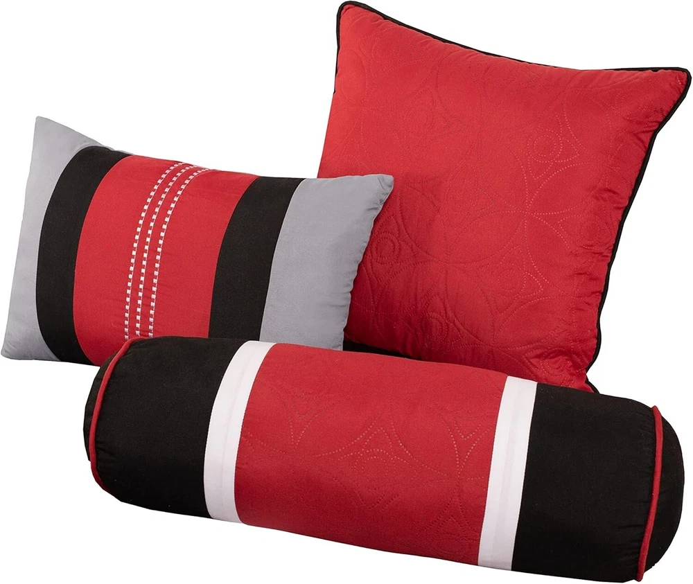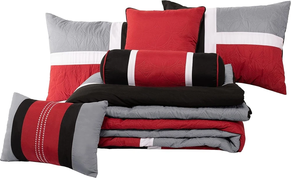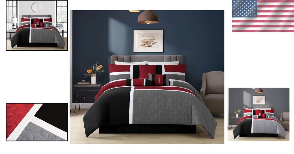 Contemporary California King 7-Piece Comforter Set - Soft Microfiber Luxury < class="slides"> ‹ › ‹ › ‹ › ‹ › ‹ › ‹ › ‹ › ‹ › ‹ › ‹ › Contemporary California King 7-Piece Comforter Set Indulge in the luxurious embrace of soft microfiber with our 7-Piece Comforter Set, meticulously designed to transform your bedroom into a serene sanctuary. Set Includes: 1 Comforter (104" x 92") 2 Shams (20" x 36") 1 Bedskirt (72" x 84" +14" drop) 1 Square Cushion (18" x 18") 1 Neck Roll (7" x 18") 1 Breakfast Pillow (12" x 18") Features: Luxurious pin-sonic pressed medallion design quilted in an exquisite patchwork pattern. Crafted from 100% Microfiber Polyester for a soft and lightweight feel. Three-tone color palette that draws out a captivating bedroom experience. Versatile enough to harmonize with any bedroom décor, perfect for -round use. Easy care: Simply machine wash on a gentle cycle with cold water; sun dry or low tumble dry. Benefits: Exudes elegance and sophistication, ideal for contemporary living spaces. Brings warmth and vibrancy to your room, creating a welcoming atmosphere. Soft, comfortable fabric enhances your sleeping experience. Versatile design complements any home styling. Why Choose the Contemporary California King Comforter Set? Elevate your sanctuary with this stunning 7-Piece Comforter Set, designed by the esteemed . The luxurious materials and sophisticated design are not just about aesthetics; they embody the essence of comfort and style. Perfectly tailored, this set promises to enhance your bedroom's ambiance while providing the utmost in coziness. Transform your home into a haven of tranquility—order your Contemporary California King 7-Piece Comforter Set today and relish in the luxury you deserve! Shipping Free & Fast Shipping - We offer free shipping to most of the USA with a normal delivery time of 3-7 days. However, due to the current situation, additional delivery time (up to 3 weeks) may be required for some items. Alternative Carriers - We may use alternative carriers (e.g. USPS, FedEx, UPS, etc.) to ensure your package arrives safely and on time. Due to the use of multiple carriers, we are unable to provide a tracking number automatically. Handling Time - Orders are processed and shipped within 1-2 business days of receiving cleared payment. Shipping Restrictions - Shipping to Alaska, Hawaii, Puerto Rico, Guam, and other US territories may incur shipping charges or delivery restrictions. Please contact us before ordering, or your order can be refunded/cancelled. State Restrictions - There may be restrictions based on your state of purchase. For example, certain items may not be shipped to California due to state regulations. Contact for Tracking Updates - If you require tracking updates or have any concerns about the delivery of your order, please feel free to contact us, and we will be happy to assist you. Return 30-Day Hassle-Free Returns - We want you to be completely satisfied with your purchase. If you are not, you can return the item within 30 days of receiving it for a full refund or exchange. Easy Return Process - To start a return, simply contact us and we will provide you with a prepaid return shipping label and detailed instructions. Restocking Fee - There are no restocking fees for returns. However, the buyer is responsible for return shipping costs if the return is not due to a seller's error. Refund Processing Time - Refunds will be processed within 5 business days of receiving the returned item in its condition. Payment We accept all major credit cards, PayPal, and Apple Pay for your convenience. Your payment information is secure and encrypted to ensure a safe and seamless transaction. Please complete your payment within 3 days of purchase to avoid any delays in shipping. Feedback Your feedback is extremely important to us. We strive to provide the best products and customer service possible. If you are satisfied with your purchase, please take a moment to leave us a positive review. If you have any concerns or issues with your order, please contact us before leaving negative feedback. We are committed to resolving any problems and ensuring your satisfaction. Contact Us If you have any questions or concerns, please feel free to out to our customer support team. You can contact us through the eBay messaging system. We are available Monday to Friday, 9:00 am to 5:00 pm EST, and we will do our best to respond to your inquiry within 24 hours. Buy it now and enjoy a pleasant shopping experience! Set Includes: Bed Skirt,Comforter,Decorative Pillow,Pillow Sham,Cushion,Neck Roll,Breakfast Pillow Material: Microfiber,Polyester,Polyester Blend Features: Lightweight,Quilted,Soft,Comfy Theme: Luxury Care Instructions: Machine Wash,Machine Wash Cold Department: Adults,Unisex Adult Room: Bedroom Size: California King Type: Comforter Set Color: Red Fill Material: Fiber Pattern: Geometric Number of Items in Set: 7 Insulation: All Seasons Style: Contemporary Season: All Closure Type: No Closure Thread Count: 200 or Less GSM (Grams per Square Meter): Below 150