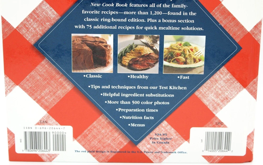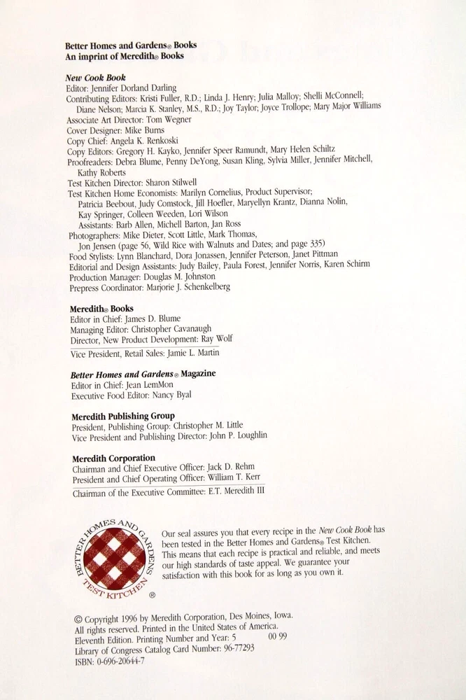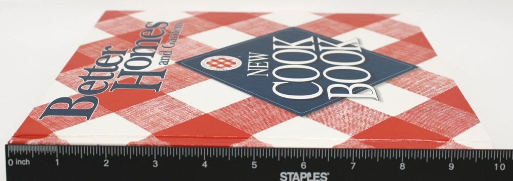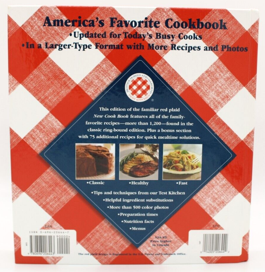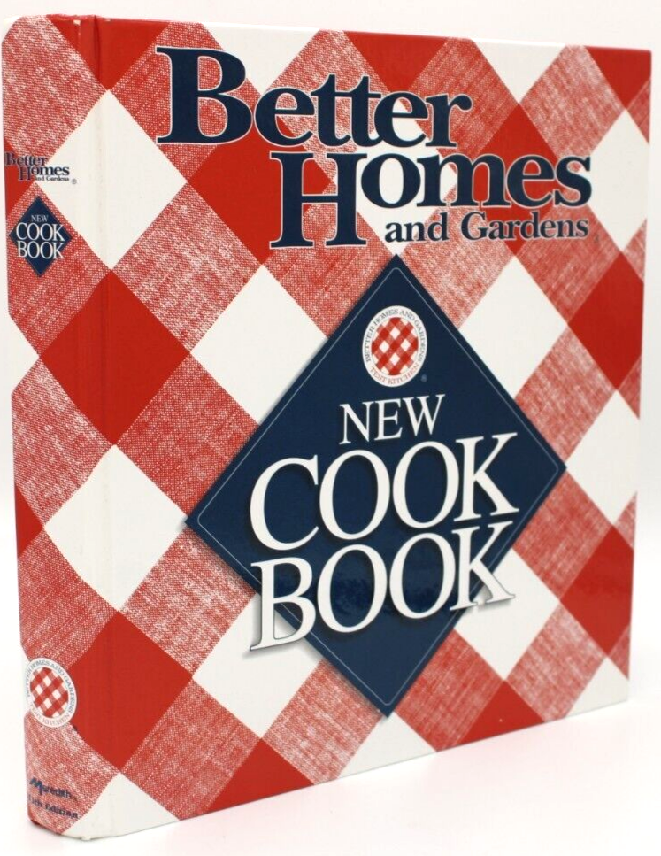 This is a vintage hardcover cookbook entitled "Better Homes and Gardens New Cook Book" by the Better Homes and Gardens editors. It is in English, has 575 pages, and includes color photos and cooking basics. The book measures 10 inches in length, 9.5 inches in width, and 1.25 inches in height, with a weight of 63 ounces. There are no missing or damaged interior pages, with the exception of page 283, which has a slight wrinkle at the bottom right corner. Published by Meredith Books in 1996, it is intended for adults. Shipped USPS Media Mail.