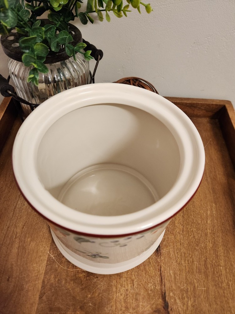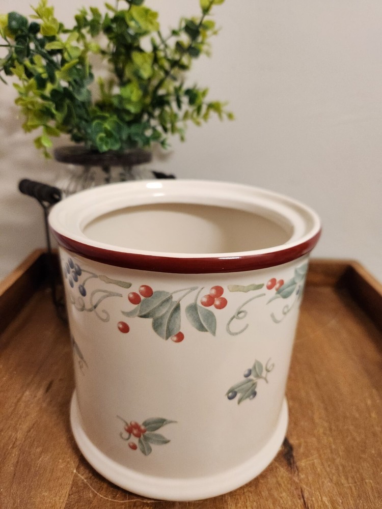 Corelle/Jay Imports "Abundance" EXTRA LARGE NO LID Makes a great utensil holder too! There is a small chip on the inside rim. See pic. Height: 6 7/8 in Width: 6 3/4 in...