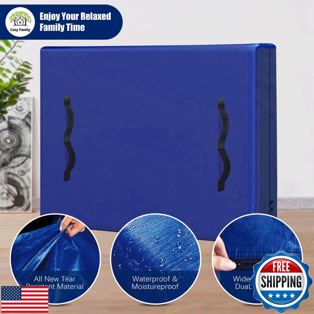 Cosy Family Mattress Bags for Moving with 8 Handles - 170GSM Extra-Thick Mattress Bag for Moving Supplies - Reusable Mattress Cover Protector Storage with Zipper - Queen Size - Blue Features UPGRADED Mattress Protection - Safeguard your valuable mattress during transport or storage with this durable mattress bag. Made of tough 170GSM polyethylene tarpaulin, it provides long-lasting protection against damage from rips, water, and dust. Convenient Handles - Featuring 8 sturdy handles, this mattress bag makes it easy to carry your mattress upstairs, through narrow hallways, and into tight storage spaces. The design allows one person to effortlessly maneuver the mattress without assistance. Privacy and Water-Resistance - The opaque blue color of the bag protects your privacy and hides the mattress from plain view. In addition, the water-resistant tarp material ensures your mattress stays dry and in pristine condition in sheds, attics, and basements. Reusable and Eco-Friendly - Constructed of durable material, this mattress bag can be reused multiple times, eliminating the need for disposable protectors. This not only saves you money but also reduces waste and environmental impact. The bag is versatile and can also be used to protect box springs and other furniture. Durable Construction - Overall, this mattress bag provides peace of mind for renovating, moving, or long-term storage, offering exceptional durability, convenience, privacy, while being environmentally friendly and cost-effective. Shipping Free & Fast Shipping: We offer free shipping to most of the USA with a normal delivery time of 3-7 days. However, due to the current situation, additional delivery time (up to 3 weeks) may be required for some items. Alternative Carriers: We may use alternative carriers (e.g., USPS, FedEx, UPS) to ensure your package arrives safely and on time. Due to the use of multiple carriers, we are unable to provide a tracking number automatically. Handling Time: Orders are processed and shipped within 1-2 business days of receiving cleared payment. Shipping Restrictions: Shipping to Alaska, Hawaii, Puerto Rico, Guam, and other US territories may incur shipping charges or delivery restrictions. Please contact us before ordering, or your order can be refunded/cancelled. State Restrictions: Certain items may not be shipped to California due to state regulations. Contact for Tracking Updates: If you require tracking updates or have any concerns about the delivery of your order, please feel free to contact us, and we will be happy to assist you. Return Policy 30-Day Hassle-Free Returns: If you are not completely satisfied with your purchase, you can return the item for free within 30 days of receiving it for a full refund or exchange. Easy Return Process: Contact us, and we will provide you with a prepaid return shipping label and detailed instructions. No Restocking Fee: There are no restocking fees for returns. However, the buyer is responsible for return shipping costs if the return is not due to a seller's error. Refund Processing: Refunds will be processed within 1 business day of receiving the returned item in its original condition. Payment We accept all major credit cards, PayPal, and Apple Pay for your convenience. Your payment information is secure and encrypted to ensure a safe and seamless transaction. Please complete your payment within 3 days of purchase to avoid any delays in shipping. Feedback Your feedback is extremely important to us. We strive to provide the best products and customer service possible. If you are satisfied with your purchase, please take a moment to leave us a positive review. If you have any concerns or issues with your order, please contact us before leaving negative feedback. We are committed to resolving any problems and ensuring your satisfaction. Contact Us If you have any questions or concerns, please feel free to reach out to our customer support team. You can contact us through the eBay messaging system. We are available Monday to Friday, 9:00 am to 5:00 pm EST, and we will do our best to respond to your inquiry within 24 hours. Thank you for supporting our small family business!