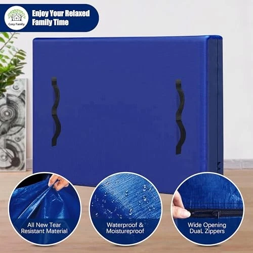 30 Days Return Policy Fast Delivery Trusted seller Cosy Family Mattress Bags for Moving with 8 Handles - 170GSM Extra-Thick Mattress Bag for Moving Supplies - Reusable Mattress Cover Protector Storage with Zipper - Queen Size - Blue Product Description UPGRADED Mattress Protection - Safeguard your valuable mattress during transport or storage with this durable mattress bag. Made of tough 170GSM polyethylene tarpaulin, it provides long-lasting protection against damage from rips, water, and dust. Convenient Handles - Featuring 8 sturdy handles, this mattress bag makes it easy to carry your mattress upstairs, through narrow hallways, and into tight storage spaces. The design allows one person to effortlessly maneuver the mattress without assistance. Privacy and Water-Resistance - The opaque blue color of the bag protects your privacy and hides the mattress from plain view. In addition, the water-resistant tarp material ensures your mattress stays dry and in pristine condition in sheds, attics, and basements. Reusable and Eco-Friendly - Constructed of durable material, this mattress bag can be reused multiple times, eliminating the need for disposable protectors. This not only saves you money but also reduces waste and environmental impact. The bag is versatile and can also be used to protect box springs and other furniture. Durable Construction - Overall, this mattress bag provides peace of mind for renovating, moving, or long-term storage, offering exceptional durability, convenience, privacy, while being environmentally friendly and cost-effective. Shipping Returns Payment Shipping Shipping is FREE to all addresses other than APO/PO boxes in the lower 48 states. All our stock ships from US-based warehouses. Shipped via USPS or UPS (depending on location and package weight) Unless stated otherwise, all orders will ship within 24-72 hours of your payment being processed. Check our feedback to see the great reviews of FAST shipping we offer. Returns As our valued customer, we will do our best to make sure the product you receive arrives to you on time and as expected. If you are not satisfied with your purchase, please contact us within 30 days of receiving your order to process a return. Payment We currently accept payment via eBay managed payments only. Once payment is cleared, we will dispatch your shipment within 1-3 business days. Please refer to the "Shipping" tab for more information regarding shipping speed to your destination.