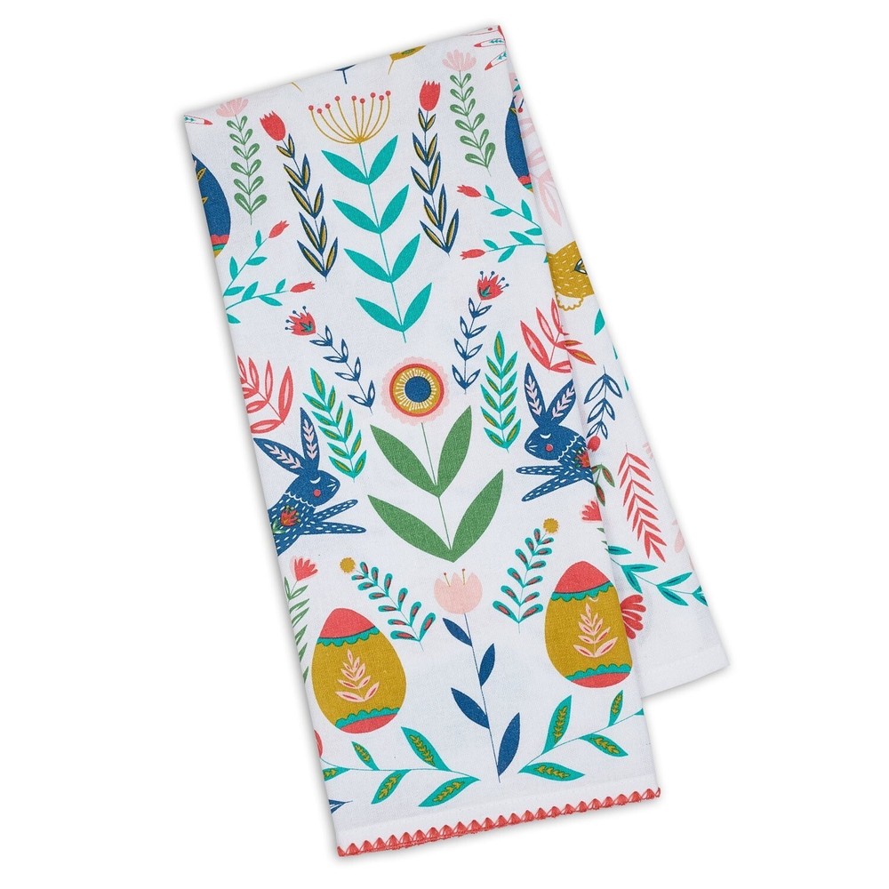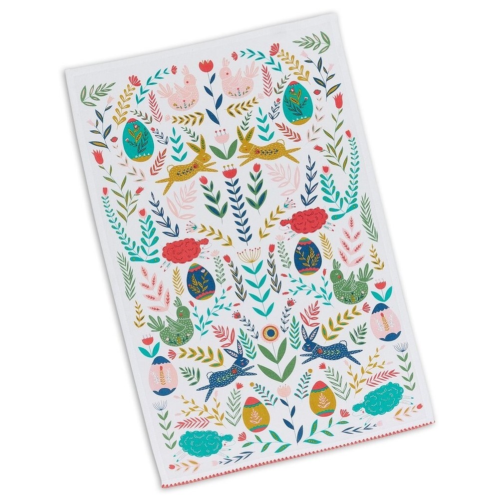 Easter Folk Garden Printed Dishtowel 18" x 28" 100% Cotton Machine wash cold separately | Gentle cycle | Tumble dry low | Low iron | Wash separately before use.