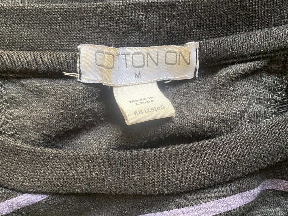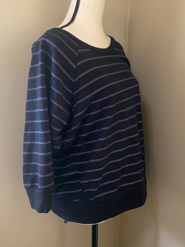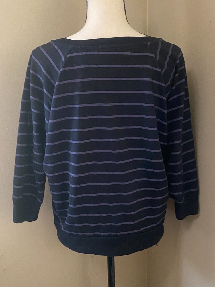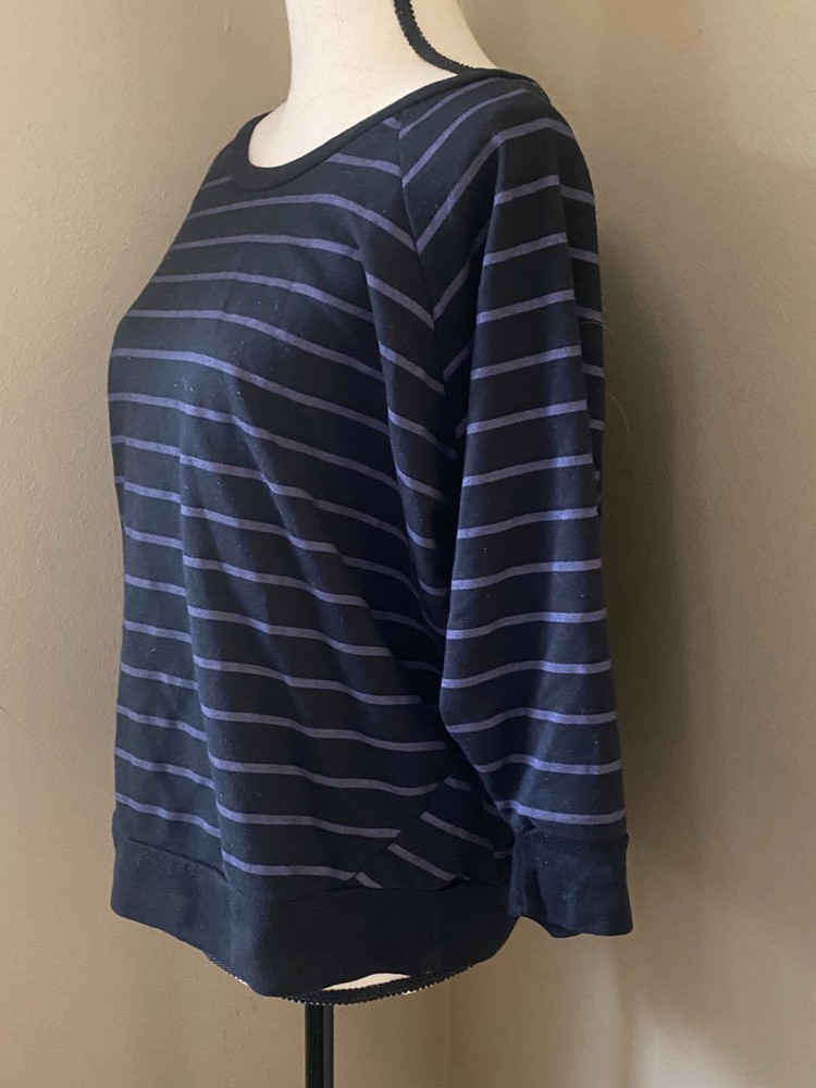 Cotton On Women's M 3/4 Sleeve Black Purple Stripe Sweatshirt Pullover Top Good condition, light overall piling from wash/wear. Super comfy. 3/4 sleeve tags differ. One says 100% cotton, one says 55% cotton, 35% polyester. Shirt measures: 23.5" armpit to armpit, 24" length from shoulder to bottom hem, 13" from armpit to sleeve end.