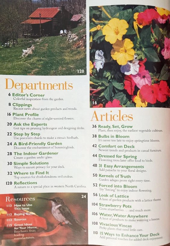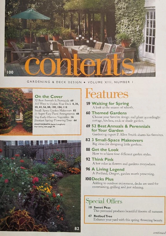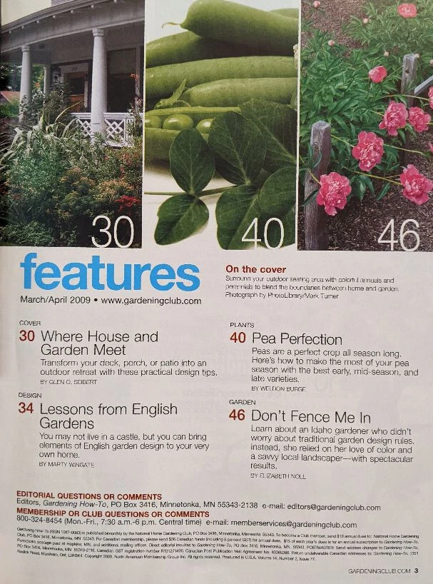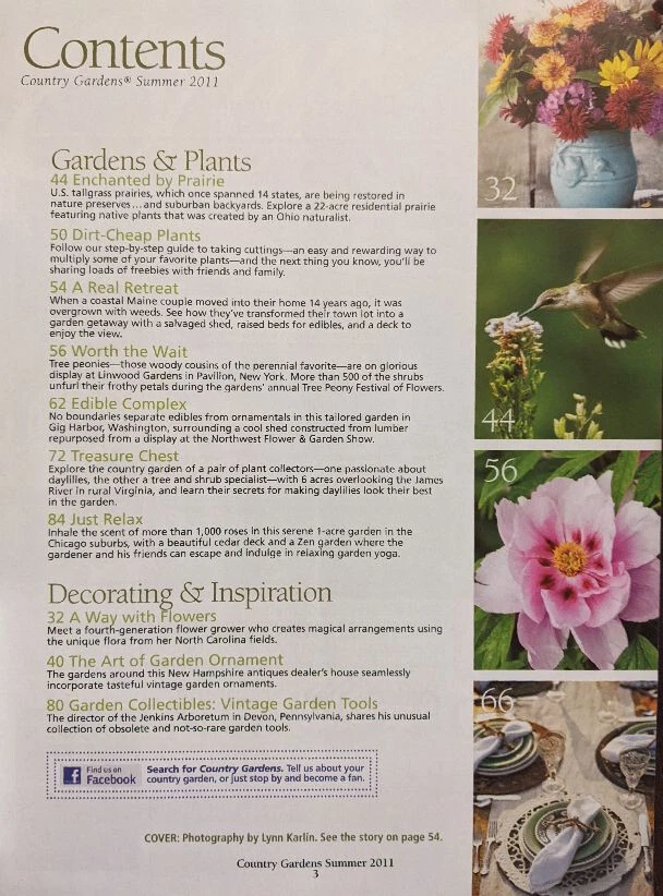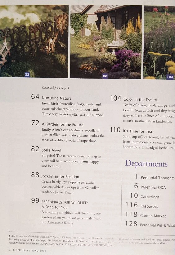 Country Gardens Magazine Better Homes & Gardens - You Choose Better Homes & Gardens Publications: Fall 2016 Country Gardens - 112 pages Summer 2016 Country Gardens - 112 pages Spring 2016 Country Gardens - 112 pages Summer 2014 Country Gardens - 112 pages Summer 2011 Country Gardens - 112 pages Fall 2009 Country Gardens - 112 pages Early Spring 2009 Country Gardens - 112 pages Fall 2008 Country Gardens - 112 pages Early Spring 2008 Country Gardens - 112 pages Summer 2007 Country Gardens - 112 pages Fall 2006 Country Gardens - 112 pages Spring 2006 Country Gardens - 112 pages Garden Ideas & Outdoor Living Sum '08 - 128 pages Garden, Deck, & Landscape Sum '99 - 128 pages Garden Shed Spring 2006 - 128 pages Perennials Spring 2000 Premier Issue - 128 pages Other Publications: Backyard Living Jul/Aug 2005 - 66 pages - Remain Media Group, Inc. Beautiful Gardens Jul/Aug 1994 - 64 pages - CMK Publishing, Inc. Country Living Gardener April 2000 - 128 pages - Hearst Communications Gardening & Deck Design 2003, Vol13 Issue 1 - 120 pages - Woman's Day Special Publications Gardening How-To Mar/Apr 2009 - 75 pages - National Home Gardening Club Gardening How-To Mar/Apr 2005 - 122 pages - label torn off - National Home Gardening Club Perennials Spring 2000 Premier Issue - 128 pages Thank you for considering these Magazines! Smoke-free, climate controlled environment. Have you seen my other shop listings? Please contact me if you have any questions. Please review all photos before purchase. All sales are final.