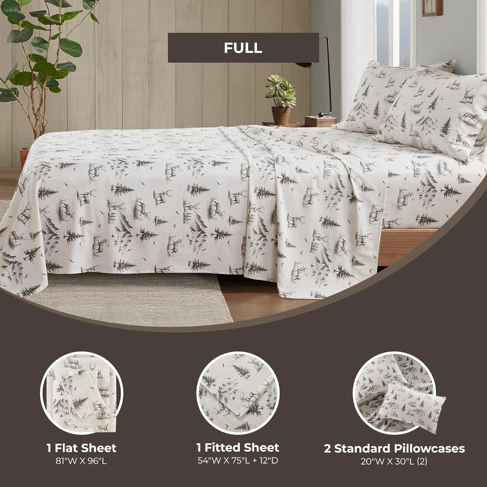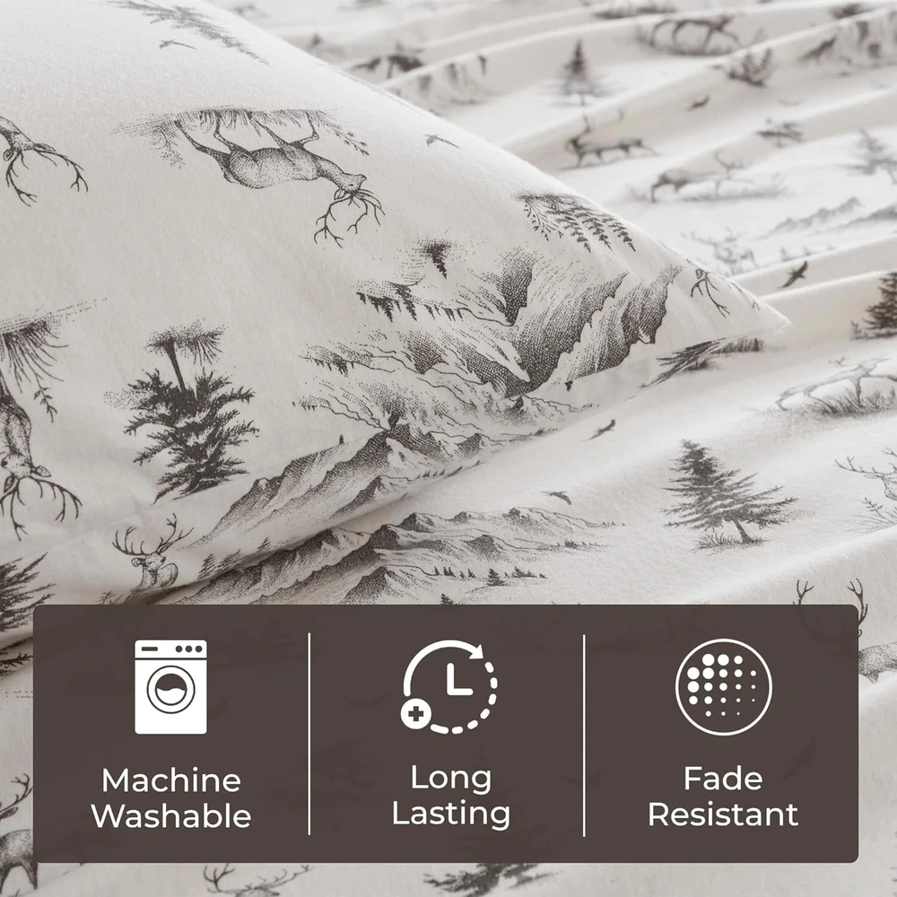 Cozy 100% Cotton Flannel Sheet Set in Gray Deer Toile - Full Size Comfort ‹ › ‹ › ‹ › ‹ › ‹ › ‹ › ‹ › ‹ › ‹ › Cozy 100% Cotton Flannel Sheet Set in Gray Deer Toile Full Size Comfort Product Highlights: Material: 100% breathable cotton flannel Care Instructions: Machine washable; wash in cold water on a gentle cycle separately. Add 1/2 cup of distilled vinegar during your first wash to reduce fuzz and lint. Dimensions: 1 Flat Sheet: 81"W x 96"L 1 Fitted Sheet: 54"W x 75"L + 12"D 2 Standard Pillowcases: 21"W x 30"L All-elastic pocket fitted sheet for a secure fit for mattresses up to 14" deep OEKO-TEX certified, ensuring no harmful substances or chemicals Why You'll Love It: Transform your bedroom into a cozy cabin retreat with our Flannel Sheet Set adorned in charming gray deer toile prints. Each sheet is crafted from 100% cotton flannel, which has been gently brushed for an irresistibly soft and snuggly feel, making bedtime a delightful experience. Designed for comfort and convenience, the fitted sheet features an all-elastic pocket ensuring a snug fit on your mattress. Whether it's chilly winter nights or a desire for a warm embrace, these sheets will keep you tucked in and warm without sacrificing breathability. Experience the Difference: Not only do you get aesthetic appeal with delightful designs fitting contemporary and rustic styles alike, but you also invest in your well-being. Each flannel sheet is OEKO-TEX certified, meaning you can indulge in your cozy retreat without the worry of harmful chemicals or substances. Show your bedroom some love with a touch of rustic elegance. Elevate your sleep experience—experience the warmth, comfort, and quality of our Cozy 100% Cotton Flannel Sheet Set today! Shipping Free & Fast Shipping - We offer free shipping to most of the USA with a normal delivery time of 3-10 businessdays. However, due to various situations, additional delivery time (up to 3 weeks) may be required for some items. Alternative Carriers - We may use alternative carriers (e.g. USPS, FedEx, UPS, etc.) to ensure your package arrives safely and on time. Due to the use of multiple carriers, we are unable to provide a tracking number automatically. Handling Time - Orders are processed and shipped within 1-5 business days of receiving cleared payment. Shipping Restrictions - Shipping to Alaska, Hawaii, Puerto Rico, Guam, and other US territories may incur shipping charges or delivery restrictions. Please contact us before ordering, or your order can be refunded/cancelled. State Restrictions - There may be restrictions based on your state of purchase. For example, certain items may not be shipped to California due to state regulations. Contact for Tracking Updates - If you require tracking updates or have any concerns about the delivery of your order, please feel free to contact us, and we will be happy to assist you. Return Please see our ebay return policy. We do not accept return on most products. This is to avoid customers mis-using ebay returns. All sales are final. Please be sure to check the return policy listed at the top of the listing. In rare cases, we may accept returns, if the buyer pays both ways shipping and 20% restocking fee. If you are un-sure of return policy of a particular item, please ask before buying. Payment We accept all major credit cards, PayPal, and Apple Pay for your convenience. Your payment information is secure and encrypted to ensure a safe and seamless transaction. Please complete your payment within 3 days of purchase to avoid any delays in shipping. Feedback Your feedback is extremely important to us. We strive to provide the best products and customer service possible. If you are satisfied with your purchase, please take a moment to leave us a positive review. If you have any concerns or issues with your order, please contact us before leaving negative feedback. We are committed to resolving any problems and ensuring your satisfaction. Contact Us If you have any questions or concerns, please feel free to reach out to our customer support team. You can contact us through the eBay messaging system. We are available Monday to Friday, 9:00 am to 5:00 pm EST, and we will do our best to respond to your inquiry within 24 hours. Buy it now and enjoy a pleasant shopping experience! UPC: Not Set Item Length: Not Set Item Width: Not Set Unit Quantity: 4 Material: 100% Cotton,Flannel Character: Not Set Features: Deep Fitted,Machine Washable Theme: Not Set Care Instructions: Machine Wash Department: Adults Room: Bedroom Labels & Certifications: Not Set Brand: Unbranded Size: Full Type: Sheet Set Color: Gray Pattern: Toile MPN: Not Set Country/Region of Manufacture: Not Set Thread Count: 401-600 Style: Lodge/Cabin Character Family: Not Set Shape: Rectangular Model: Not Set GSM (Grams per Square Meter): Not Specified Product Line: Not Set Unit Type: Unit