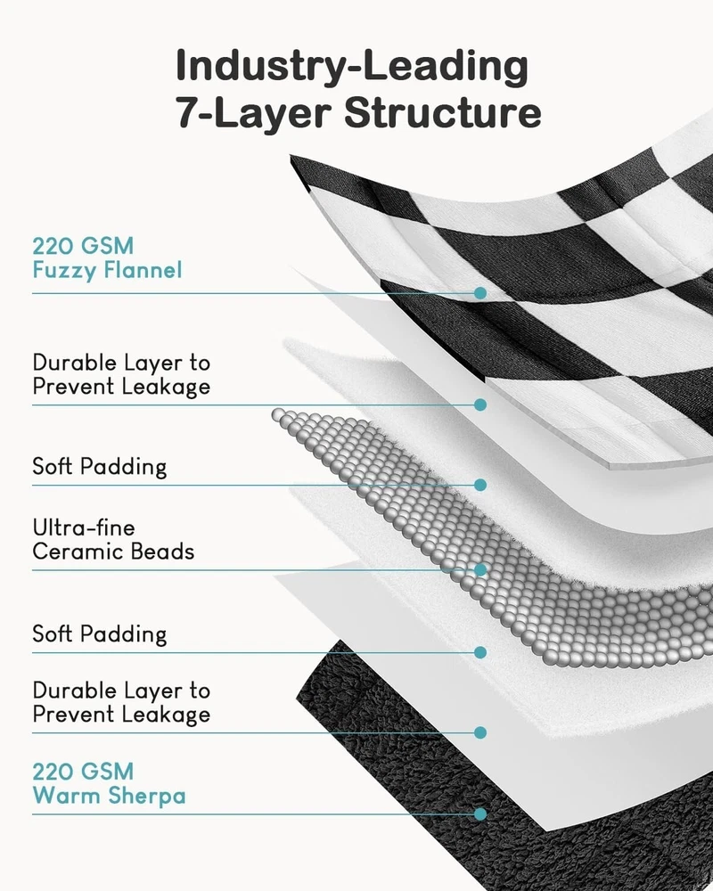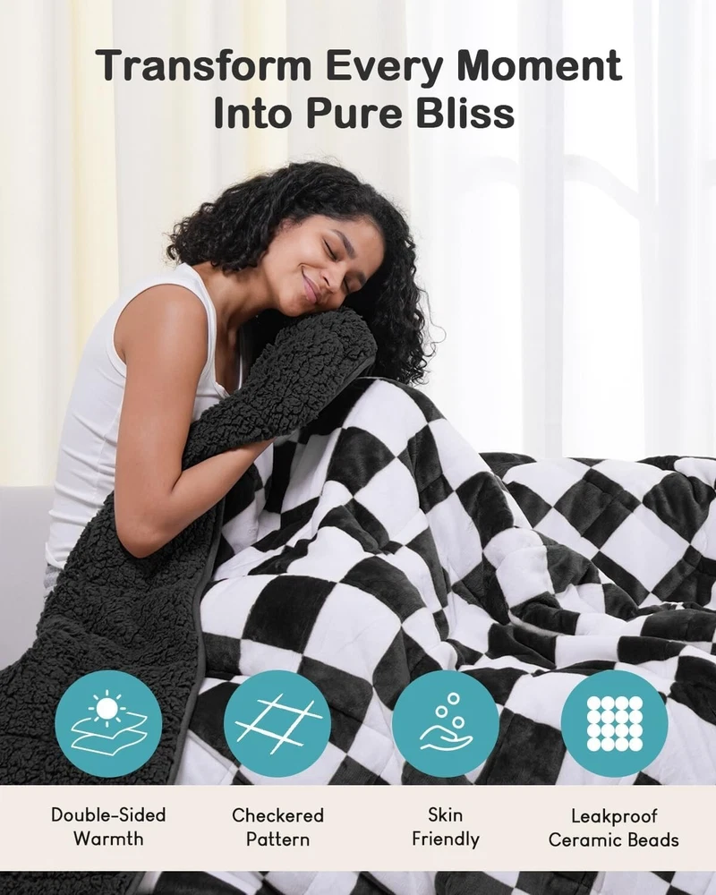 This weighted blanket is a game-changer for relaxation! The gentle pressure from the ultra-fine beads feels like a warm hug, perfect for dozing off or curling up with a book. Love that it’s machine washable—so easy to care for. The checkered design looks stylish, and the seven-layer construction keeps the weight evenly spread. Super cozy and well-made, definitely worth it!