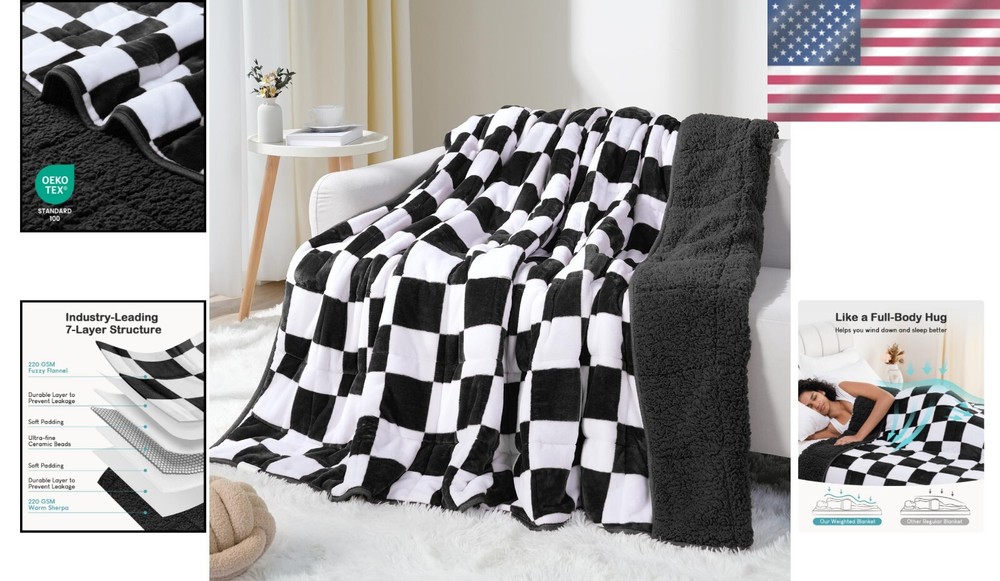 Cozy 15lbs Weighted Blanket - Perfect for Napping & Reading, Machine Washable ‹ › ‹ › ‹ › ‹ › ‹ › ‹ › ‹ › ‹ › ‹ › ‹ › ‹ › Cozy 15lbs Weighted Blanket -Perfect for Napping & Reading -Machine Washable Features: Filled with ultra-fine ceramic beads (0.8-1mm), this blanket provides just the right pressure, emulating a comforting hug. Exquisite checkered design adds a decorative touch to any room, available in multiple colors. Constructed with 7 layers for durability and even weight distribution, ensuring minimal bead leakage. OEKO-TEX STANDARD 100 certified, safe and skin-friendly for the entire family. Double-sided design: one side features soft flannel, while the other side is fluffy Sherpa - perfect for cold nights. Customizable weight and sizes, tailored for your comfort (choose a blanket that’s 8%-12% of your body weight). Benefits: Enhances sleep quality and helps ease stress, lifting your mood effortlessly. Visually pleasing design complements any living space, making it a delightful addition to your home decor. Versatile for everyday use; ideal for reading, working, or simply lounging. Durable material ensures longevity, while the easy-care fabric allows for convenience. Perfect present for special occasions like Valentine's Day, birthdays, or festivals. Why choose our Cozy Weighted Blanket? Indulge in the serene comfort of our Cozy 15lbs Weighted Blanket, designed to envelop you in relaxation while enhancing your overall well-being. Made to embrace you with the comforting weight of ultra-fine ceramic beads, this blanket promises to transform both your napping experiences and relaxation moments. With its unique checkered design and luxurious double-sided warmth, it not only serves its purpose impeccably but also adds a decorative flair to your living space. Choose our weighted blanket to improve your sleep, relieve stress, and create an oasis of tranquility—because when you sleep better, you live better. Treat yourself or someone you love this Valentine's Day with the gift of ultimate comfort. Shipping Free & Fast Shipping - We offer free shipping to most of the USA with a normal delivery time of 3-7 days. However, due to the current situation, additional delivery time (up to 3 weeks) may be required for some items. Alternative Carriers - We may use alternative carriers (e.g. USPS, FedEx, UPS, etc.) to ensure your package arrives safely and on time. Due to the use of multiple carriers, we are unable to provide a tracking number automatically. Handling Time - Orders are processed and shipped within 1-2 business days of receiving cleared payment. Shipping Restrictions - Shipping to Alaska, Hawaii, Puerto Rico, Guam, and other US territories may incur shipping charges or delivery restrictions. Please contact us before ordering, or your order can be refunded/cancelled. State Restrictions - There may be restrictions based on your state of purchase. For example, certain items may not be shipped to California due to state regulations. Contact for Tracking Updates - If you require tracking updates or have any concerns about the delivery of your order, please feel free to contact us, and we will be happy to assist you. Return 30-Day Hassle-Free Returns - We want you to be completely satisfied with your purchase. If you are not, you can return the item within 30 days of receiving it for a full refund or exchange. Easy Return Process - To start a return, simply contact us and we will provide you with a prepaid return shipping label and detailed instructions. Restocking Fee - There are no restocking fees for returns. However, the buyer is responsible for return shipping costs if the return is not due to a seller's error. Refund Processing Time - Refunds will be processed within 5 business days of receiving the returned item in its original condition. Payment We accept all major credit cards, PayPal, and Apple Pay for your convenience. Your payment information is secure and encrypted to ensure a safe and seamless transaction. Please complete your payment within 3 days of purchase to avoid any delays in shipping. Feedback Your feedback is extremely important to us. We strive to provide the best products and customer service possible. If you are satisfied with your purchase, please take a moment to leave us a positive review. If you have any concerns or issues with your order, please contact us before leaving negative feedback. We are committed to resolving any problems and ensuring your satisfaction. Contact Us If you have any questions or concerns, please feel free to reach out to our customer support team. You can contact us through the eBay messaging system. We are available Monday to Friday, 9:00 am to 5:00 pm EST, and we will do our best to respond to your inquiry within 24 hours. Buy it now and enjoy a pleasant shopping experience! UPC: Not Set Item Length: Not Set Item Width: Not Set Unit Quantity: 1 Material: Fleece,Sherpa Features: Weighted,Skin Friendly,Double-Sided Warmth,Even Weight Distribution,Luxury Feel,Durable,Eco-Friendly Theme: Gift Character: Not Set Care Instructions: Machine Wash Department: Kids,Adults Room: Bedroom,Living Room Labels & Certifications: Not Set Brand: Unbranded Size: 48 x 72 Type: Weighted Blanket Color: Plaid Black Character Family: Not Set Pattern: Checkered Style: Modern MPN: Not Set Shape: Rectangular Country/Region of Manufacture: Not Set Insulation: Warm Closure Type: No Closure GSM (Grams per Square Meter): Over 800 Product Line: Not Set Drop Length: Not Set Model: Not Set Thread Count: 201-400 Unit Type: Unit Personalize: Not Set