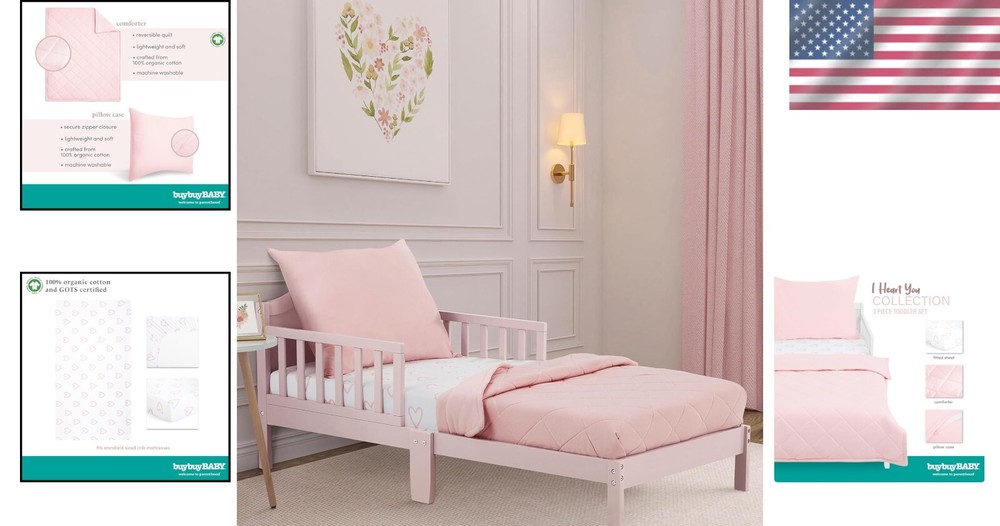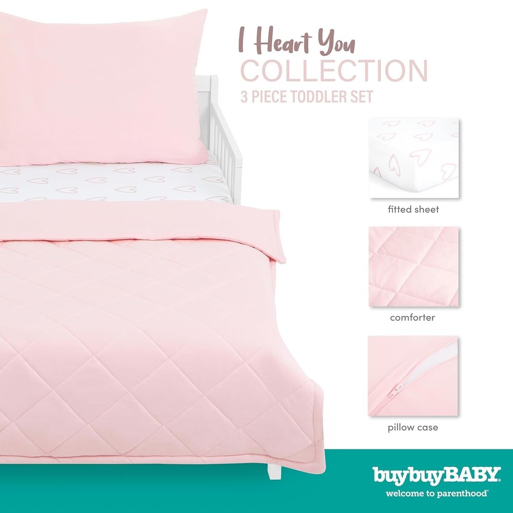 Cozy 3 Piece Toddler Bedding Set with Zippered Pillowcase - I Heart You Theme ‹ › ‹ › ‹ › ‹ › ‹ › ‹ › ‹ › ‹ › Cozy 3 Piece Toddler Bedding Set – I Heart You Theme Transform your toddler’s transition to a big kid bed with this delightful bedding set designed for comfort and safety. Product Features: Toddler BFF: Includes a fitted sheet, a cozy comforter, and a zippered pillowcase for enhanced safety. For Cozy Sleep: Crafted from 100% GOTS certified organic cotton, ensuring a safe sleeping environment for your little one. Curious Variations: Available in 8 adorable themes to match your child’s personality - including Be Wild, Rain-Boho, I Heart You, Zoo Love, Dreamer, Rawr-Some, Grizzly Bear & Space Adventure. Product Specifications: Toddler Pillow Case: 20"L x 26"W Toddler Comforter: 45"L x 36"W Toddler Fitted Sheet: 52"L x 28"W x 8"H Why Choose Our Cozy Bedding Set? Every little one deserves a cozy and safe place to dream, and this 3 Piece Toddler Bedding Set does just that. With its thoughtfully designed zippered pillowcase and completely organic materials, you can rest easy knowing your child is sleeping in a healthy environment. Choose the I Heart You theme to inspire love and comfort at bedtime, or explore our other enchanting themes for an imaginative sleep experience. Give your child the gift of sweet dreams—order the Cozy 3 Piece Toddler Bedding Set today! Shipping Free & Fast Shipping - We offer free shipping to most of the USA with a normal delivery time of 3-7 days. However, due to the current situation, additional delivery time (up to 3 weeks) may be required for some items. Alternative Carriers - We may use alternative carriers (e.g. USPS, FedEx, UPS, etc.) to ensure your package arrives safely and on time. Due to the use of multiple carriers, we are unable to provide a tracking number automatically. Handling Time - Orders are processed and shipped within 1-2 business days of receiving cleared payment. Shipping Restrictions - Shipping to Alaska, Hawaii, Puerto Rico, Guam, and other US territories may incur shipping charges or delivery restrictions. Please contact us before ordering, or your order can be refunded/cancelled. State Restrictions - There may be restrictions based on your state of purchase. For example, certain items may not be shipped to California due to state regulations. Contact for Tracking Updates - If you require tracking updates or have any concerns about the delivery of your order, please feel free to contact us, and we will be happy to assist you. Return 30-Day Hassle-Free Returns - We want you to be completely satisfied with your purchase. If you are not, you can return the item within 30 days of receiving it for a full refund or exchange. Easy Return Process - To start a return, simply contact us and we will provide you with a prepaid return shipping label and detailed instructions. Restocking Fee - There are no restocking fees for returns. However, the buyer is responsible for return shipping costs if the return is not due to a seller's error. Refund Processing Time - Refunds will be processed within 5 business days of receiving the returned item in its condition. Payment We accept all major credit cards, PayPal, and Apple Pay for your convenience. Your payment information is secure and encrypted to ensure a safe and seamless transaction. Please complete your payment within 3 days of purchase to avoid any delays in shipping. Feedback Your feedback is extremely important to us. We strive to provide the best products and customer service possible. If you are satisfied with your purchase, please take a moment to leave us a positive review. If you have any concerns or issues with your order, please contact us before leaving negative feedback. We are committed to resolving any problems and ensuring your satisfaction. Contact Us If you have any questions or concerns, please feel free to out to our customer support team. You can contact us through the eBay messaging system. We are available Monday to Friday, 9:00 am to 5:00 pm EST, and we will do our best to respond to your inquiry within 24 hours. Buy it now and enjoy a pleasant shopping experience! Unit Quantity: 3 To Fit: Toddler Bed Gender: Unisex Type: Bedding Sets Color: Baby Pink Theme: Heart Material: Organic Cotton Unit Type: lb