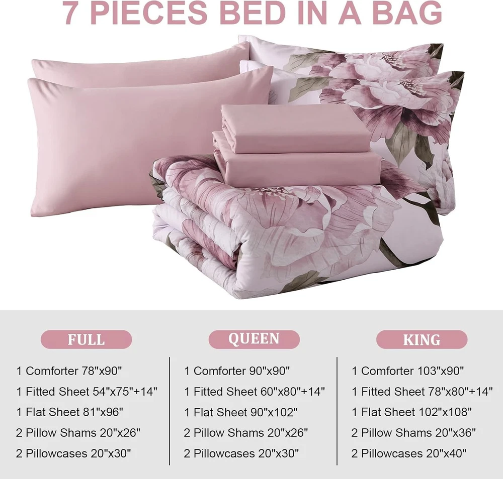 This comforter set is absolutely gorgeous! The pink floral design adds such a lovely, elegant touch to my bedroom, and the material is so soft and cozy. I love that it's machine washable—super convenient for keeping it fresh. The 7-piece set has everything I need, and the quality is amazing for the price. It feels luxurious and makes my room look like a boutique hotel. Definitely worth buying!
