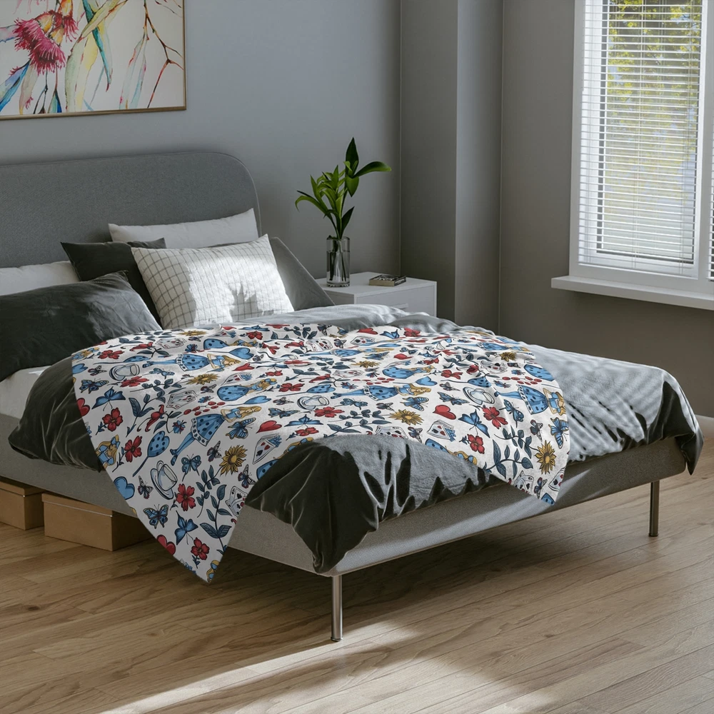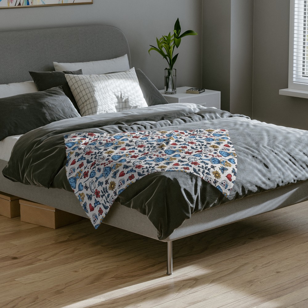 Wrap yourself in the luxurious velveteen fabric of this Cozy Alice Down The Rabbit Hole Cottage core microfiber blanket. The blanket is made of high-quality microfiber material that is soft and comfortable to the touch. The cottage style and rabbit hole design add a touch of whimsy to your home décor. Perfect for snuggling up on a chilly evening, this blanket will keep you cozy and stylish. Ideal for any room in your home, this Cozy Alice blanket is perfect for adding a pop of color and texture to your couch, bed, or armchair. The blanket is easy to care for and is machine washable, making it a practical choice for everyday use. Whether you're looking for a cozy addition to your home or a thoughtful gift for a loved one, this blanket is sure to delight.