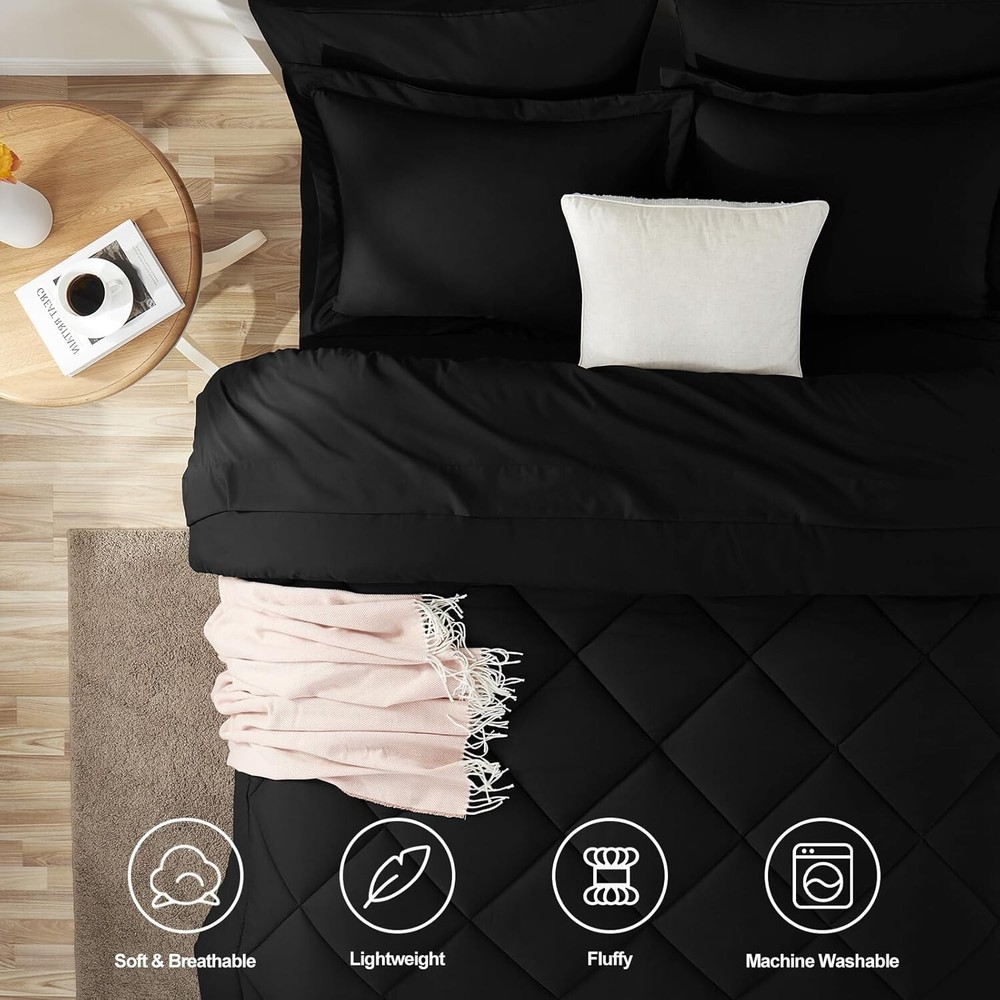 Cozy All-Season Black Twin Comforter Set - 5-Piece with Deep Pocket Sheets ‹ › ‹ › ‹ › ‹ › ‹ › ‹ › ‹ › ‹ › ‹ › Cozy All-Season Black Twin Comforter Set - 5-Piece with Deep Pocket Sheets Transform your bedroom into a sanctuary of comfort and style with this exquisite 5-piece Twin Comforter Set. Elegant in black, it is designed to wrap you in warmth while adding a touch of sophistication to your space. Key Features: Soft and Breathable: Crafted from premium microfiber fabric that is both breathable and sweat-absorbent, ensuring a tranquil night’s sleep. The down alternative filling is soft and gentle on the skin, perfect for those sensitive to goose down and feathers. Elaborate Design: Featuring durable box stitching for a refined aesthetic, this comforter not only looks great but also maintains the stability of its filling. The deep pocket fitted sheet accommodates mattresses up to 14" deep, offering a secure fit that stays in place no matter how you move. Complete Set: This Twin Size bed in a bag includes: 1 Comforter (68" x 88") 1 Pillow Sham (20" x 26") 1 Flat Sheet (66" x 96") 1 Fitted Sheet (39" x 75" + 14") 1 Pillowcase (20" x 30") Easy Care: Designed for busy lifestyles, this bedding set is machine washable. To maintain its softness and prevent pilling, wash in a gentle cycle with cold water. Tumble dry on low or sun-dry as needed for long-lasting comfort. Dedicated Customer Service: Your satisfaction is our priority. Please contact us with any inquiries, and we will strive to provide prompt and effective assistance. Why Choose Our Cozy All-Season Comforter Set? Indulge in the comfort of luxurious bedding that speaks volumes of elegance and practicality. Our Cozy All-Season Black Twin Comforter Set not only enhances the aesthetics of your bedroom but guarantees restful nights filled with warmth. Upgrade your sleeping experience with this exquisite comforter set that combines style, functionality, and comfort. Order yours today and experience the delight of cozy, luxurious sleep all year long! Shipping Free & Fast Shipping - We offer free shipping to most of the USA with a normal delivery time of 3-10 businessdays. However, due to various situations, additional delivery time (up to 3 weeks) may be required for some items. Alternative Carriers - We may use alternative carriers (e.g. USPS, FedEx, UPS, etc.) to ensure your package arrives safely and on time. Due to the use of multiple carriers, we are unable to provide a tracking number automatically. Handling Time - Orders are processed and shipped within 1-5 business days of receiving cleared payment. Shipping Restrictions - Shipping to Alaska, Hawaii, Puerto Rico, Guam, and other US territories may incur shipping charges or delivery restrictions. Please contact us before ordering, or your order can be refunded/cancelled. State Restrictions - There may be restrictions based on your state of purchase. For example, certain items may not be shipped to California due to state regulations. Contact for Tracking Updates - If you require tracking updates or have any concerns about the delivery of your order, please feel free to contact us, and we will be happy to assist you. Return Please see our ebay return policy. We do not accept return on most products. This is to avoid customers mis-using ebay returns. All sales are final. Please be sure to check the return policy listed at the top of the listing. In rare cases, we may accept returns, if the buyer pays both ways shipping and 20% restocking fee. If you are un-sure of return policy of a particular item, please ask before buying. Payment We accept all major credit cards, PayPal, and Apple Pay for your convenience. Your payment information is secure and encrypted to ensure a safe and seamless transaction. Please complete your payment within 3 days of purchase to avoid any delays in shipping. Feedback Your feedback is extremely important to us. We strive to provide the best products and customer service possible. If you are satisfied with your purchase, please take a moment to leave us a positive review. If you have any concerns or issues with your order, please contact us before leaving negative feedback. We are committed to resolving any problems and ensuring your satisfaction. Contact Us If you have any questions or concerns, please feel free to reach out to our customer support team. You can contact us through the eBay messaging system. We are available Monday to Friday, 9:00 am to 5:00 pm EST, and we will do our best to respond to your inquiry within 24 hours. Buy it now and enjoy a pleasant shopping experience! UPC: Not Set Model: Not Set Set Includes: Comforter,Fitted Sheet,Flat Sheet,Pillowcase,Pillow Sham Material: Microfiber Features: Breathable,Down Alternative Character: Not Set Theme: Seasonal Care Instructions: Machine Wash Department: Unisex Baby & Toddler,Kids,Teens,Adults Room: Bedroom Labels & Certifications: Not Set Size: Twin Type: Comforter Set Brand: Unbranded Color: Black Fill Material: Microfiber Pattern: Solid Item Width: Not Set Item Length: Not Set MPN: Not Set Character Family: Not Set Number of Items in Set: 5 Insulation: All Seasons Style: Modern Season: All Country/Region of Manufacture: Not Set Closure Type: No Closure Thread Count: 200 or Less Drop Length: Not Set GSM (Grams per Square Meter): 150 to 300 Product Line: Not Set Personalize: Not Set