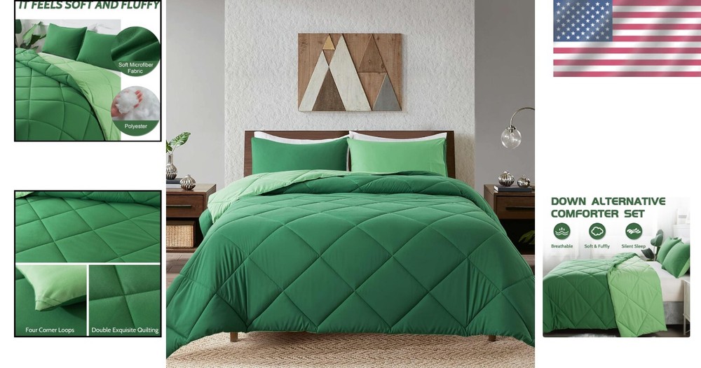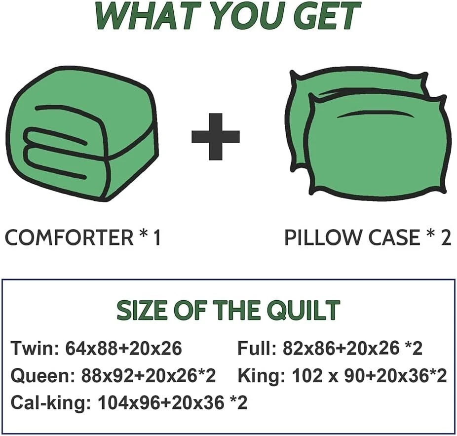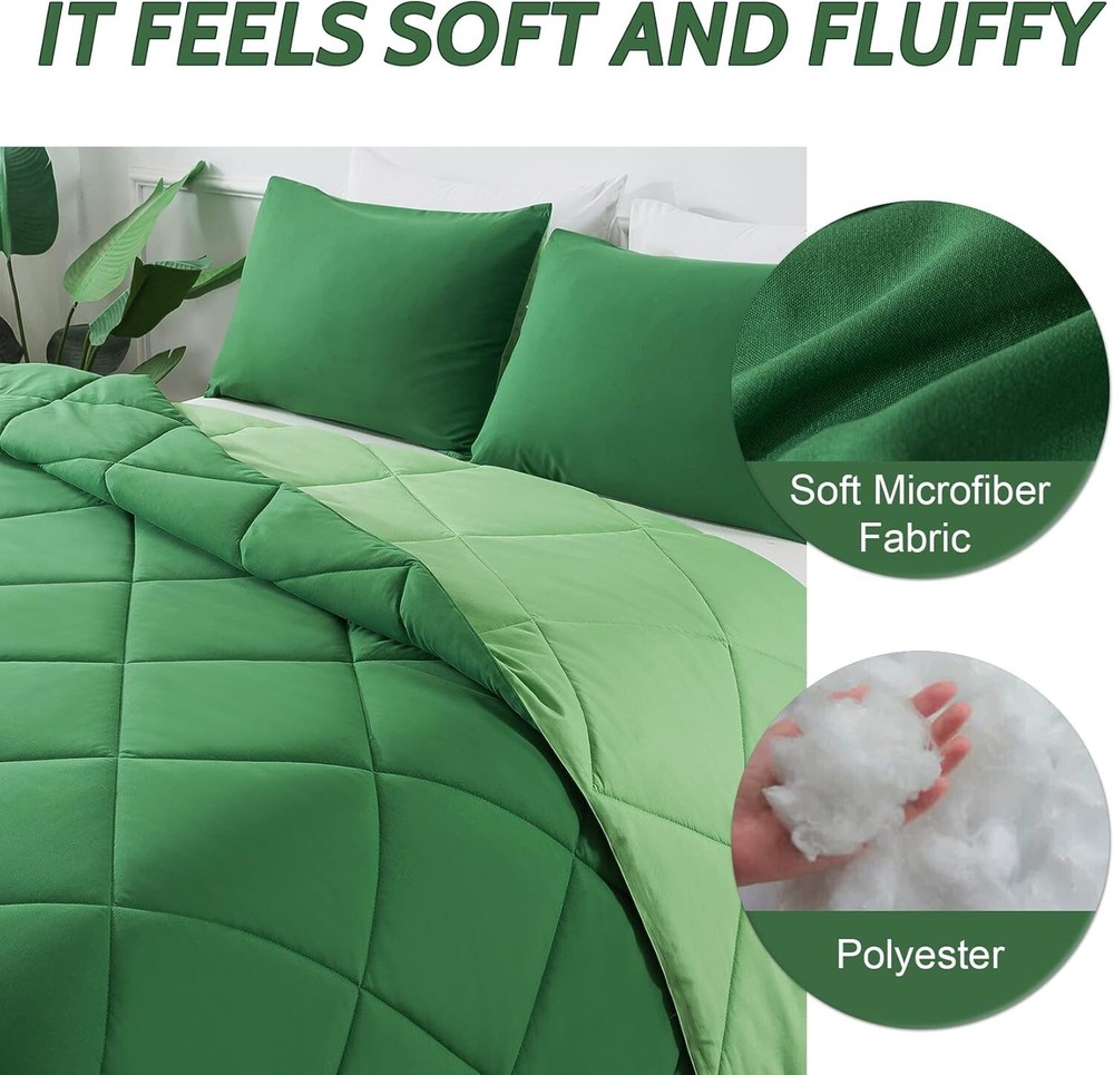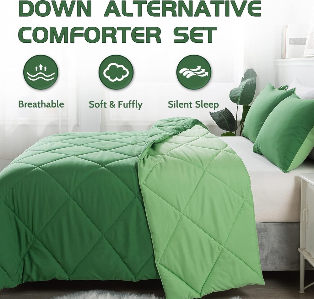 Cozy All-Season King Comforter Set with 2 Shams - Easy Care for Stylish Bedrooms < class="slides"> ‹ › ‹ › ‹ › ‹ › ‹ › ‹ › ‹ › ‹ › Cozy All-Season King Comforter Set - Includes 2 Matching Shams - Easy Care for Stylish Bedrooms Product Overview: <> King size comforter measures 102 x 90 inches, perfectly designed to fit your king size bed. Complimented with two matching pillow shams measuring 20 x 36 inches to complete the look. Quality & Comfort: <> Crafted from 100% polyester fabric, offering a luxurious look and feel. Overfilled with microfiber, ensuring softness, breathability, and year-round comfort. Designed to provide a noiseless sleep environment for uninterrupted rest. Design & Craftsmanship: <> Solid box stitch design secures the fill in place, enhancing durability and aesthetic appeal. Four corner tabs allow for easy attachment to any duvet cover for added versatility. Care Instructions: <> Machine washable on a gentle cycle with cold water. Sun-dry or tumble dry on low heat to maintain fluffiness. Recommended to expose to sunlight or tumble dry after unpacking to fully fluff up. Customer Assurance: <> Each set includes a cozy comforter and one or two matching pillowcases, tailored for your needs. Worry-free shopping with 24-hour customer service support for any inquiries or concerns. Why Choose Our Cozy Comforter Set? Transform your bedroom into a sanctuary of style and comfort with our Cozy All-Season King Comforter Set. Combining elegance with practicality, this luxurious set is made for those who appreciate quality and comfort. Indulge in peaceful nights and stylish days, knowing that every aspect of your bedding has been designed with your utmost satisfaction in mind. Experience the perfect balance of warmth and breathability – order your set today and awaken your senses to a world of restful sleep! Shipping <> <> Free & Fast Shipping - We offer free shipping to most of the USA with a normal delivery time of 3-7 days. However, due to the current situation, additional delivery time (up to 3 weeks) may be required for some items. Alternative Carriers - We may use alternative carriers (e.g. USPS, FedEx, UPS, etc.) to ensure your package arrives safely and on time. Due to the use of multiple carriers, we are unable to provide a tracking number automatically. Handling Time - Orders are processed and shipped within 1-2 business days of receiving cleared payment. Shipping Restrictions - Shipping to Alaska, Hawaii, Puerto Rico, Guam, and other US territories may incur shipping charges or delivery restrictions. Please contact us before ordering, or your order can be refunded/cancelled. State Restrictions - There may be restrictions based on your state of purchase. For example, certain items may not be shipped to California due to state regulations. Contact for Tracking Updates - If you require tracking updates or have any concerns about the delivery of your order, please feel free to contact us, and we will be happy to assist you. Return <> <> 30-Day Hassle-Free Returns - We want you to be completely satisfied with your purchase. If you are not, you can return the item within 30 days of receiving it for a full refund or exchange. Easy Return Process - To start a return, simply contact us and we will provide you with a prepaid return shipping label and detailed instructions. Restocking Fee - There are no restocking fees for returns. However, the buyer is responsible for return shipping costs if the return is not due to a seller's error. Refund Processing Time - Refunds will be processed within 5 business days of receiving the returned item in its condition. Payment We accept all major credit cards, PayPal, and Apple Pay for your convenience. Your payment information is secure and encrypted to ensure a safe and seamless transaction. Please complete your payment within 3 days of purchase to avoid any delays in shipping. Feedback Your feedback is extremely important to us. We strive to provide the best products and customer service possible. If you are satisfied with your purchase, please take a moment to leave us a positive review. If you have any concerns or issues with your order, please contact us before leaving negative feedback. We are committed to resolving any problems and ensuring your satisfaction. Contact Us If you have any questions or concerns, please feel free to out to our customer support team. You can contact us through the eBay messaging system. We are available Monday to Friday, 9:00 am to 5:00 pm EST, and we will do our best to respond to your inquiry within 24 hours. Buy it now and enjoy a pleasant shopping experience! Set Includes: Comforter,Pillow Sham Material: Polyester Features: Breathable,Down Alternative,Lightweight Theme: Seasonal Care Instructions: Machine Wash Department: Adults Room: Bedroom Size: King Type: Comforter Set Color: Olive Green/Grass Green Fill Material: Microfiber Pattern: Solid Number of Items in Set: 3 Style: Modern Insulation: All Seasons Season: All Closure Type: No Closure Thread Count: 200 or Less GSM (Grams per Square Meter): Below 150