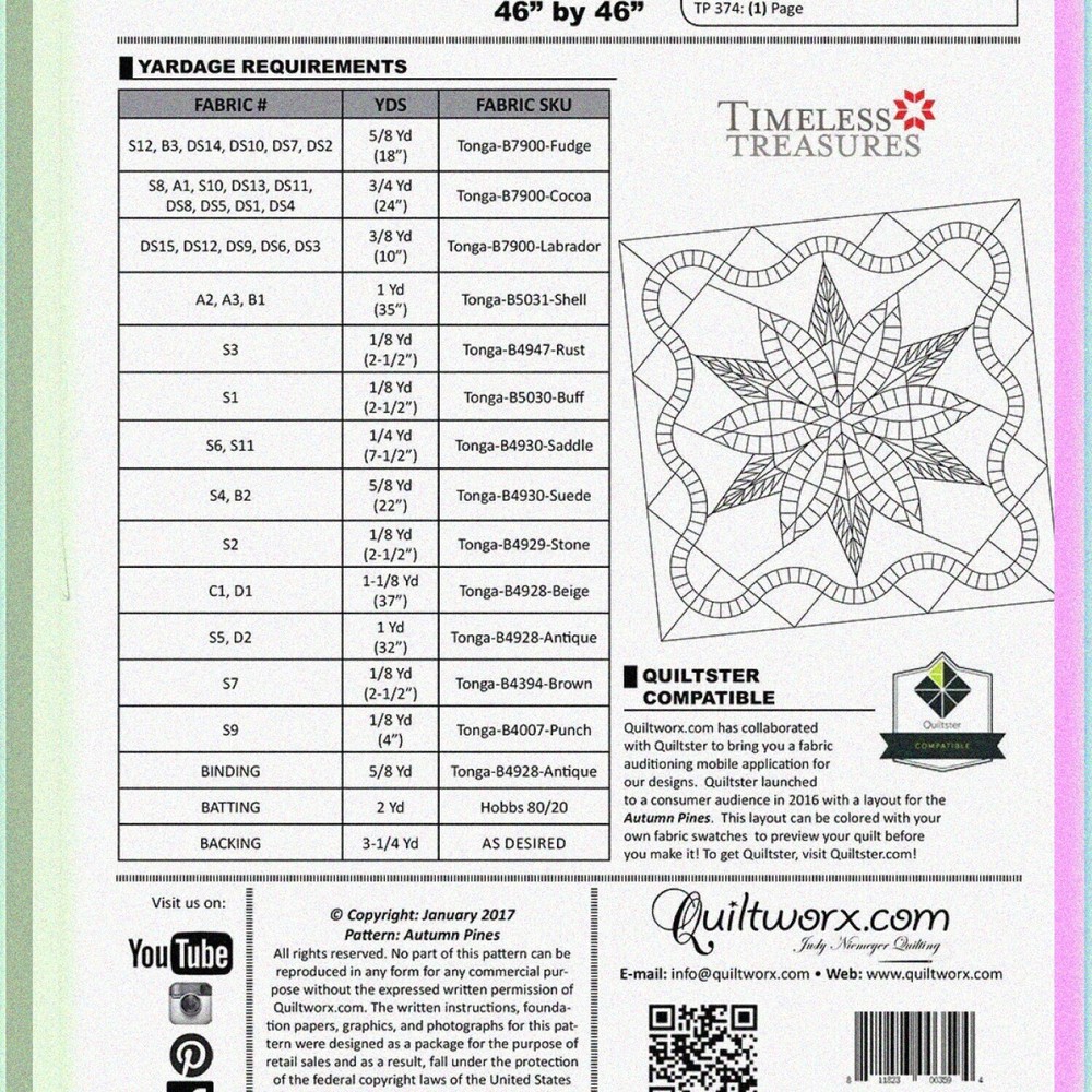 Wrap your little one in the cozy embrace of our Baby Size Quilt, measuring a perfect 46" x 46". Expertly crafted using advanced paper piecing techniques, this traditional Autumn Pines pattern, designed by the renowned Judy Niemeyer, brings a touch of seasonal magic to any nursery. Ideal for snuggles and naps, this quilt is a timeless treasure that combines artistry and comfort. Embrace the warmth of autumn with every cuddle! ==== FEATURES: ==== Introducing our Baby Size Quilt, a delightful blend of tradition and innovation, meticulously crafted to wrap your little one in warmth and love. Here are three standout features that make this quilt a must-have for every nursery: (A) **Perfectly Sized for Little Bundles of Joy**: Measuring 46 inches by 46 inches, this baby quilt is the ideal size for cribs, strollers, and tummy time. Its generous yet manageable dimensions ensure your baby is snug and secure, whether at home or on the go. The quilt's size also makes it a versatile piece that can grow with your child, transitioning from a cozy baby blanket to a cherished toddler comforter. (B) **Advanced Paper Piecing for Unmatched Precision**: Our quilt features advanced paper piecing techniques, a method renowned for its precision and intricate designs. This technique allows for the creation of stunning, detailed patterns that are both visually captivating and structurally sound. Each piece is meticulously stitched together, ensuring a flawless finish that stands the test of time. The result is a quilt that is not only beautiful but also a testament to the artistry and skill of its maker. (C) **Timeless Traditional Patterns with a Modern Twist**: Embrace the charm of classic quilting with our traditional patterns, thoughtfully updated for the contemporary nursery. These patterns evoke a sense of nostalgia while seamlessly blending with modern decor. The harmonious mix of heritage and innovation ensures that this quilt is a timeless piece, perfect for passing down through generations. The traditional designs are not just aesthetically pleasing but also imbued with cultural significance, making this quilt a meaningful addition to your baby's world. Wrap your baby in the comfort of tradition and the precision of modern craftsmanship with our Baby Size Quilt. It's more than just a blanket; it's a piece of art, a family heirloom, and a cozy companion for your little one's early years.