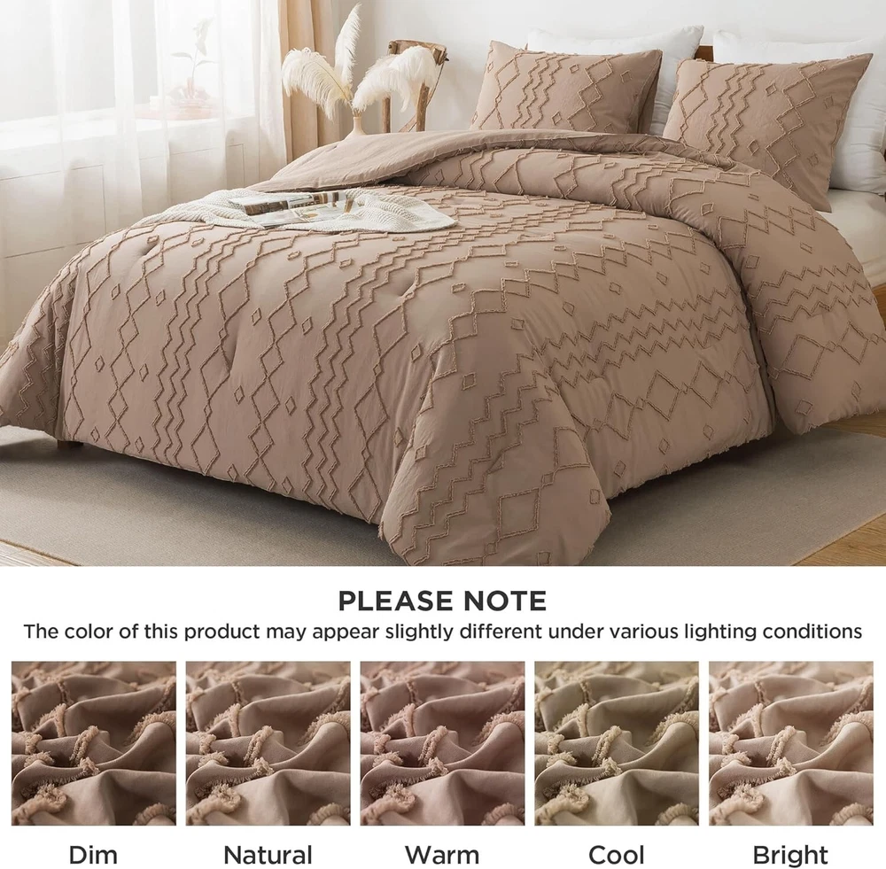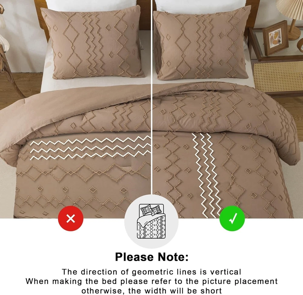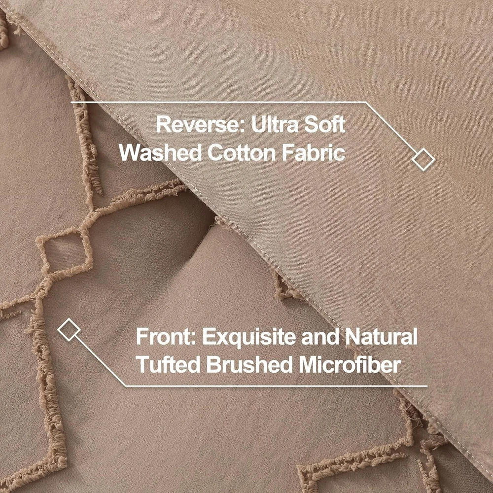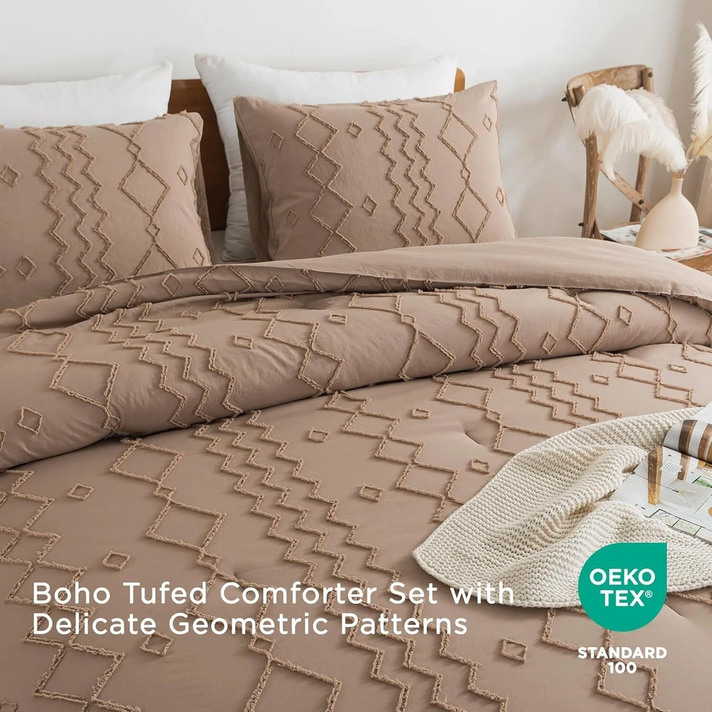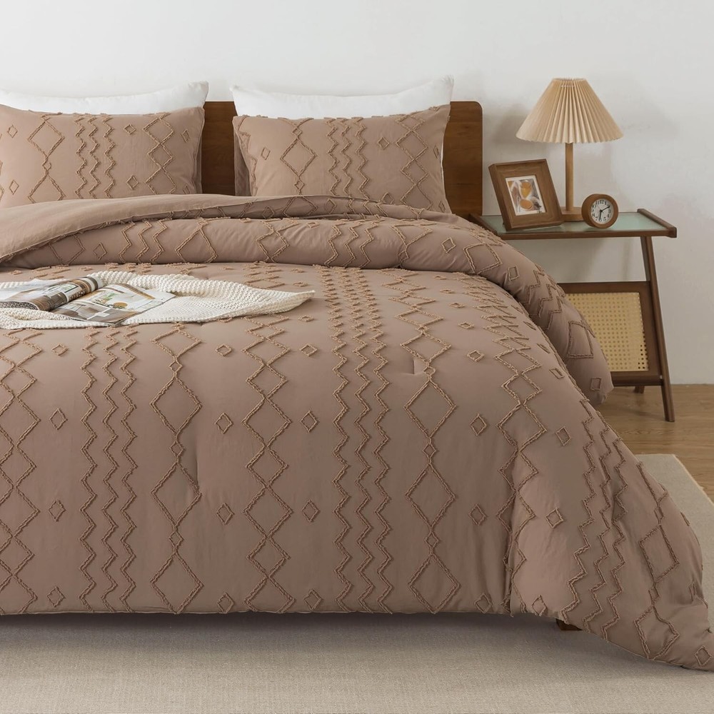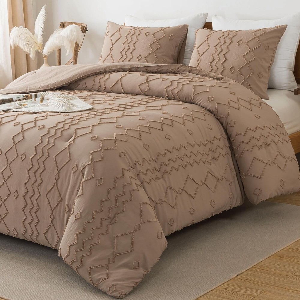This comforter set is a game-changer for my bedroom! The microfiber feels incredibly soft and cozy, while the geometric design adds a stylish boho touch. The tufted embroidery gives it a high-end look without being over the top. It drapes perfectly over my California king bed, and the quality is impressive—no shedding or fading after washes. So comfortable I never want to get out of bed! Definitely worth it for both style and comfort.