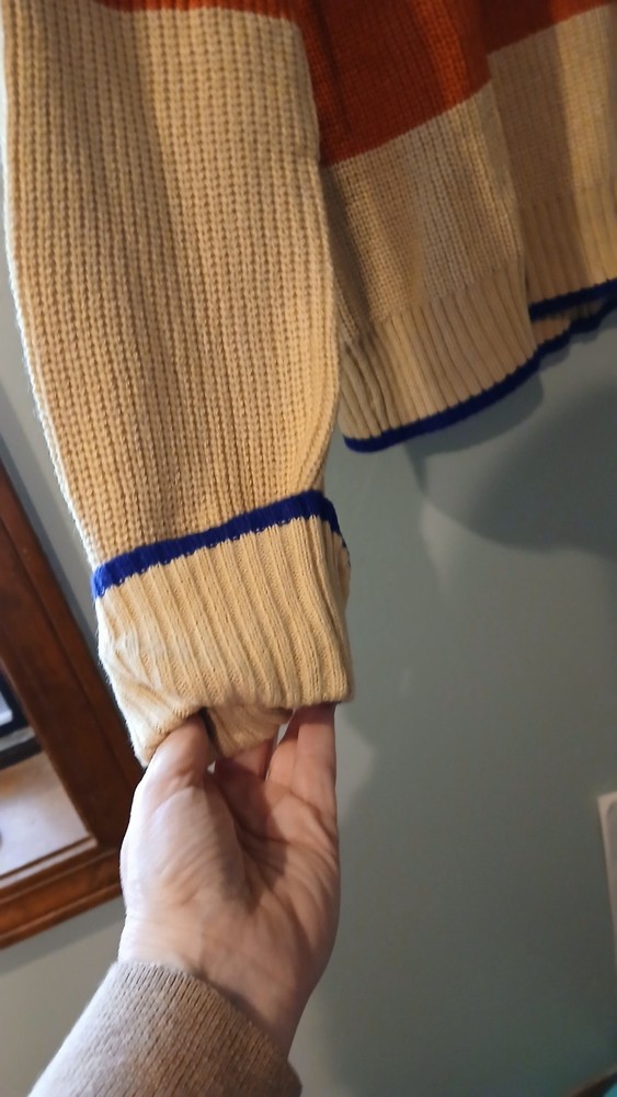This sweater is so comfy and cute! The colorblock design pops, and the fabric is soft yet warm—perfect for chilly days. Love the relaxed fit—it’s flattering and easy to style. The crochet details add a fun boho touch. Super happy with how it washes, no pilling at all. Feels like a hug in clothing form—must-have for any cozy outfit!