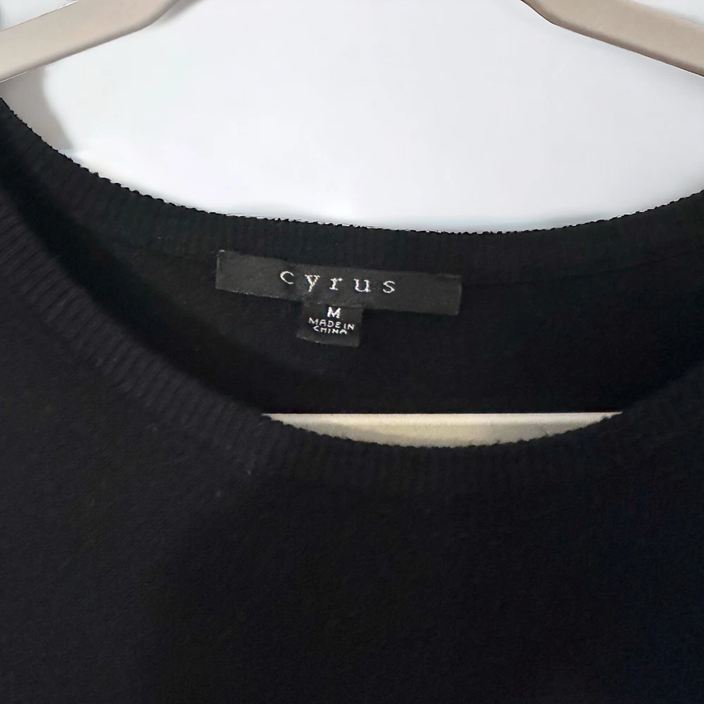 Cyrus Black Sweater - Size Medium Condition: Excellent, worn only twice! Details: - Brand: Cyrus - Size: Medium (Ladies) - Style: Long Sleeve - Material: 100% Polyester (soft and cozy!) Description: Elevate your wardrobe with this chic black sweater from Cyrus! Perfect for layering or wearing on its own, this long-sleeve piece combines comfort and style. It’s in excellent condition, having only been worn a couple of times. Why You’ll Love It: - Versatile black color goes with anything! - Ideal for both casual and dressier occasions. - Soft and comfy fabric for all-day wear. Don’t miss out on adding this stylish sweater to your collection! Feel free to ask any questions.