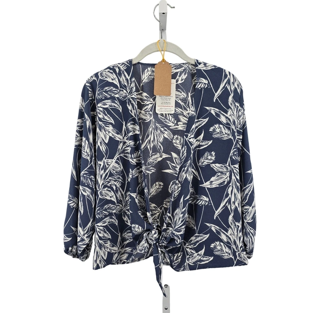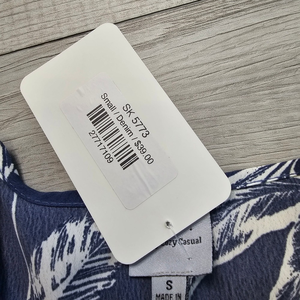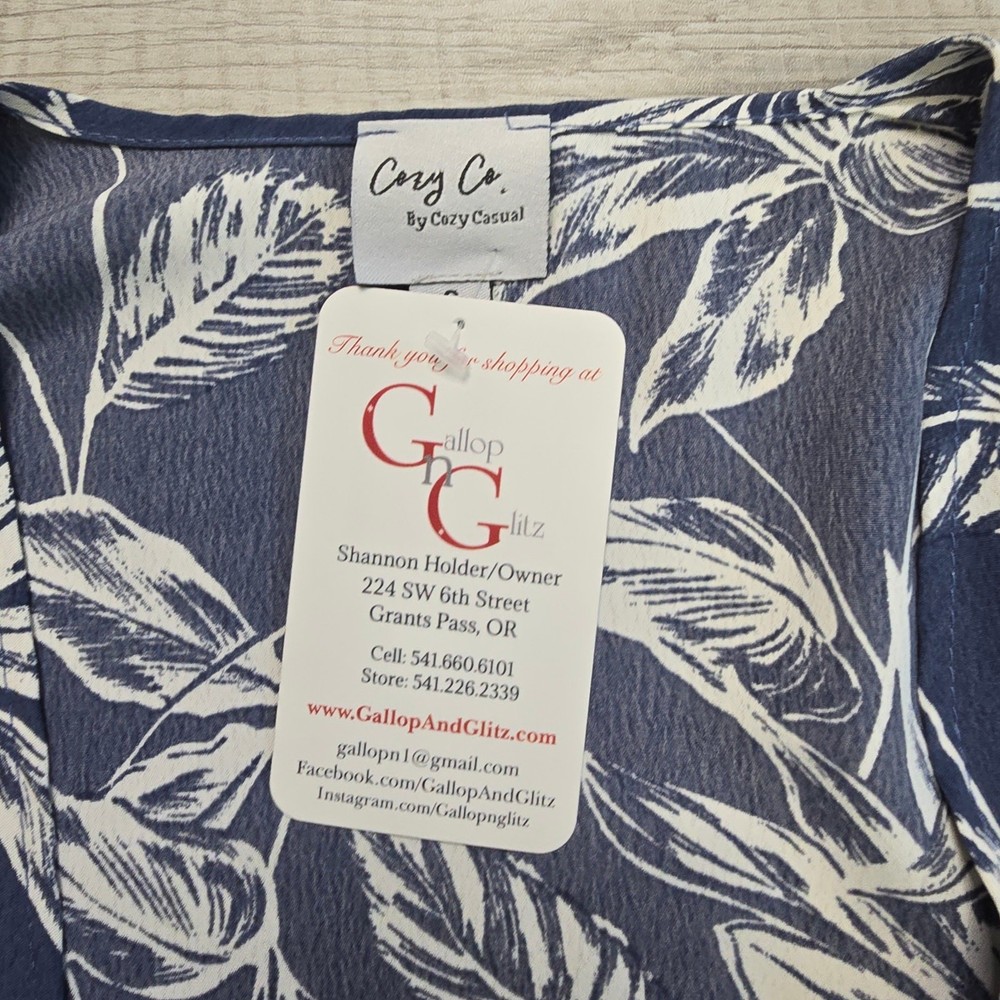 <![CDATA[<div>This Cozy Co blue and white over shirt for women, size small, features a kimono-style cardigan with a charming leaf print and a tie front for a customizable fit. Made from 100% polyester, it offers comfort and durability while adding a stylish touch to any outfit. New with tags. 100% Polyester Hand wash Made in USA Approximate Measurements were taken flat with the garment unstretched. Pit to pit 18'' Sleeve 15'' Shoulder to hem 22'' 🚢 Ready to ship 📦 Bundle Discounts on Multiple Items 🚚 Fast Delivery 🌿 Sustainable Business ⭐ 5 Start Seller Cozy Co Blue White Over Shirt, Comfortable, Stylish, Casual, Trendy, Versatile, Lightweight, Relaxed Fit, High-quality, Fashionable, Easy-to-wear, Contemporary, Chic, Modern, Soft, Practical, Layering, Comfortable, Classic, Effortless