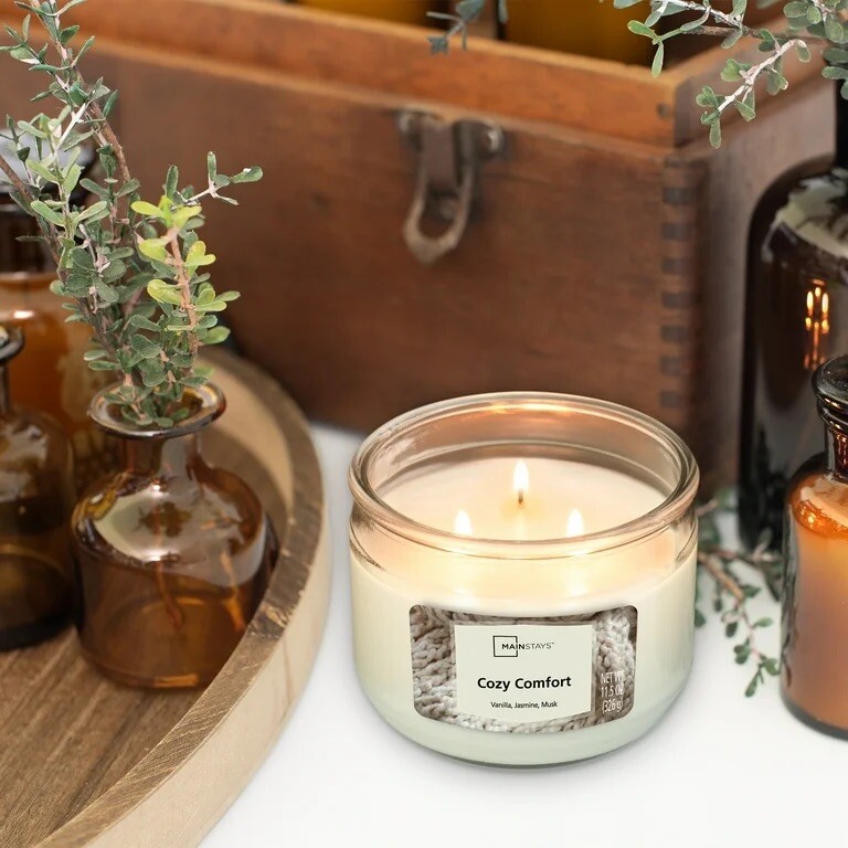 **Cozy Comfort Scented Candles** **Experience Serenity with Cozy Comfort Candles** Create a warm, inviting ambiance with Cozy Comfort scented candles. Designed to envelop your space in soothing aromas, these candles combine vanilla, jasmine, and musk for a serene and comforting experience. **Key Features** - **Rich Vanilla Aroma**: The heart of the candle features the sweet, creamy scent of vanilla, reminiscent of homemade desserts and cherished memories. - **Elegant Jasmine**: Complementing vanilla, the delicate floral notes of jasmine evoke tranquility and natural beauty, reminiscent of a blooming garden. - **Warm Musk**: Anchoring the fragrance, musk adds depth and sophistication, offering a grounding contrast to the sweetness and floral notes. **Usage Tips** - **Trim the Wick**: Always trim to ¼ inch before lighting to ensure a clean burn and avoid soot. - **Burn Time**: Limit burning to 3 hours per session. Allow wax to harden before relighting. - **Safety**: Place the candle on a heat-resistant surface, keep away from drafts, and burn within sight. Extinguish before leaving the room and keep away from children and pets. - **Maintenance**: Do not extinguish with water. The vessel is recyclable, making it eco-friendly. **Versatile and Thoughtful** Perfect for any room, Cozy Comfort candles make a great gift or a luxurious addition to your own home. Enjoy a calming, cozy retreat with the gentle glow and serene scent of vanilla, jasmine, and musk.