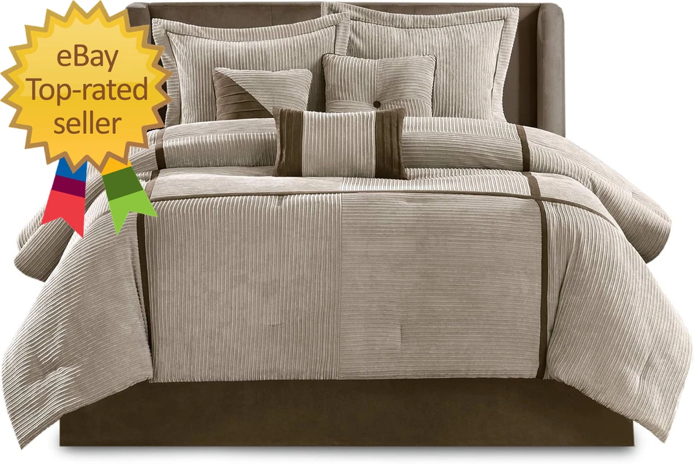 Store New Arrivals Add to Favorite View Feedback Contact Cozy Comforter Set Casual Blocks Design All Season Matching Bed Skirt Decorative Description 100% Polyester Imported For a casual look with added comfort, the Dallas comforter set is perfect for you. Micro corduroy, the taupe comforter is pieced together in sections & separated by chocolate brown taping This set will keep your warm in the winter but is lightweight enough to keep you cozy during the warm months as well. Set includes: 1 Comforter:104x92", 3 Pillows:16x16"/12x18"/18x18", 2 Shams:20x36", 1 Bedskirt:78x80+15" Care instructions: Machine wash cold and separately. Tumble dry low. For a casual look with added comfort, the Dallas comforter set is perfect for you. Made from polyester micro Corduroy, the Taupe comforter is pieced together in sections which are separated by chocolate brown taping and has a brushed fabric reverse. Item model number MP10-314 Global Trade Identification Number 00675716407551 Assembly required No Color Dallas Taupe/Brown Pattern Geometric Fabric Type 100% Polyester Material Polyester Country of Origin China Item Weight 14.89 pounds Batteries required No Size King Seasons All Department unisex-adult Import Imported Number of Pieces 7 Is Discontinued By Manufacturer No Product Dimensions 104 x 92 x 2 inches Product Care Instructions Machine Wash Included Components Comforter, Bed Skirt, Pillow ABOUT US "Prior to making any purchase from our store, it is crucial for you to acquaint yourself with who we are. My name is Muhammad Alam, I live in a very large state in the USA, "CALIFORNIA", and I am the proprietor of this store My Smartek . I have been affiliated with eBay since Dec 28, 2023. At our store, we pride ourselves on providing the most competitive prices for top-notch products. Our extensive E-store encompasses a diverse range of items, including media such as books, movies, music, and games. Additionally, we offer an array of electronic gadgets, toys, sporting apparel, clothing, tools, general home and garden items, and much more. Should you require any further information or assistance, please feel free to contact me. We are dedicated to ensuring your satisfaction and look forward to serving you with the best quality products and customer service." SHIPPING We are always working hard to ensure your package arrives as soon as possible. Please understand that some factors like weather, high postal traffic, and the performance of shipping companies are outside of our control. We offer free shipping to the lower 48 states and ship within 2 business days of payment, usually sooner. We do not accept P.O. Boxes. Please provide a physical address. For shipping outside of the continental USA, we only use eBay's Global Shipping Program. The item is shipped to KY and then sent to the rest of the world. International customers are responsible for all duties and taxes. Continue to 'check out' to calculate costs for shipping the item to your country. Messages regarding eBay's Global Shipping Program MUST be directed at eBay EXCLUSIVELY. RETURNS We do not return items, but we will only consider a return if the item is received broken or if the wrong size is sent to you. Otherwise, we will not accept returns. FEEDBACK OF OUT ITEM "After purchasing our item, once you have received it and are satisfied, we kindly request you to leave positive feedback. This will help others, like your friends, to learn about the item's quality and your experience. Thank you for choosing to buy this item from our store!"