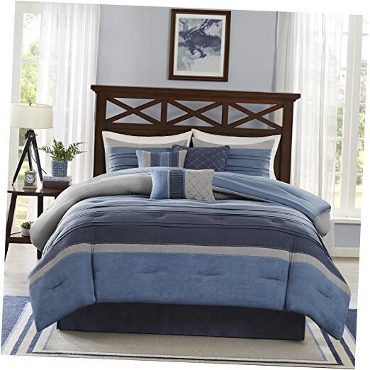 Return Policy Fast Delivery Trusted seller Cozy Comforter Set Casual Modern Design - All Season Bedding, Matching Bed Skirt, Decorative Pillows, Collins, Suede Blue Grey King(104"x92") 7 Piece Product Description 100% Polyester Create a warm update to your space with the Collins Collection. This pieced suede comforter features shades of navy, medium blue and grey along with pleating for the perfect balance in this collection. Three decorative pillows use quilting and piecing for the perfect finishing touches to this set. Set includes King comforter (104x92), 2 King shams (20x36), bedskirt 78x80 with 15-inch drop, and three decorative pillows 18x18, 16x16, 12x18 SIMPLICITY & CONTEMPORARY - soothing and calming colors in pleating treatment. Unisex bedding for everyone BEAUTIFUL accessories - fabric manipulation of pleating and stitching to create 2 square decorative pillows and 1 oblong pillow for top of the bed HYPOALLERGENIC - polyester filling in comforter and decorative pillows Machine washable for easy care Shipping Returns Payment Shipping Shipping is FREE to all addresses other than APO/PO boxes in the lower 48 states. All our stock ships from US-based warehouses. Shipped via USPS or UPS (depending on location and package weight) Unless stated otherwise, all orders will ship within 24-72 hours of your payment being processed. Check our feedback to see the great reviews of FAST shipping we offer. Returns Seller does not accept returns Payment We currently accept payment via eBay managed payments only. Once payment is cleared, we will dispatch your shipment within 1-3 business days. Please refer to the "Shipping" tab for more information regarding shipping speed to your destination.