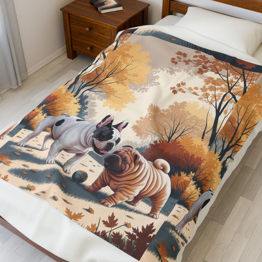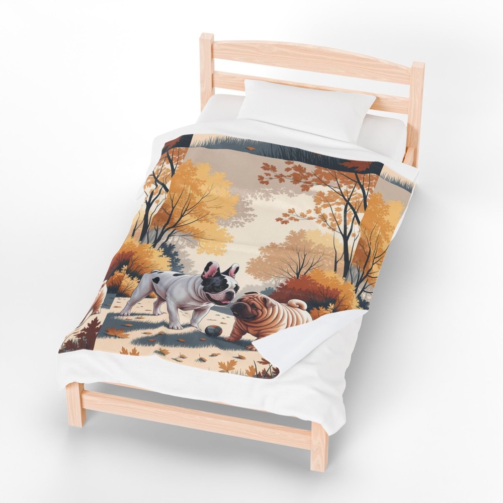Wrap yourself in comfort and style with this velveteen plush blanket. Perfect for cozy nights in, movie marathons, or snuggling up with your favorite book, this blanket adds warmth to your home and creates a soothing atmosphere. Its eye-catching design featuring playful pups surrounded by autumn leaves makes it a delightful addition to any space, ideal for dog lovers and anyone who enjoys a touch of whimsical charm. This blanket is not just a seasonal accessory; it’s perfect for all occasions, including home warming gifts, birthdays, or winter holidays. Make your living spaces inviting or give it as a thoughtful gift for your friends and family, especially during gatherings and celebrations. Product features - Double needle topstitch on all seams for durability - Made from 100% polyester for quick drying and shape retention - Designed for adults, combining style with practicality - High detail, vibrant colors on one side - Extra soft to the touch, perfect for snuggling Care instructions - Do not dryclean - Do not iron - Tumble dry: low heat - Do not bleach - Machine wash: cold (max 30C or 90F), *hand wash will extend the quality of the product EU representative : HONSON VENTURES LIMITED, 3, Gnaftis House flat 102, Limassol, Mesa Geitonia, 4003, CY Product information : Generic brand, 2 year warranty in EU and Northern Ireland as per Directive 1999/44/EC Warnings, Hazard : For adults, Blank product sourced from China Care instructions : Do not dryclean, Do not iron, Tumble dry: low heat, Do not bleach, Machine wash: cold (max 30C or 90F), *hand wash will extend the quality of the product