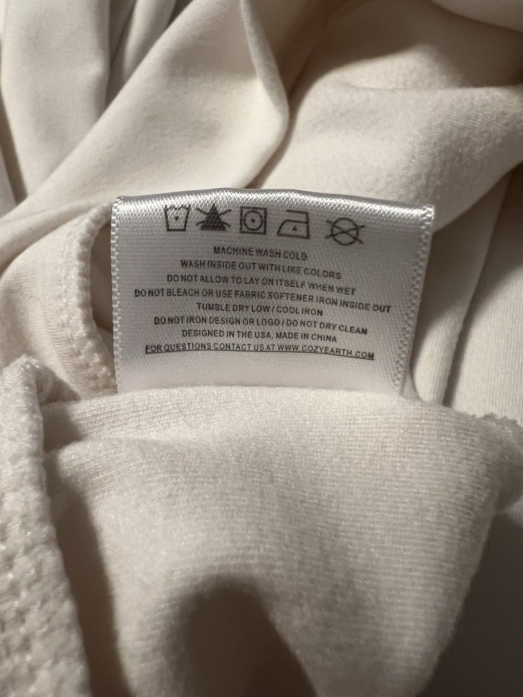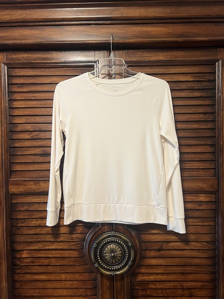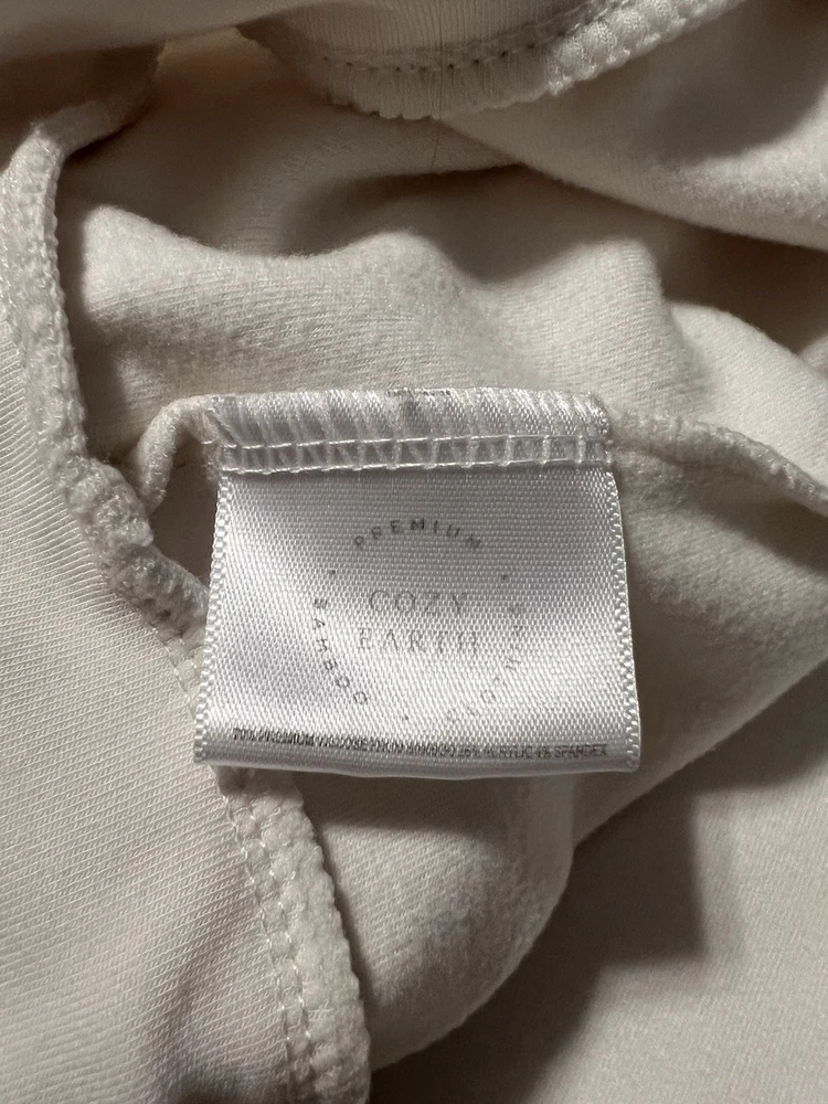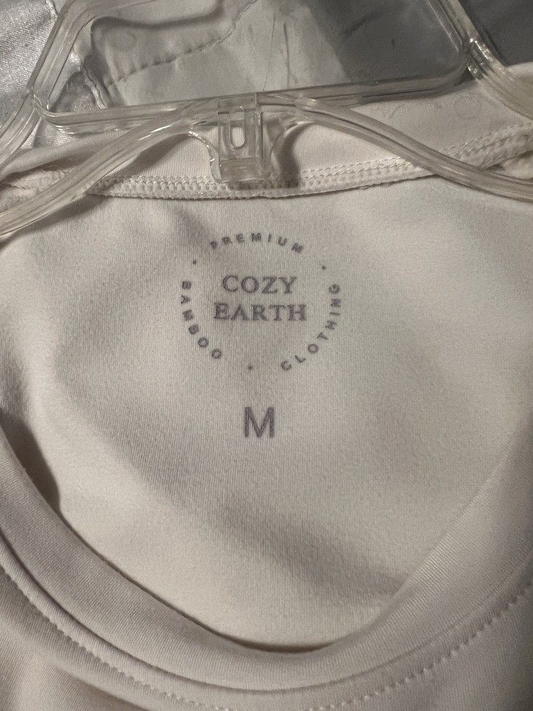 The Cozy Earth Women's Ultra-Soft Bamboo Pullover Crew in size medium is a luxurious and comfortable top perfect for women who appreciate designer clothing. Made from eco-friendly bamboo material, this cream-colored top features a bohemian style with long sleeves and a soft texture that feels like heaven against the skin. The pullover design adds a touch of ease and convenience to the overall look, making it a versatile piece that can be dressed up or down for any occasion.