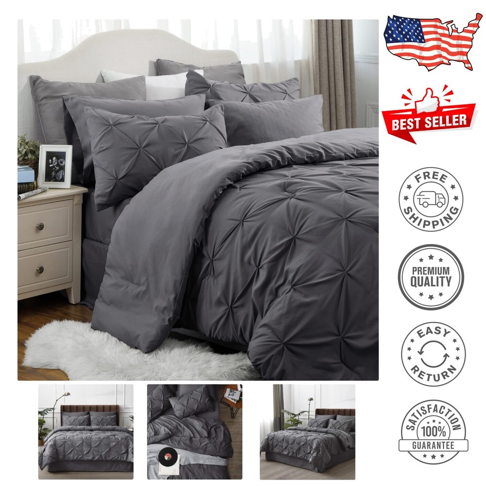Cozy Full Size Bedding Set - 7 Pieces with Pinch Pleat Design in Dark Grey ‹ › ‹ › ‹ › ‹ › ‹ › ‹ › ‹ › ‹ › ‹ › ‹ › ‹ › Cozy Full Size Bedding Set - 7 Pieces Elegant Home Decor: Elevate your bedroom with this luxurious full bedding set, featuring an exquisite pinch pleat design in a sophisticated dark grey shade. It effortlessly adds a touch of elegance to your space, making it the ideal choice for Christmas gifts for her or any special occasion. Cloud-like Warmth: Indulge in the comforting embrace of our microfiber filling blend. This comforter is designed to balance weight and warmth, providing a cloud-like feel that is perfect for those chilly nights, ensuring it becomes a beloved gift for her at Christmas. Extra Soft: Experience unparalleled softness with the brushed microfiber cover that offers a gentle touch as you snuggle in bed. Its noise-free fabric makes it an ideal option for a serene and peaceful night's sleep, all while serving as a delightful present for any woman in your life. Easy Care: Designed for convenience, the premium microfiber fabric resists fading, shrinking, and seam slippage, ensuring your bedding looks beautiful for years to come. Simply machine wash separately in cold water on a gentle cycle and tumble dry low for effortless maintenance. Inclusive Bedding Set: This comprehensive 7-piece bedding set includes everything needed to create a cozy haven: 1 Comforter (82" x 86"), 2 Pillowcases (20" x 30"), 2 Pillow Shams (20" x 26" + 2"), 1 Fitted Sheet (54" x 75" + 14"), 1 Flat Sheet (81" x 96"). If you're searching for thoughtful Christmas gift ideas, this bedding set is the ultimate choice for creating a cozy and elegant bedroom environment. Treat yourself or your loved ones to the warm embrace of luxury – order your Cozy Full Size Bedding Set today! Shipping Free & Fast Shipping - We offer free shipping to most of the USA with a normal delivery time of 3-7 days. However, due to the current situation, additional delivery time (up to 3 weeks) may be required for some items. Alternative Carriers - We may use alternative carriers (e.g. USPS, FedEx, UPS, etc.) to ensure your package arrives safely and on time. Due to the use of multiple carriers, we are unable to provide a tracking number automatically. Handling Time - Orders are processed and shipped within 1-2 business days of receiving cleared payment. Shipping Restrictions - Shipping to Alaska, Hawaii, Puerto Rico, Guam, and other US territories may incur shipping charges or delivery restrictions. Please contact us before ordering, or your order can be refunded/cancelled. State Restrictions - There may be restrictions based on your state of purchase. For example, certain items may not be shipped to California due to state regulations. Contact for Tracking Updates - If you require tracking updates or have any concerns about the delivery of your order, please feel free to contact us, and we will be happy to assist you. Return 30-Day Hassle-Free Returns - We want you to be completely satisfied with your purchase. If you are not, you can return the item within 30 days of receiving it for a full refund or exchange. Easy Return Process - To start a return, simply contact us and we will provide you with a prepaid return shipping label and detailed instructions. Restocking Fee - There are no restocking fees for returns. However, the buyer is responsible for return shipping costs if the return is not due to a seller's error. Refund Processing Time - Refunds will be processed within 5 business days of receiving the returned item in its original condition. Payment We accept all major credit cards, PayPal, and Apple Pay for your convenience. Your payment information is secure and encrypted to ensure a safe and seamless transaction. Please complete your payment within 3 days of purchase to avoid any delays in shipping. Feedback Your feedback is extremely important to us. We strive to provide the best products and customer service possible. If you are satisfied with your purchase, please take a moment to leave us a positive review. If you have any concerns or issues with your order, please contact us before leaving negative feedback. We are committed to resolving any problems and ensuring your satisfaction. Contact Us If you have any questions or concerns, please feel free to reach out to our customer support team. You can contact us through the eBay messaging system. We are available Monday to Friday, 9:00 am to 5:00 pm EST, and we will do our best to respond to your inquiry within 24 hours. Buy it now and enjoy a pleasant shopping experience! UPC: Not Set Model: Not Set Set Includes: Comforter,Fitted Sheet,Flat Sheet,Pillowcase,Pillow Sham,Comforter Set Material: Polyester,100% polyester Character: Darkness Features: Hypoallergenic,Easy Care,Extra Soft Theme: Modern Care Instructions: Do Not Bleach,Machine Wash Department: Kids,Adults Room: Bedroom Labels & Certifications: Not Set Brand: Unbranded Size: Full Type: Comforter Set Color: Gray Fill Material: Microfiber Pattern: Geometric Insulation: All Seasons Item Width: Not Set Item Length: Not Set MPN: Not Set Character Family: Not Set Number of Items in Set: 7 Style: Modern Season: All Country/Region of Manufacture: Not Set Closure Type: No Closure Thread Count: 200 or Less Drop Length: Not Set GSM (Grams per Square Meter): Below 150 Product Line: Not Set Personalize: Not Set
