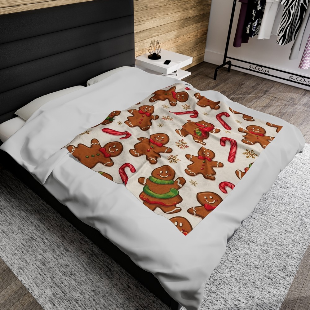 Wrap yourself in warmth and cheer with this delightful Velveteen Plush Blanket. Perfect for cozy nights in, it features an adorable gingerbread print that brings a festive vibe to any space. Whether you’re snuggling on the couch or adding a playful touch to your bedroom, this blanket creates a warm and inviting atmosphere. It’s ideal for families, friends, or anyone looking to celebrate winter holidays like Christmas and New Year. Use it for movie nights, holiday gatherings, or as a thoughtful gift during the festive season! Product features - Durable double needle topstitching for lasting quality. - Made from high-quality polyester fabric that dries quickly. - Available in 100% polyester or a blend for added stretch. - Vibrant print on one side, showcasing beautiful detail. - Soft, medium heavy-weight fabric that enhances comfort. Care instructions - Do not dryclean - Do not iron - Tumble dry: low heat - Do not bleach - Machine wash: cold (max 30C or 90F), *hand wash will extend the quality of the product