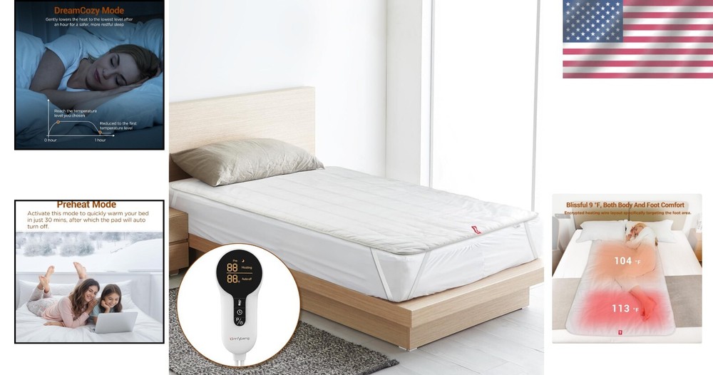 Cozy Heated Mattress Pad Twin Size with Body-Foot Temp Design & 12 Heat Settings < class="slides"> ‹ › ‹ › ‹ › ‹ › ‹ › ‹ › ‹ › ‹ › ‹ › ‹ › Cozy Heated Mattress Pad - Twin Size Experience blissful comfort with our innovative heated mattress pad meticulously designed to provide the perfect sleep environment. Features: Body-Foot Temperature Design: Unique zoning increases foot area temperature by approximately 9°F for optimal comfort. DreamCozy Mode: Gradually warms up your bed, lowering heat after one hour to prevent overheating for a restful night. 12 Adjustable Heat Settings: Personalize your comfort level with quick and stable heating for those chilly winter nights. Convenient Preheat Mode: Warm your bed in just 30 minutes, enhancing your evening routine. Generous Size: Measures 39 inches x 75 inches; versatile enough for twin, single, full, queen, or king-sized beds. Easy to Clean: Made from water-resistant fabric and machine washable for effortless maintenance. Automatic Shut-off: Safety features include a countdown timer from 1 to 12 hours for worry-free use. Benefits: Enhances your sleeping experience with tailored warmth for feet and upper body. Promotes better sleep by maintaining comfortable temperatures throughout the night. Convenient and user-friendly features simplify bedtime preparations. Provides warmth and comfort, making it the ideal gift for loved ones during the colder . Supports a clean, fresh, and cozy sleeping environment with easy maintenance. Why choose our Cozy Heated Mattress Pad? Indulge in the ultimate sleep experience with our Cozy Heated Mattress Pad. Whether you're battling chilly winter nights or combating discomfort from cold feet, this mattress pad is the perfect solution. Its innovative body-foot temperature design, multiple heat settings, and user-friendly features are tailored to cater to your unique sleep needs. Don't wait until winter arrives. Treat yourself or surprise someone you love with the warmth and comfort of our Cozy Heated Mattress Pad. Order yours today and enjoy the embrace of cozy warmth all night long! Shipping Free & Fast Shipping - We offer free shipping to most of the USA with a normal delivery time of 3-7 days. However, due to the current situation, additional delivery time (up to 3 weeks) may be required for some items. Alternative Carriers - We may use alternative carriers (e.g. USPS, FedEx, UPS, etc.) to ensure your package arrives safely and on time. Due to the use of multiple carriers, we are unable to provide a tracking number automatically. Handling Time - Orders are processed and shipped within 1-2 business days of receiving cleared payment. Shipping Restrictions - Shipping to Alaska, Hawaii, Puerto Rico, Guam, and other US territories may incur shipping charges or delivery restrictions. Please contact us before ordering, or your order can be refunded/cancelled. State Restrictions - There may be restrictions based on your state of purchase. For example, certain items may not be shipped to California due to state regulations. Contact for Tracking Updates - If you require tracking updates or have any concerns about the delivery of your order, please feel free to contact us, and we will be happy to assist you. Return 30-Day Hassle-Free Returns - We want you to be completely satisfied with your purchase. If you are not, you can return the item within 30 days of receiving it for a full refund or exchange. Easy Return Process - To start a return, simply contact us and we will provide you with a prepaid return shipping label and detailed instructions. Restocking Fee - There are no restocking fees for returns. However, the buyer is responsible for return shipping costs if the return is not due to a seller's error. Refund Processing Time - Refunds will be processed within 5 business days of receiving the returned item in its condition. Payment We accept all major credit cards, PayPal, and Apple Pay for your convenience. Your payment information is secure and encrypted to ensure a safe and seamless transaction. Please complete your payment within 3 days of purchase to avoid any delays in shipping. Feedback Your feedback is extremely important to us. We strive to provide the best products and customer service possible. If you are satisfied with your purchase, please take a moment to leave us a positive review. If you have any concerns or issues with your order, please contact us before leaving negative feedback. We are committed to resolving any problems and ensuring your satisfaction. Contact Us If you have any questions or concerns, please feel free to out to our customer support team. You can contact us through the eBay messaging system. We are available Monday to Friday, 9:00 am to 5:00 pm EST, and we will do our best to respond to your inquiry within 24 hours. Buy it now and enjoy a pleasant shopping experience! Item Length: Heated Mattress Pad Item Width: Heated Mattress Pad Unit Quantity: 2.97 Material: Polyester Features: Waterproof,Adjustable,Washable Care Instructions: Machine Wash Department: Unisex Baby & Toddler,Kids,Teens,Adults Room: Bedroom Size: Twin Type: Mattress Pad Fill Material: Synthetic Color: White Closure Type: Tie Insulation: Warm Shape: Rectangular Style: Modern GSM (Grams per Square Meter): Below 150 Thread Count: 200 or Less