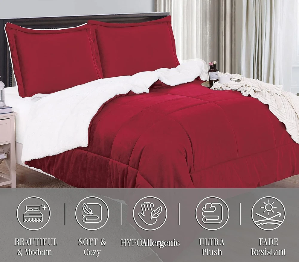 Cozy Heavyweight Down Alternative Comforter Set - Full Size, Flaming Burgundy ‹ › ‹ › ‹ › ‹ › ‹ › ‹ › ‹ › ‹ › ‹ › ‹ › ‹ › Cozy Heavyweight Down Alternative Comforter Set - Full Size, Flaming Burgundy - 100% Microsuede with Sherpa Backing Size & Contents Includes one comforter: 86” x 86” Two pillow shams: 20” x 26” Features: Luxurious square-stitched design prevents filling from shifting. Stain, shrink, and wrinkle resistant fabric for effortless maintenance. Environmentally friendly materials enhance sustainability. Ultra-soft, plush filling guarantees warmth all year round. Double needle stitching ensures longevity and an even layer of warmth. Reversible design: solid microsuede or fluffy sherpa for versatile styling. Care Instructions: Machine wash cold with like colors on a delicate cycle. Tumble dry low to maintain its plushness. Perfect Gift Idea Delight your loved ones with a gift that combines comfort and style! Our beautiful comforter set is perfect for any occasion, whether it’s a birthday, holiday, or housewarming. It offers a soft, cozy retreat that's both affordable and luxurious. Transform Your Sleep Space Elevate your bedroom décor with the Solid Sherpa Comforter Set in Flaming Burgundy. Available in multiple colors to perfectly coordinate with your personal style, this ultra-soft comforter promises to blanket you in warmth and coziness. Embrace the tranquility of a beautiful night's sleep, wrapped in luxury! Shipping Free & Fast Shipping - We offer free shipping to most of the USA with a normal delivery time of 3-7 days. However, due to the current situation, additional delivery time (up to 3 weeks) may be required for some items. Alternative Carriers - We may use alternative carriers (e.g. USPS, FedEx, UPS, etc.) to ensure your package arrives safely and on time. Due to the use of multiple carriers, we are unable to provide a tracking number automatically. Handling Time - Orders are processed and shipped within 1-2 business days of receiving cleared payment. Shipping Restrictions - Shipping to Alaska, Hawaii, Puerto Rico, Guam, and other US territories may incur shipping charges or delivery restrictions. Please contact us before ordering, or your order can be refunded/cancelled. State Restrictions - There may be restrictions based on your state of purchase. For example, certain items may not be shipped to California due to state regulations. Contact for Tracking Updates - If you require tracking updates or have any concerns about the delivery of your order, please feel free to contact us, and we will be happy to assist you. Return 30-Day Hassle-Free Returns - We want you to be completely satisfied with your purchase. If you are not, you can return the item within 30 days of receiving it for a full refund or exchange. Easy Return Process - To start a return, simply contact us and we will provide you with a prepaid return shipping label and detailed instructions. Restocking Fee - There are no restocking fees for returns. However, the buyer is responsible for return shipping costs if the return is not due to a seller's error. Refund Processing Time - Refunds will be processed within 5 business days of receiving the returned item in its original condition. Payment We accept all major credit cards, PayPal, and Apple Pay for your convenience. Your payment information is secure and encrypted to ensure a safe and seamless transaction. Please complete your payment within 3 days of purchase to avoid any delays in shipping. Feedback Your feedback is extremely important to us. We strive to provide the best products and customer service possible. If you are satisfied with your purchase, please take a moment to leave us a positive review. If you have any concerns or issues with your order, please contact us before leaving negative feedback. We are committed to resolving any problems and ensuring your satisfaction. Contact Us If you have any questions or concerns, please feel free to reach out to our customer support team. You can contact us through the eBay messaging system. We are available Monday to Friday, 9:00 am to 5:00 pm EST, and we will do our best to respond to your inquiry within 24 hours. Buy it now and enjoy a pleasant shopping experience! UPC: Not Set Model: Not Set Set Includes: Comforter,Pillow Sham,pillow shams Material: Microfiber,100% Microsuede,Sherpa Backing Character: Not Set Features: Breathable,Hypoallergenic,Reversible,Stain Resistant,Shrinking Resistant,Wrinkle Resistant,Heavy Weight Theme: Not Set Care Instructions: Machine Wash Cold,Tumble Dry Low Department: Unisex Baby & Toddler,Kids,Teens,Adults Room: Bedroom,Dorm Labels & Certifications: Not Set Size: Full Type: Comforter Set Brand: Unbranded Color: Flaming Burgundy Fill Material: Synthetic Pattern: Solid Item Width: Not Set Item Length: Not Set MPN: Not Set Character Family: Not Set Insulation: All Seasons Number of Items in Set: 3 Season: All Style: Modern Country/Region of Manufacture: Not Set Closure Type: No Closure Drop Length: Not Set Thread Count: 1500 GSM (Grams per Square Meter): Not Specified Product Line: Not Set Personalize: Not Set