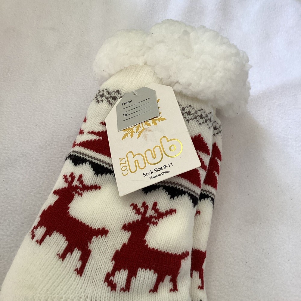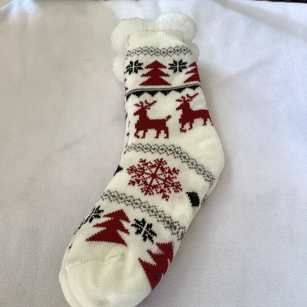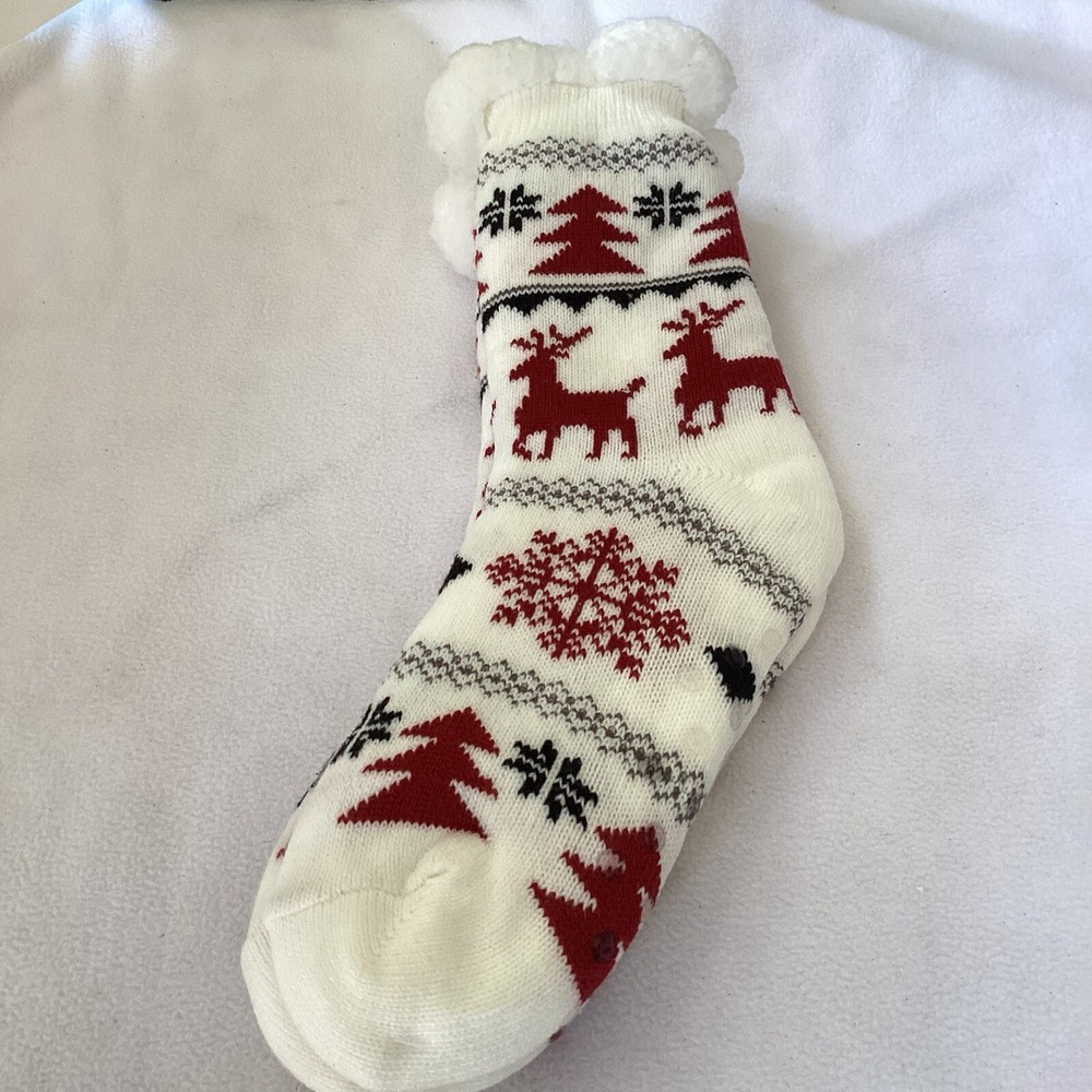 Stay cozy and festive this winter season with these Christmas-themed anti-skid socks from Cozy Hub. Made with acrylic material and machine washable, these socks feature a full toe design and mid-calf length. The white non-skid Sherpa lining will keep your feet warm while the colorful Skids Christmas pattern adds a touch of holiday cheer. These non-skid Sherpa line booties are in pristine condition new with tags. They would look good on your feet. Perfect for everyday casual wear, these socks also make a great gift for the Christmas season. One pair is included in the package, and they are available in size 9-11. Get ready to enjoy the winter season with these comfortable and stylish socks. Thank you for taking the time to look at our paid When you purchase something from us and you’re not satisfied, please contact us and we will do all we can to make it right May God bless you and your household
