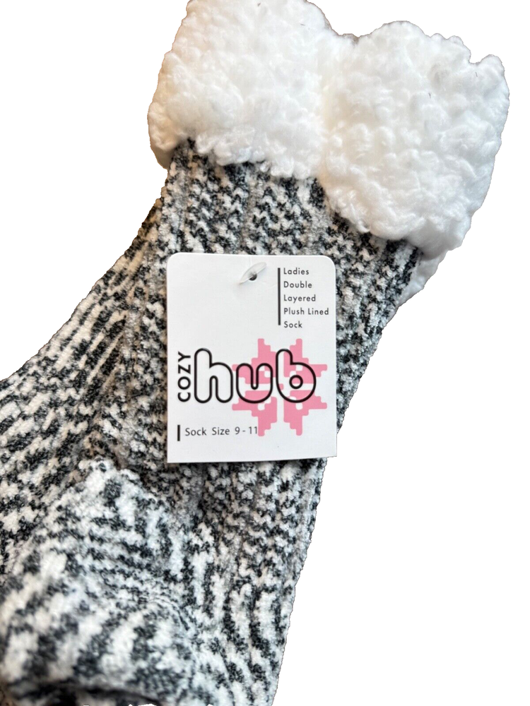 Experience the ultimate blend of comfort and style with the Cozy Hub Ladies Double Layered Push Lined Socks. Perfectly sized at 9-11, these socks are crafted from soft polyester material that promises to envelop your feet in luxurious warmth. Their versatile gray hue makes them a superb complement to a variety of outfits, whether you're lounging at home or slipping on some slippers. Designed with a practical yet chic aesthetic, these bed/slipper socks feature a cozy double layered construction and a supportive push lining to ensure a snug fit. The refined craftsmanship by Ladies brand guarantees durability while providing an elegant touch to your everyday footwear collection. Indulge in the simple pleasure of comfort with these essential socks, a perfect addition to your wardrobe.