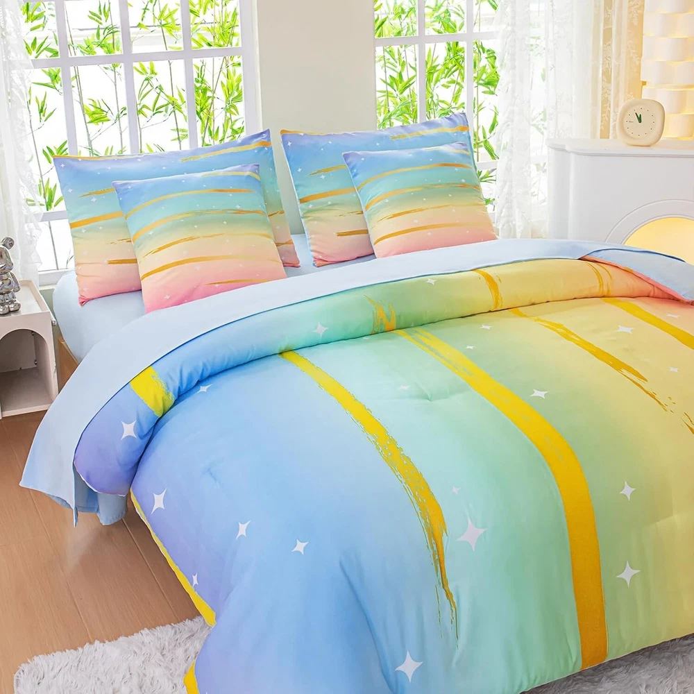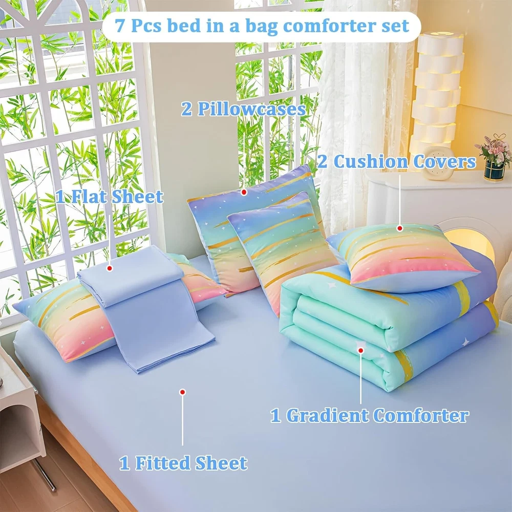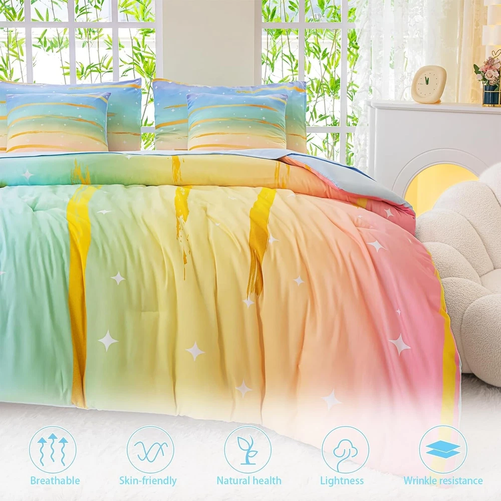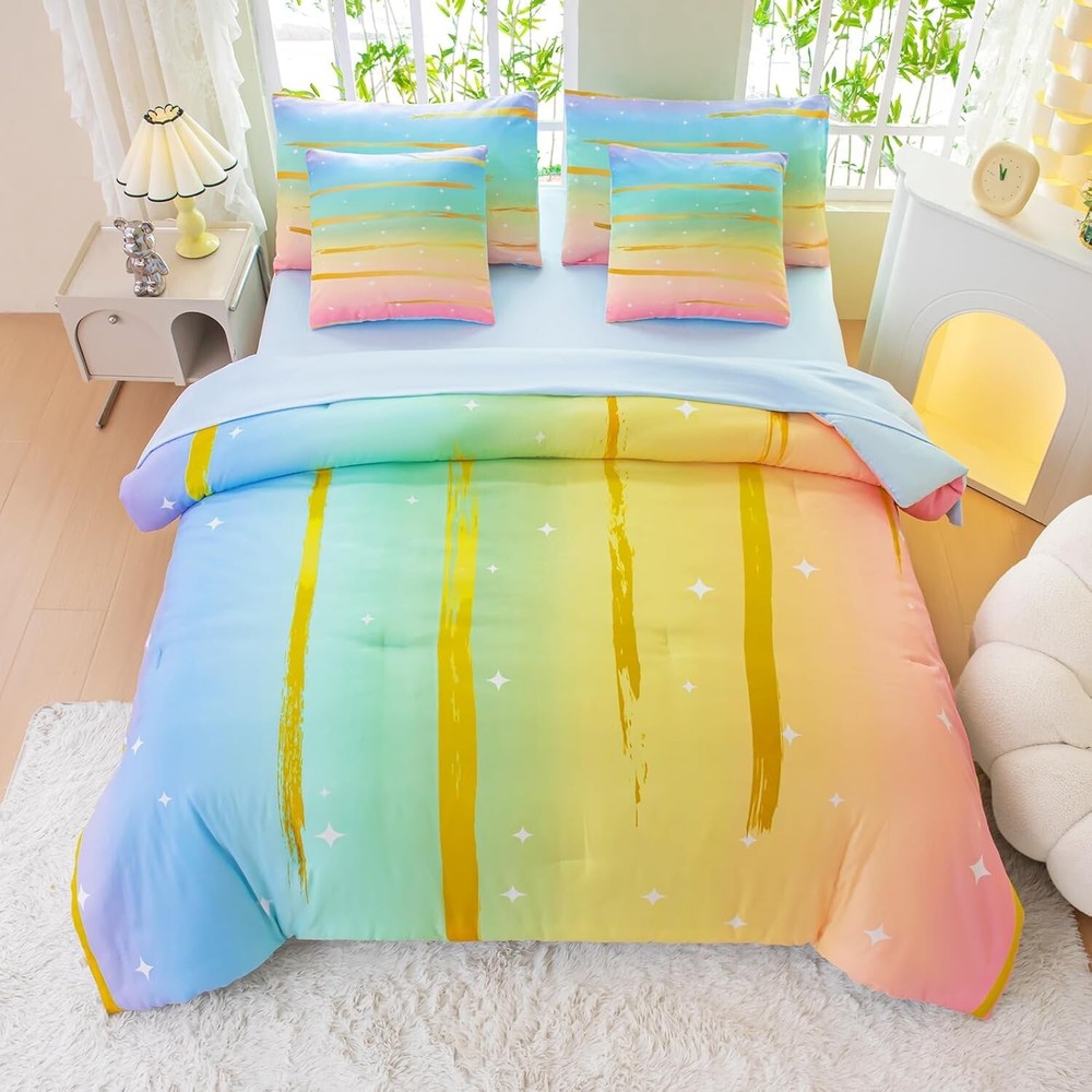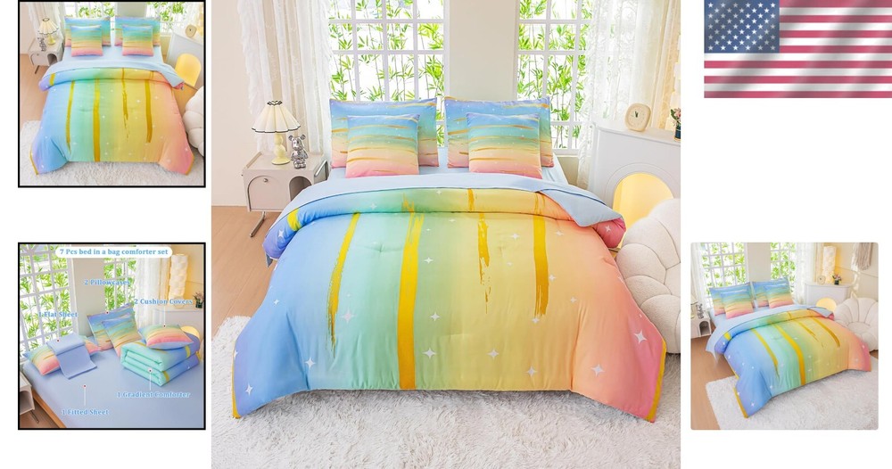 Cozy Kids Twin Bedding Set with Rainbow Comforter & Gold Accents for All Seasons ‹ › ‹ › ‹ › ‹ › ‹ › ‹ › ‹ › ‹ › ‹ › ‹ › Cozy Kids Twin Bedding Set This enchanting twin bedding set is crafted to inspire dreams, featuring a radiant gradient rainbow comforter adorned with sparkling stars and elegant gold accents. Perfect for all seasons, it will transform any child's bedroom into a cozy sanctuary. Unique Design Gradient rainbow color base combines with gold accents for a whimsical yet elegant look. Eye-catching designs that lend a dreamy atmosphere to the bedroom. Promotes a comfortable sleeping environment for sweet dreams. Super Soft Fabric Soft, fluffy, and comfortable materials ensure a luxurious feel. Filled with whole pieces to prevent shifting or clumping after washing. Tightly stitched seams for durability, won't tear or shrink after repeated washes. Advanced color-fixing technology maintains bright colors over time. Package Contents 1 x Rainbow Comforter (69" x 90" / 175 x 230 cm) 1 x Fitted Sheet (39" x 75" / 99 x 190 cm) 1 x Flat Sheet (66" x 96" / 167 x 243 cm) 2 x Pillowcases (19" x 27" / 50 x 70 cm) 2 x Cushion Covers (18" x 18" / 45 x 45 cm) Easy To Clean Exquisite piping stitching prevents tearing and damage. Maintains fluffiness and comfort after washing. Machine washable in cold water; tumble dry on low for longevity. High-quality printing keeps colors vibrant and long-lasting. Perfect Choice for Gifting Ideal for birthdays, Children's Day, Thanksgiving, or any special occasion, this twin comforter set is versatile for all children's bedrooms. It beautifully complements any relaxation space, making it a thoughtful gift that will delight the little ones in your life. Embrace the warmth and charm of our Cozy Kids Twin Bedding Set and let it create inviting dreams every night. Order yours today for a cozy, colorful haven that your children will love! Shipping Free & Fast Shipping - We offer free shipping to most of the USA with a normal delivery time of 3-7 days. However, due to the current situation, additional delivery time (up to 3 weeks) may be required for some items. Alternative Carriers - We may use alternative carriers (e.g. USPS, FedEx, UPS, etc.) to ensure your package arrives safely and on time. Due to the use of multiple carriers, we are unable to provide a tracking number automatically. Handling Time - Orders are processed and shipped within 1-2 business days of receiving cleared payment. Shipping Restrictions - Shipping to Alaska, Hawaii, Puerto Rico, Guam, and other US territories may incur shipping charges or delivery restrictions. Please contact us before ordering, or your order can be refunded/cancelled. State Restrictions - There may be restrictions based on your state of purchase. For example, certain items may not be shipped to California due to state regulations. Contact for Tracking Updates - If you require tracking updates or have any concerns about the delivery of your order, please feel free to contact us, and we will be happy to assist you. Return 30-Day Hassle-Free Returns - We want you to be completely satisfied with your purchase. If you are not, you can return the item within 30 days of receiving it for a full refund or exchange. Easy Return Process - To start a return, simply contact us and we will provide you with a prepaid return shipping label and detailed instructions. Restocking Fee - There are no restocking fees for returns. However, the buyer is responsible for return shipping costs if the return is not due to a seller's error. Refund Processing Time - Refunds will be processed within 5 business days of receiving the returned item in its original condition. Payment We accept all major credit cards, PayPal, and Apple Pay for your convenience. Your payment information is secure and encrypted to ensure a safe and seamless transaction. Please complete your payment within 3 days of purchase to avoid any delays in shipping. Feedback Your feedback is extremely important to us. We strive to provide the best products and customer service possible. If you are satisfied with your purchase, please take a moment to leave us a positive review. If you have any concerns or issues with your order, please contact us before leaving negative feedback. We are committed to resolving any problems and ensuring your satisfaction. Contact Us If you have any questions or concerns, please feel free to reach out to our customer support team. You can contact us through the eBay messaging system. We are available Monday to Friday, 9:00 am to 5:00 pm EST, and we will do our best to respond to your inquiry within 24 hours. Buy it now and enjoy a pleasant shopping experience! UPC: Not Set Model: Not Set Set Includes: Comforter,Fitted Sheet,Pillowcase,Cushion Cover Material: Polyester Features: Machine Wash,Soft,Comfortable,Fluffy,Tightly Stitched,Durable,Vibrant Colors Character: Not Set Theme: Seasonal Care Instructions: Machine Wash,Machine Wash Cold,Tumble Dry Low Department: Kids,Teens,Girls,Boys Room: Bedroom Labels & Certifications: Not Set Size: Twin Type: Comforter Set Brand: Unbranded Color: Gold Fill Material: Polyester Pattern: Rainbow Item Width: Not Set Item Length: Not Set MPN: Not Set Character Family: Not Set Number of Items in Set: 7 Insulation: All Seasons Style: English Season: All Country/Region of Manufacture: Not Set Closure Type: No Closure Thread Count: Not Specified Drop Length: Not Set GSM (Grams per Square Meter): Not Specified Product Line: Not Set Personalize: Not Set