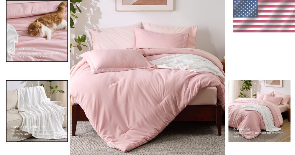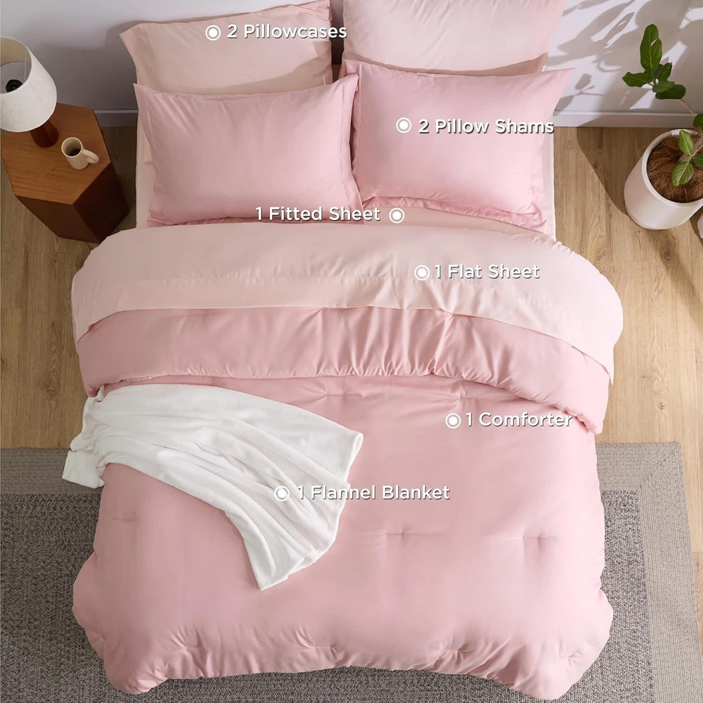 Cozy King Bed in a Bag - 8-Piece Comforter Set with Down Alternative Filling ‹ › ‹ › ‹ › ‹ › ‹ › ‹ › ‹ › ‹ › ‹ › ‹ › Cozy King Bed in a Bag - 8-Piece Comforter Set Transform your bedroom into a luxurious oasis with this exclusive 8-piece comforter set, thoughtfully designed for both style and comfort. Complete 8-Piece Set: Includes: 1 comforter (104" x 90"), 1 flat sheet (108" x 102"), 1 fitted sheet (78" x 80" + 14"), 2 pillowcases (20" x 40"), 2 pillow shams (20" x 36" + 2"), and 1 soft flannel blanket (60" x 50"). The added flannel blanket ensures warmth and versatility, perfect for layering on your bed or draping across your sofa. Premium Brushed Fabric: Crafted from brushed fabric that enhances softness and durability. Gentle on the skin, providing long-lasting comfort for a cozy night's sleep. High-Quality Filling: Filled with down alternative fiber, delivering exceptional softness and fluffy texture. Enjoy a luxurious sleeping experience every night with this plush bedding set. Soft Flannel Blanket: The double-sided flannel blanket is both soft and breathable. Offers excellent warmth and comfort, making it ideal for year-round use. Certified Safe and Easy to Maintain: Standard 100 by OEKO-TEX certified, ensuring it meets the highest criteria for harmful chemicals. Machine washable for effortless maintenance; simply wash in cold water on a gentle cycle for a like-new restoration. What You Get: This complete king bed-in-a-bag set is your all-inclusive solution to creating a cozy, luxurious bed. From the plush comforter to the versatile flannel blanket, every piece is crafted to enhance your sleeping experience. Why Choose Our Cozy King Bed in a Bag? Immerse yourself in the ultimate luxurious sleeping retreat with this elegant 8-piece set. Perfect for adding warmth and style to any bedroom, this bed set is not just about aesthetic appeal; it brings comfort and safety to your sleeping environment. Elevate your bedding collection now and enjoy the haven you've always dreamed of. Shipping Free & Fast Shipping - We offer free shipping to most of the USA with a normal delivery time of 3-7 days. However, due to the current situation, additional delivery time (up to 3 weeks) may be required for some items. Alternative Carriers - We may use alternative carriers (e.g. USPS, FedEx, UPS, etc.) to ensure your package arrives safely and on time. Due to the use of multiple carriers, we are unable to provide a tracking number automatically. Handling Time - Orders are processed and shipped within 1-2 business days of receiving cleared payment. Shipping Restrictions - Shipping to Alaska, Hawaii, Puerto Rico, Guam, and other US territories may incur shipping charges or delivery restrictions. Please contact us before ordering, or your order can be refunded/cancelled. State Restrictions - There may be restrictions based on your state of purchase. For example, certain items may not be shipped to California due to state regulations. Contact for Tracking Updates - If you require tracking updates or have any concerns about the delivery of your order, please feel free to contact us, and we will be happy to assist you. Return 30-Day Hassle-Free Returns - We want you to be completely satisfied with your purchase. If you are not, you can return the item within 30 days of receiving it for a full refund or exchange. Easy Return Process - To start a return, simply contact us and we will provide you with a prepaid return shipping label and detailed instructions. Restocking Fee - There are no restocking fees for returns. However, the buyer is responsible for return shipping costs if the return is not due to a seller's error. Refund Processing Time - Refunds will be processed within 5 business days of receiving the returned item in its original condition. Payment We accept all major credit cards, PayPal, and Apple Pay for your convenience. Your payment information is secure and encrypted to ensure a safe and seamless transaction. Please complete your payment within 3 days of purchase to avoid any delays in shipping. Feedback Your feedback is extremely important to us. We strive to provide the best products and customer service possible. If you are satisfied with your purchase, please take a moment to leave us a positive review. If you have any concerns or issues with your order, please contact us before leaving negative feedback. We are committed to resolving any problems and ensuring your satisfaction. Contact Us If you have any questions or concerns, please feel free to reach out to our customer support team. You can contact us through the eBay messaging system. We are available Monday to Friday, 9:00 am to 5:00 pm EST, and we will do our best to respond to your inquiry within 24 hours. Buy it now and enjoy a pleasant shopping experience! UPC: Not Set Model: Not Set Set Includes: Comforter,Fitted Sheet,Flat Sheet,Pillowcase,Pillow Sham,Flannel Blanket Material: Microfiber,Polyester Features: Breathable,Down Alternative,Machine Washable,Soft,Durable,Warm,Versatile Character: Not Set Theme: Modern Care Instructions: Do Not Bleach,Machine Wash,Machine Wash Cold Department: Adults Room: Bedroom Labels & Certifications: Not Set Size: King Type: Comforter Set Brand: Unbranded Color: Pink Fill Material: Down Alternative Pattern: Solid Item Width: Not Set Item Length: Not Set MPN: Not Set Number of Items in Set: 8 Style: Modern Character Family: Not Set Insulation: All Seasons Season: All Country/Region of Manufacture: Not Set Closure Type: No Closure Thread Count: 200 or Less Drop Length: Not Set GSM (Grams per Square Meter): 150 to 300 Product Line: Not Set Personalize: Not Set