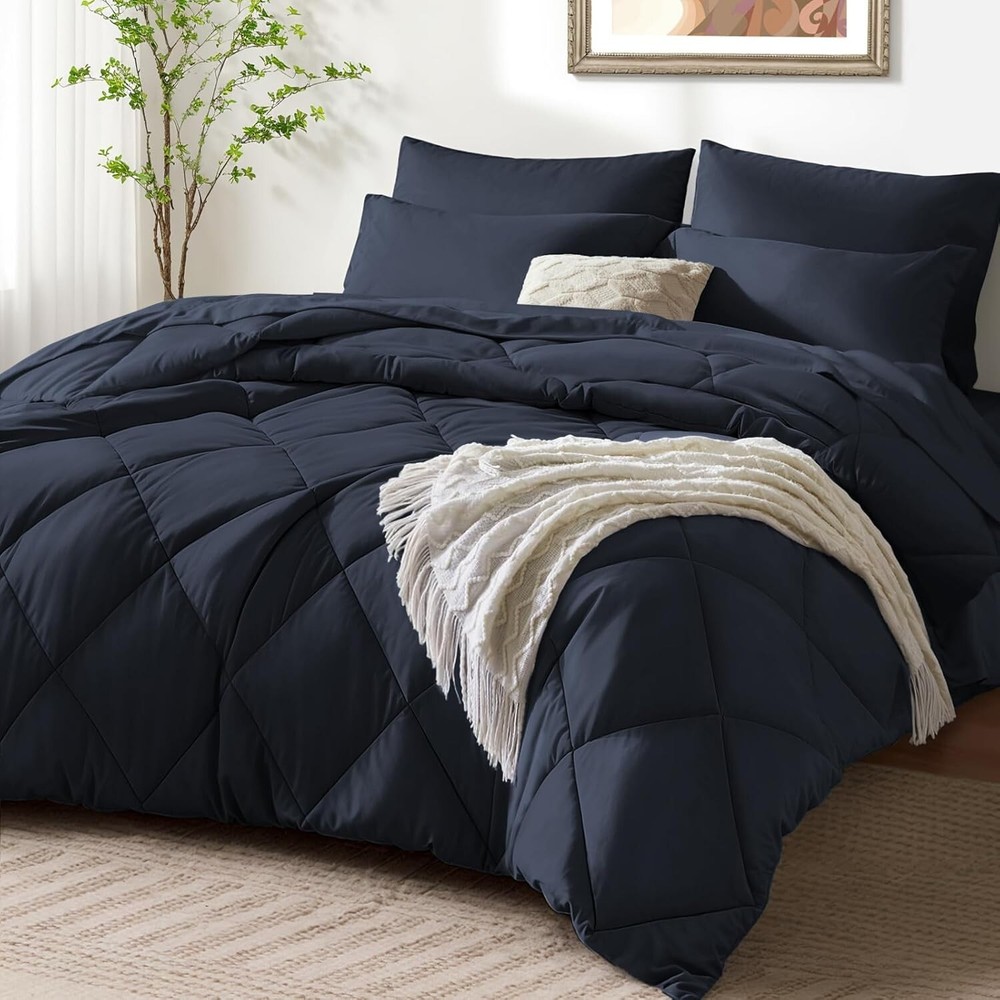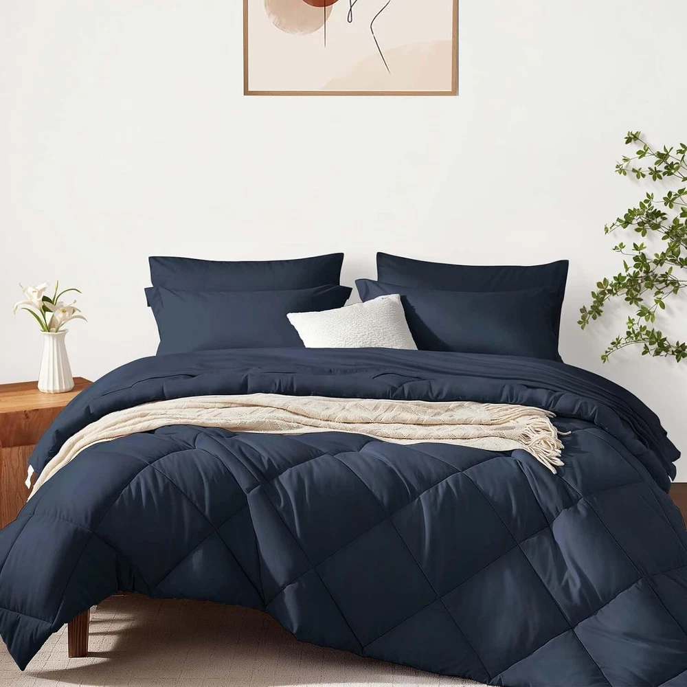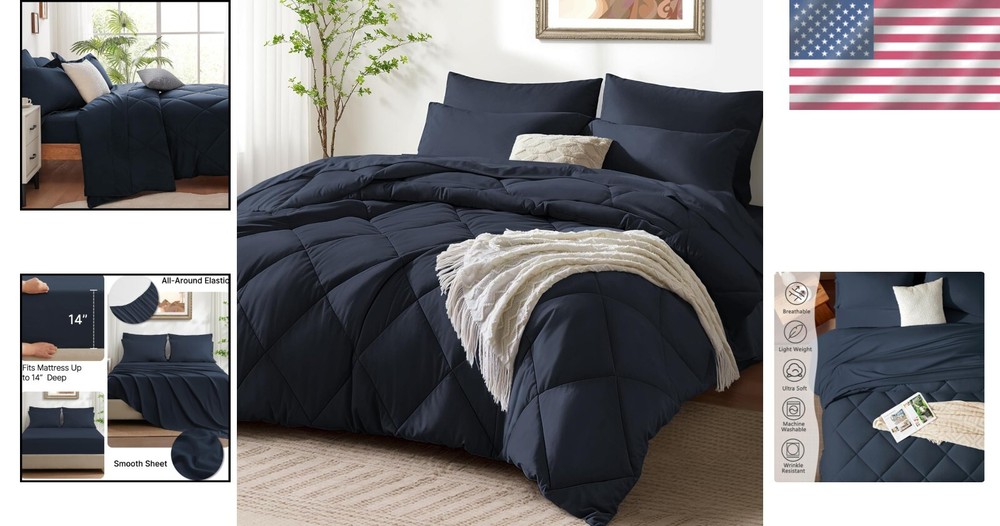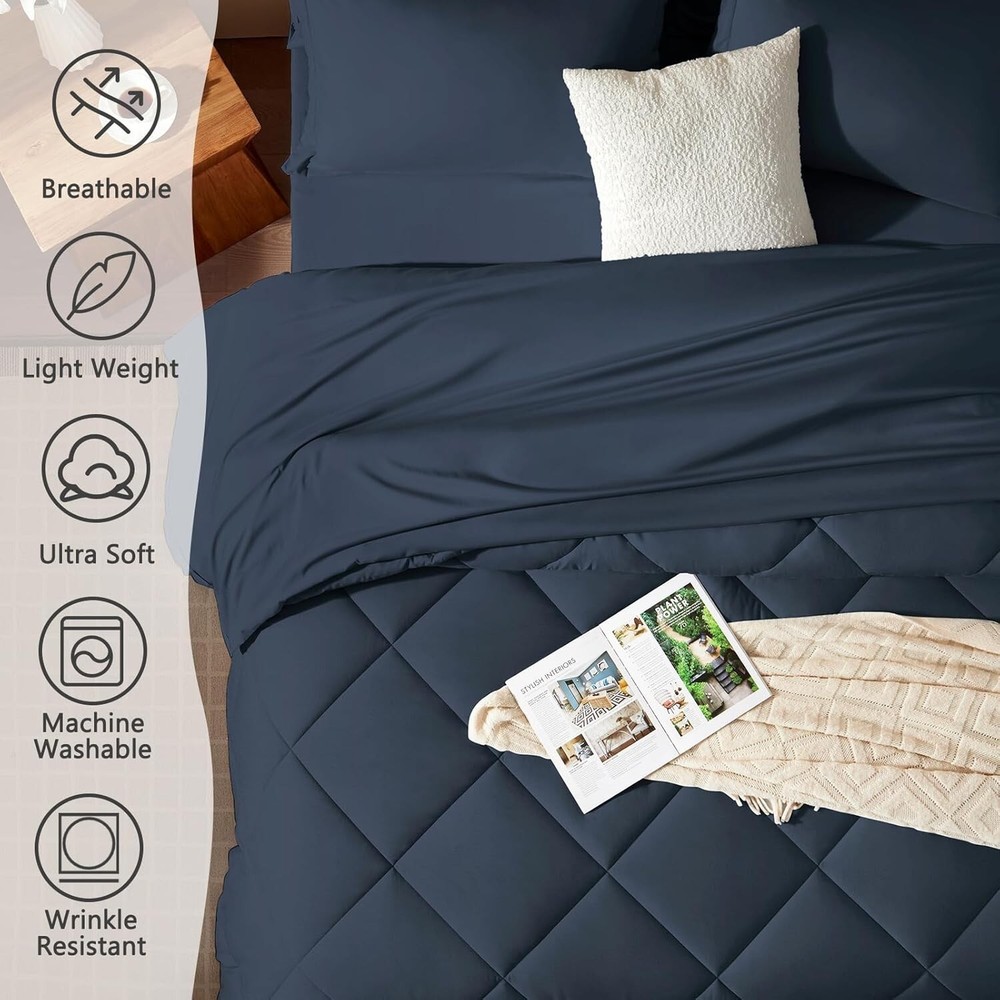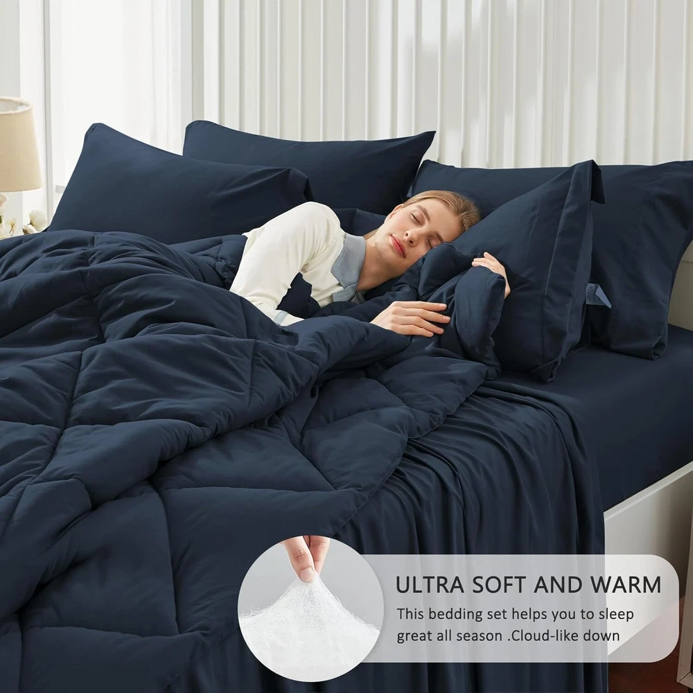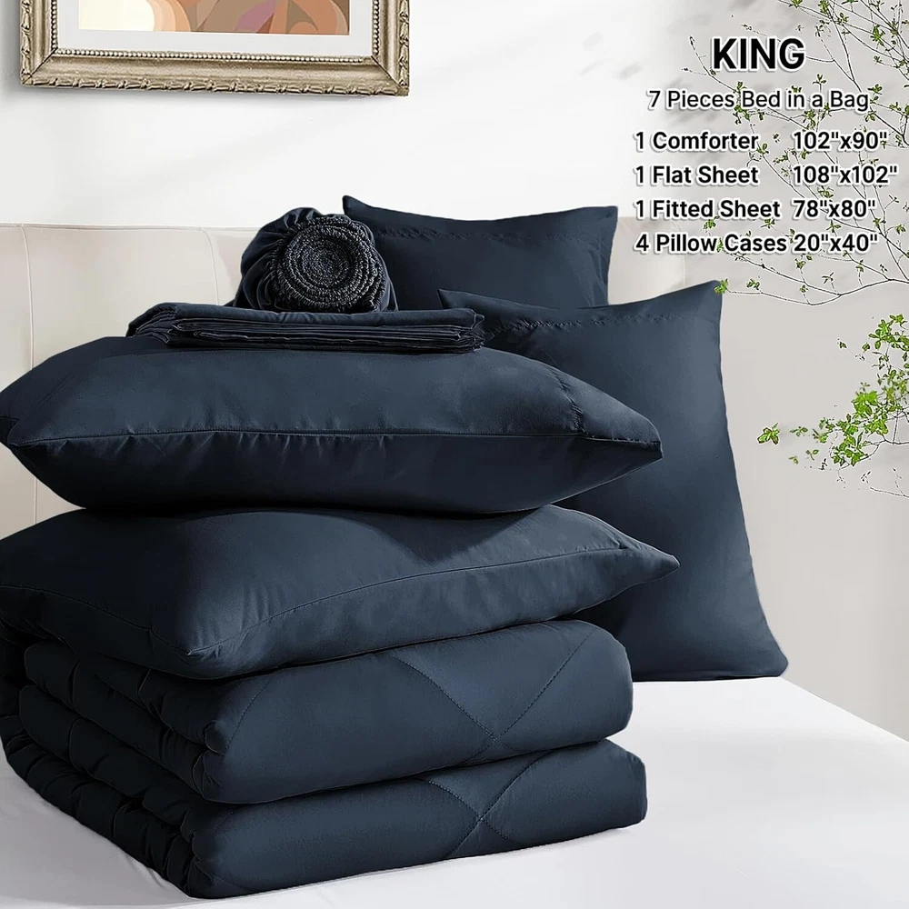 Cozy King Comforter Set - 7-Piece All Season Bedding, Machine Washable Navy Blue < class="slides"> ‹ › ‹ › ‹ › ‹ › ‹ › ‹ › ‹ › ‹ › ‹ › Cozy King Comforter Set - 7-Piece All Season Bedding Indulge in the luxury of a well-appointed bedroom with our exquisite Cozy King Comforter Set, featuring a stunning navy blue hue that complements any decor. Complete Bedding Solution: <> Transform your bedroom effortlessly with our all-in-one 7-piece bed-in-a-bag set. Includes everything for a luxurious sleep environment: a cozy comforter, 2 pillowcases, 2 shams, a fitted sheet, and a flat sheet. Year-Round Comfort: <> Crafted with high-quality microfiber fabric for an exquisite touch. Quilted design keeps you cozy without overheating, perfect for all seasons. Thoughtful Features: <> Fitted sheet accommodates mattresses up to 14" deep for a snug fit. Envelope closure pillowcases ensure your pillows stay securely in place. Elegant diamond pattern quilting adds charm while preventing shifting of filling. Easy Maintenance: <> Long-lasting durability; simply machine wash on a gentle cycle with cold water. Maintain freshness and quality effortlessly, allowing you more time to relax. Ultra-Cozy Filling: <> Experience the cloud-like warmth of expertly designed microfiber filling. Perfect gift for loved ones, providing a cozy and inviting sleep environment. Why Choose Our Cozy King Comforter Set? This luxurious bedding set is not just about style; it's about enhancing your sleep experience with its perfect blend of comfort and care. The elegant navy blue design combined with practical features makes it the ideal choice for anyone looking to elevate their bedroom aesthetics while ensuring a soothing night's sleep. Why settle for less? Embrace the essence of luxurious living with our Cozy King Comforter Set, designed for year-round comfort and ease. Elevate your sanctuary today! Shipping <> <> Free & Fast Shipping - We offer free shipping to most of the USA with a normal delivery time of 3-7 days. However, due to the current situation, additional delivery time (up to 3 weeks) may be required for some items. Alternative Carriers - We may use alternative carriers (e.g. USPS, FedEx, UPS, etc.) to ensure your package arrives safely and on time. Due to the use of multiple carriers, we are unable to provide a tracking number automatically. Handling Time - Orders are processed and shipped within 1-2 business days of receiving cleared payment. Shipping Restrictions - Shipping to Alaska, Hawaii, Puerto Rico, Guam, and other US territories may incur shipping charges or delivery restrictions. Please contact us before ordering, or your order can be refunded/cancelled. State Restrictions - There may be restrictions based on your state of purchase. For example, certain items may not be shipped to California due to state regulations. Contact for Tracking Updates - If you require tracking updates or have any concerns about the delivery of your order, please feel free to contact us, and we will be happy to assist you. Return <> <> 30-Day Hassle-Free Returns - We want you to be completely satisfied with your purchase. If you are not, you can return the item within 30 days of receiving it for a full refund or exchange. Easy Return Process - To start a return, simply contact us and we will provide you with a prepaid return shipping label and detailed instructions. Restocking Fee - There are no restocking fees for returns. However, the buyer is responsible for return shipping costs if the return is not due to a seller's error. Refund Processing Time - Refunds will be processed within 5 business days of receiving the returned item in its condition. Payment We accept all major credit cards, PayPal, and Apple Pay for your convenience. Your payment information is secure and encrypted to ensure a safe and seamless transaction. Please complete your payment within 3 days of purchase to avoid any delays in shipping. Feedback Your feedback is extremely important to us. We strive to provide the best products and customer service possible. If you are satisfied with your purchase, please take a moment to leave us a positive review. If you have any concerns or issues with your order, please contact us before leaving negative feedback. We are committed to resolving any problems and ensuring your satisfaction. Contact Us If you have any questions or concerns, please feel free to out to our customer support team. You can contact us through the eBay messaging system. We are available Monday to Friday, 9:00 am to 5:00 pm EST, and we will do our best to respond to your inquiry within 24 hours. Buy it now and enjoy a pleasant shopping experience! Model: King Comforter Set Set Includes: Comforter,Fitted Sheet,Flat Sheet,Pillowcase,Pillow Sham Material: Microfiber,Polyester Features: Breathable,Lightweight,Quilted Theme: Seasonal Care Instructions: Machine Wash Department: Adults Room: Bedroom Size: King Type: Comforter Set Color: Navy Blue Fill Material: Microfiber Pattern: Diamond Number of Items in Set: 7 Style: Modern Insulation: All Seasons Season: All Closure Type: No Closure Thread Count: 200 or Less GSM (Grams per Square Meter): Below 150
