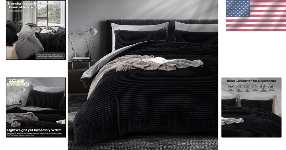 Cozy King Size Pom Pom Striped Comforter Set – Reversible Bohemian Style ‹ › ‹ › ‹ › ‹ › ‹ › ‹ › ‹ › ‹ › ‹ › Cozy King Size Pom Pom Striped Comforter Set – Reversible Bohemian Style Elevate your bedroom with this stunning 3-piece comforter set that encapsulates both luxury and artistic flair. Perfectly crafted for those with refined tastes, this set is not just about style, it's about creating an atmosphere that resonates with comfort and elegance. Distinctive Pom Pom Design: Reversible design featuring vibrant colors to cater to the unique aesthetic of your space. Measures: King Size Comforter - 104" x 90", Pillowcases - 20" x 36". Pillowcases and comforter adorned with charming pom poms for a bright, bohemian look. Soft Material: Filled with high-quality goose down alternative for plush comfort. Front side is made of luxurious black striped sherpa plush, while the reverse features dark grey thickened flannel microfleece. Perfect for all seasons – warm enough for winter yet light enough for summer. Experience an ethereal feeling of being cocooned in clouds for a restful night’s sleep. Excellent Technique: Neat hidden stitching for a minimalist look, preventing movement of the filling within. Durable pom pom construction with special stitching technology for longevity. Suitable for: A perfect choice for those tired of plain bedding, introducing a casual yet elegant style. Its substantial warmth and softness make it a cozy cocoon for all year round. Ideal as a luxurious aesthetic decor for your bedroom or as a thoughtful holiday gift for loved ones. Gentle Care: Machine washable in a laundry bag at up to 86°F in a delicate cycle. Can be tumble dried on low or dried in the sun; low iron if needed to remove wrinkles. Do not bleach to maintain the integrity of the pom pom fringe. Why Choose This Comforter Set? This Cozy King Size Pom Pom Striped Comforter Set is not just bedding; it’s an experience. With its striking design and unparalleled comfort, this set brings warmth, color, and character to your bedroom. Say goodbye to insipid bedding options and embrace a joyful, eclectic style that stands out. In this exquisite comforter set, find the perfect blend of bohemian charm and luxurious comfort that will enwrap you in tranquility. Transform your sanctuary today with this unique and captivating comforter set! Shipping Free & Fast Shipping - We offer free shipping to most of the USA with a normal delivery time of 3-7 days. However, due to the current situation, additional delivery time (up to 3 weeks) may be required for some items. Alternative Carriers - We may use alternative carriers (e.g. USPS, FedEx, UPS, etc.) to ensure your package arrives safely and on time. Due to the use of multiple carriers, we are unable to provide a tracking number automatically. Handling Time - Orders are processed and shipped within 1-2 business days of receiving cleared payment. Shipping Restrictions - Shipping to Alaska, Hawaii, Puerto Rico, Guam, and other US territories may incur shipping charges or delivery restrictions. Please contact us before ordering, or your order can be refunded/cancelled. State Restrictions - There may be restrictions based on your state of purchase. For example, certain items may not be shipped to California due to state regulations. Contact for Tracking Updates - If you require tracking updates or have any concerns about the delivery of your order, please feel free to contact us, and we will be happy to assist you. Return 30-Day Hassle-Free Returns - We want you to be completely satisfied with your purchase. If you are not, you can return the item within 30 days of receiving it for a full refund or exchange. Easy Return Process - To start a return, simply contact us and we will provide you with a prepaid return shipping label and detailed instructions. Restocking Fee - There are no restocking fees for returns. However, the buyer is responsible for return shipping costs if the return is not due to a seller's error. Refund Processing Time - Refunds will be processed within 5 business days of receiving the returned item in its original condition. Payment We accept all major credit cards, PayPal, and Apple Pay for your convenience. Your payment information is secure and encrypted to ensure a safe and seamless transaction. Please complete your payment within 3 days of purchase to avoid any delays in shipping. Feedback Your feedback is extremely important to us. We strive to provide the best products and customer service possible. If you are satisfied with your purchase, please take a moment to leave us a positive review. If you have any concerns or issues with your order, please contact us before leaving negative feedback. We are committed to resolving any problems and ensuring your satisfaction. Contact Us If you have any questions or concerns, please feel free to reach out to our customer support team. You can contact us through the eBay messaging system. We are available Monday to Friday, 9:00 am to 5:00 pm EST, and we will do our best to respond to your inquiry within 24 hours. Buy it now and enjoy a pleasant shopping experience! UPC: Not Set Model: Black Comforter Set Set Includes: Comforter,Pillowcase Material: Polyester,Sherpa Plush,Flannel Microfleece Features: Antimicrobial,Hypoallergenic,Reversible Character: Not Set Theme: Boho Care Instructions: Do Not Bleach,Machine Wash Department: Unisex Baby & Toddler,Kids,Teens,Adults Room: Bedroom Labels & Certifications: Not Set Size: King Type: Comforter Set Brand: Unbranded Color: Black Fill Material: Polyester Pattern: Stripes Item Width: Not Set Item Length: Not Set MPN: Not Set Character Family: Not Set Number of Items in Set: 3 Insulation: All Seasons Style: Bohemian Season: Winter Country/Region of Manufacture: Not Set Closure Type: No Closure Thread Count: 200 or Less Drop Length: Not Set GSM (Grams per Square Meter): 280 Product Line: Not Set Personalize: Not Set
