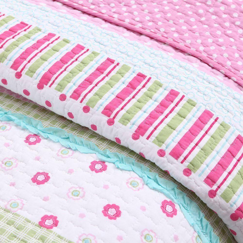 Contact Us Add to Favorite Fast Shipping Hassle Free Return eBay Money Back Guarantee Authenticity Guarantee Features Ruffle detail gives a striking appeal Made of 100% cotton to ensure longevity Reversible design for versatile styling Item Description This exquisitely fun bold bright colorful patterned fabrics in floral, polka dot, stripe and plaids all quilted together in a stripe pattern and adorn with several designer ruffles will surely bring a pop of color to any room. Rather you want to refresh your bedroom, a child's room or a guest room you will be pleased. Quilt set is crafted of 100% Cotton. Offered in Twin and Queen. Coordinating accessories also available for purchase separately Decor Throw Pillows, Complete Sheet Sets, Window Curtains and Window Valance. The quilt is reversible. With its easy-care machine-washable cotton material, this quilt set is easy and quick to launder. Bedding Material: Cotton Care Instructions: Machine Wash Color: pink, white, blue, green Color Family: Pink Decorative Accents: Piped Edges,Ruffled Features: Reversible Fill Material: Cotton Gender: Girls Kids' Theme: Floral Lifestage: Kid Linen Type: Comforter Set Material Family: Cotton Number of Pieces: 3 Returnable: 30-Day Set Includes: Comforter,Sham Size: Queen Thread Count: 180 Comforter Length (in.): 92 in Comforter Width (in.): 88 in Sham Length (in.): 26 in Sham Width (in.): 20 in About us Customer service is our top priority! Please be sure to read the description thoroughly to make sure that this is the item you want before making a purchasing decision. If you have any questions about this item, please contact us via eBay messages before placing your order. We make every effort possible to accurately describe and depict the items. Please be aware that slight variations in color may be due to differences in lighting and computer monitor resolutions. All items are in stock at the time of listing; however, in the unlikely and unforeseen event that we are unable to fulfill your order through any of our networked warehouses, we will notify you as quickly as possible and offer you a 100% refund on your purchase. Thank you for shopping with us. We appreciate your business! Payment PayPal is our preferred method of payment. If you do not have a PayPal account, all major credit cards are gladly accepted through PayPal as the payment processor. PayPal offers great buyer and seller protection. Your order will be processed pending receipt of cleared payment through PayPal. Sales tax may be charged depending on your location. Shipping We provide fast, free shipping. Most items are shipped within 3-5 business days of receiving cleared payment. We ship to the lower 48 contiguous United States only. We do not ship to P.O. Boxes or APOs. For select items, we ship internationally through eBay?s Global Shipping Program. We do ship most of our smaller items internationally using eBays Global Shipping Program. If ordering electrical items outside of the U.S., please note that they will come equipped with a standard U.S. voltage plugs. You will need a suitable adapter to use the item in your country. Certain restrictions apply. Standard or Economy Shipping is ALWAYS FREE! You will be notified via eBay messages as soon as your items ship. Special Notice for Freight Items: If an item ships via Freight (Truck) Delivery, a valid phone number will be required so that we can contact you to schedule delivery. The item may be delivered with curbside delivery. An adult signature will be required. Please be sure to have available help on hand to assist you with moving the item to the desired location in or outside of your home. Freight items must be inspected upon delivery. In the unlikely event that damaged is observed, you MUST refuse delivery and note the damage on the shipping receipt and send it back via the Freight carrier. Returns will not be accepted on Freight items after they have been delivered, inspected, and the driver has left the premises. Returns We offer a 30 day return/exchange policy for most of our products. You can request a refund if you are dissatisfied for any reason with your product. (Restocking Fee May Apply). Only factory defects are accepted as a reason for a return. In the case of factory defects, if available, we will replace the product for you. When returning an item, it must be in all of the original packaging and include all of the original accessories or items that came with it. The item and package should be in original and perfect condition. You will be required to cover shipping on the return of non-defective items. All returns MUST be done within 30 days of date of purchase. Please note that we cannot give refunds or replacements after the 30 day limit has expired. When sending in a return, please note that it can take up to 7 business days for the return to be processed. We do our best to process as quickly as possible. We are extremely fair, and in the rare event of something out of the ordinary happening with our products or shipping, we will gladly work with you to find a fair resolution. Disclaimer Were sorry, but we do not honor product exchange requests. If you need to exchange an item received, you will need to go through the normal returns process identified in our returns section and then order the correct item, if it is still available. Orders are processed immediately and dispatched to fulfillment as soon as they are received. For this reason, we are typically unable to honor cancellation requests. If you need to cancel the transaction, please contact us as soon as possible and we will attempt to cancel the order. If the order has gone too far through the fulfillment process, we will be unable to cancel. In that event, you would need to wait until you receive the item and go through the normal returns process as mentioned in the returns section of our policies. Payment Options Shop With Confidence Copyright ©2023, All rights reserved. Listed by Sku Fetch