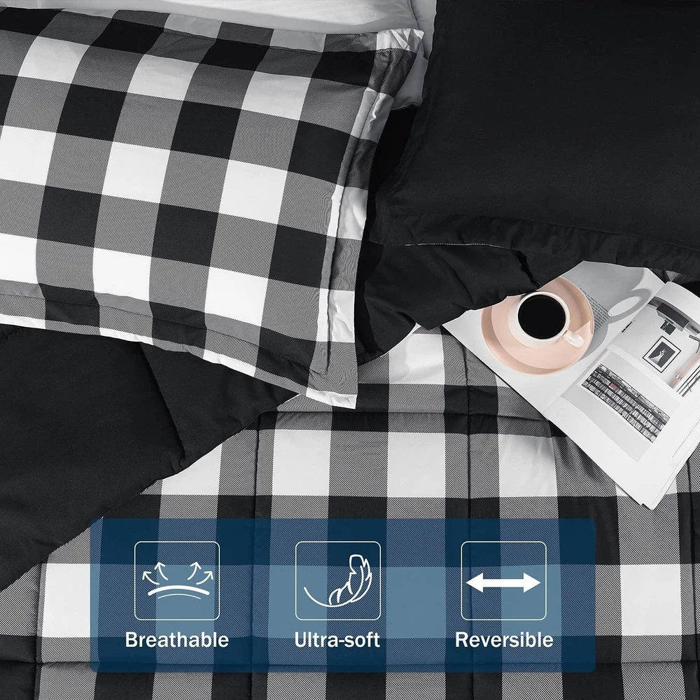 This comforter set is so soft and warm—absolutely love the plaid design on both sides! The microfiber feels luxurious, and the reversible shams add a nice touch. Great fit for a queen bed, and washing it was easy with no fading. Makes my bedroom feel cozy and stylish. Highly recommend!