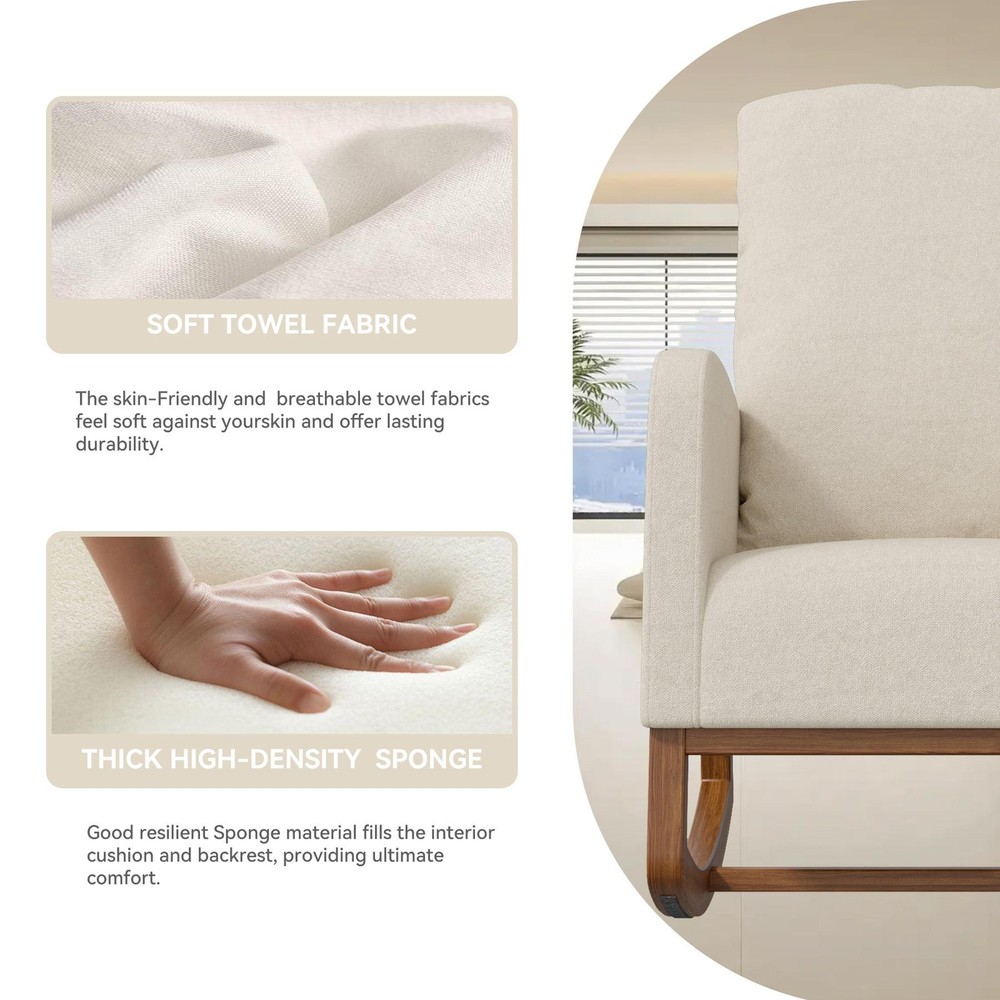 Modern Nursery Recliner Rocker Chair with Plush Upholstered Comfort