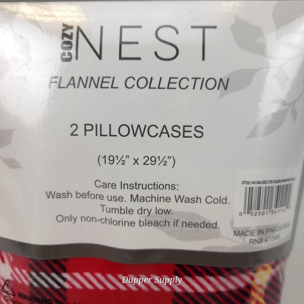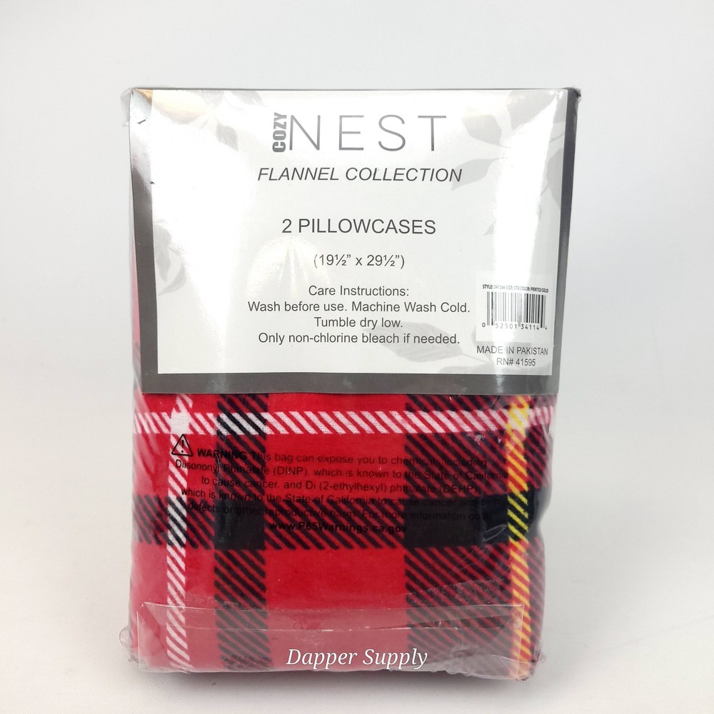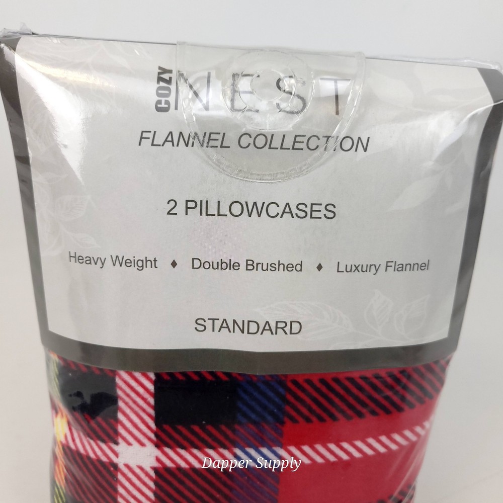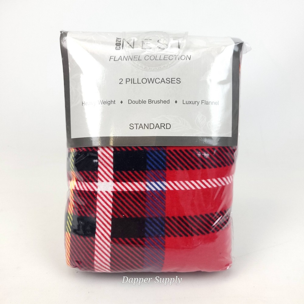 Cozy Nest Flannel Heavy Weight 20x30" Pillowcases Set of 2 White Red Blue Plaid. Condition is New with tags. Shipped with USPS Ground Advantage.