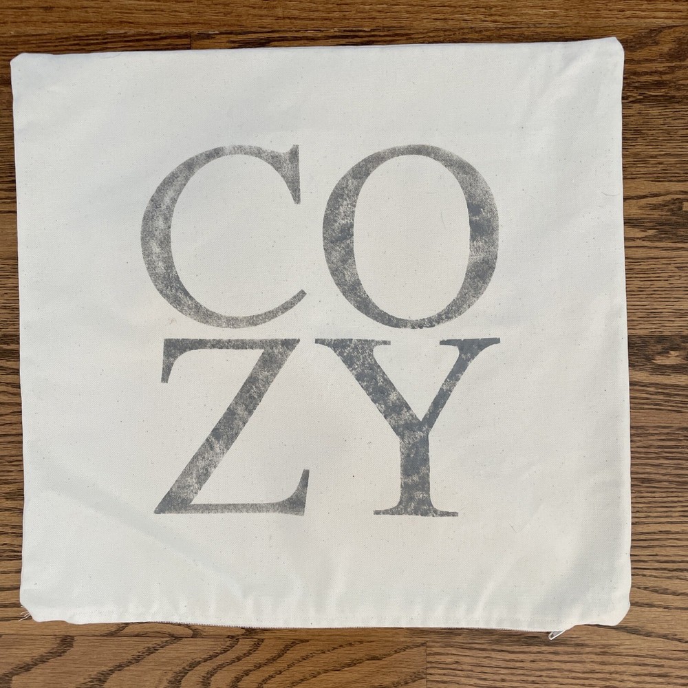 Farmhouse pillow, cozy. Pillow cover 12 x 12“Ish. Excellent condition no stains zipper closure.