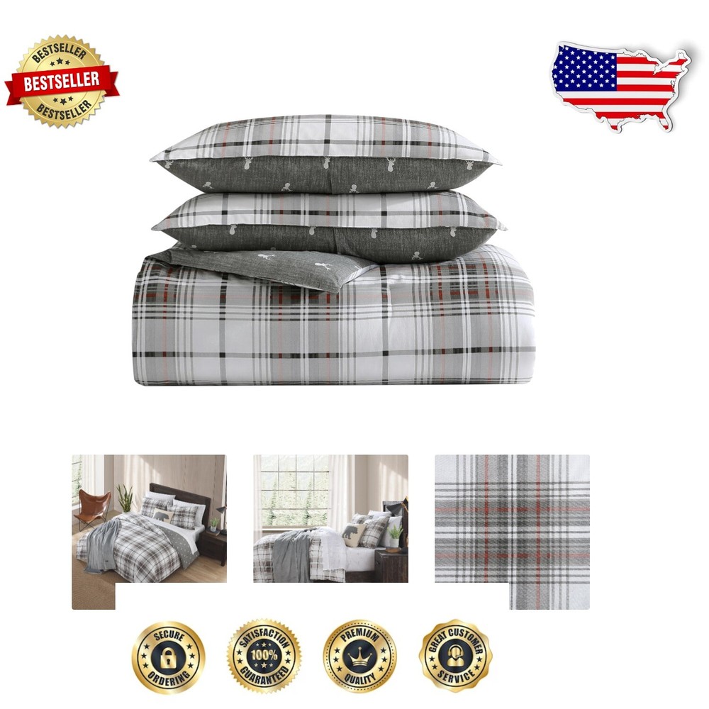 Cozy Reversible Plaid King Comforter Set - 100% Cotton Bedding, Machine Washable ‹ › ‹ › ‹ › ‹ › ‹ › ‹ › ‹ › ‹ › ‹ › ‹ › ‹ › Cozy Reversible Plaid King Comforter Set 100% Cotton Bedding for a soft and luxurious feel. Comes with (1) King Comforter and (2) Matching Shams . Natural and Breathable cotton construction ensures a comfortable night's sleep. Care Instructions: Machine wash in cold water and tumble dry on low for easy maintenance. Dimensions: Comforter: 96"L x 108"W, King Shams: 21"L x 37"W. Features: Unique grey and red plaid design printed on white, reverses to a stunning grey and white elk print, offering versatile styling options. Lofty polyester fill provides warmth and comfort while keeping things lightweight. Experience the Comfort Cuddle into unparalleled luxury with the Cozy Reversible Plaid King Comforter Set. Just like your favorite flannel shirt, this all-cotton flannel comforter is designed to create a cocoon of warmth, while the classic plaid pattern in rich tones of beige, gray, and red complements any bedroom aesthetic. Transform your space into a cozy retreat where dreams come alive. Why Choose Our Comforter Set? Embracing style and functionality, our comforter set is not just about aesthetics; it’s about creating warm memories at home. The reversible design adds value and flexibility to your decor, allowing you to switch looks effortlessly. Enjoy the easy maintenance that comes with machine washable fabric and dive into comfort that lasts through the seasons. Bring home this cozy delight today and elevate your bedroom to new heights of elegance and warmth! Shipping Free & Fast Shipping - We offer free shipping to most of the USA with a normal delivery time of 3-7 days. However, due to the current situation, additional delivery time (up to 3 weeks) may be required for some items. Alternative Carriers - We may use alternative carriers (e.g. USPS, FedEx, UPS, etc.) to ensure your package arrives safely and on time. Due to the use of multiple carriers, we are unable to provide a tracking number automatically. Handling Time - Orders are processed and shipped within 1-2 business days of receiving cleared payment. Shipping Restrictions - Shipping to Alaska, Hawaii, Puerto Rico, Guam, and other US territories may incur shipping charges or delivery restrictions. Please contact us before ordering, or your order can be refunded/cancelled. State Restrictions - There may be restrictions based on your state of purchase. For example, certain items may not be shipped to California due to state regulations. Contact for Tracking Updates - If you require tracking updates or have any concerns about the delivery of your order, please feel free to contact us, and we will be happy to assist you. Return 30-Day Hassle-Free Returns - We want you to be completely satisfied with your purchase. If you are not, you can return the item within 30 days of receiving it for a full refund or exchange. Easy Return Process - To start a return, simply contact us and we will provide you with a prepaid return shipping label and detailed instructions. Restocking Fee - There are no restocking fees for returns. However, the buyer is responsible for return shipping costs if the return is not due to a seller's error. Refund Processing Time - Refunds will be processed within 5 business days of receiving the returned item in its original condition. Payment We accept all major credit cards, PayPal, and Apple Pay for your convenience. Your payment information is secure and encrypted to ensure a safe and seamless transaction. Please complete your payment within 3 days of purchase to avoid any delays in shipping. Feedback Your feedback is extremely important to us. We strive to provide the best products and customer service possible. If you are satisfied with your purchase, please take a moment to leave us a positive review. If you have any concerns or issues with your order, please contact us before leaving negative feedback. We are committed to resolving any problems and ensuring your satisfaction. Contact Us If you have any questions or concerns, please feel free to reach out to our customer support team. You can contact us through the eBay messaging system. We are available Monday to Friday, 9:00 am to 5:00 pm EST, and we will do our best to respond to your inquiry within 24 hours. Buy it now and enjoy a pleasant shopping experience! UPC: Not Set Model: Not Set Set Includes: Comforter,Pillow Sham Material: Cotton,100% Cotton Features: Reversible,Medium Warmth,Oeko-Tex Certified Theme: Plaid Character: Not Set Care Instructions: Machine Wash Cold,Tumble Dry Low Department: Unisex Baby & Toddler,Adults Room: Bedroom Labels & Certifications: Not Set Size: King Type: Comforter Set Brand: Unbranded Color: Alder Grey/Red Fill Material: Polyester Pattern: Plaid Item Width: Not Set Item Length: Not Set MPN: Not Set Number of Items in Set: 3 Style: Lodge Character Family: Not Set Insulation: All Seasons Season: All Country/Region of Manufacture: Not Set Closure Type: No Closure Drop Length: Not Set Thread Count: 200 or Less GSM (Grams per Square Meter): Not Specified Product Line: Not Set Personalize: Not Set